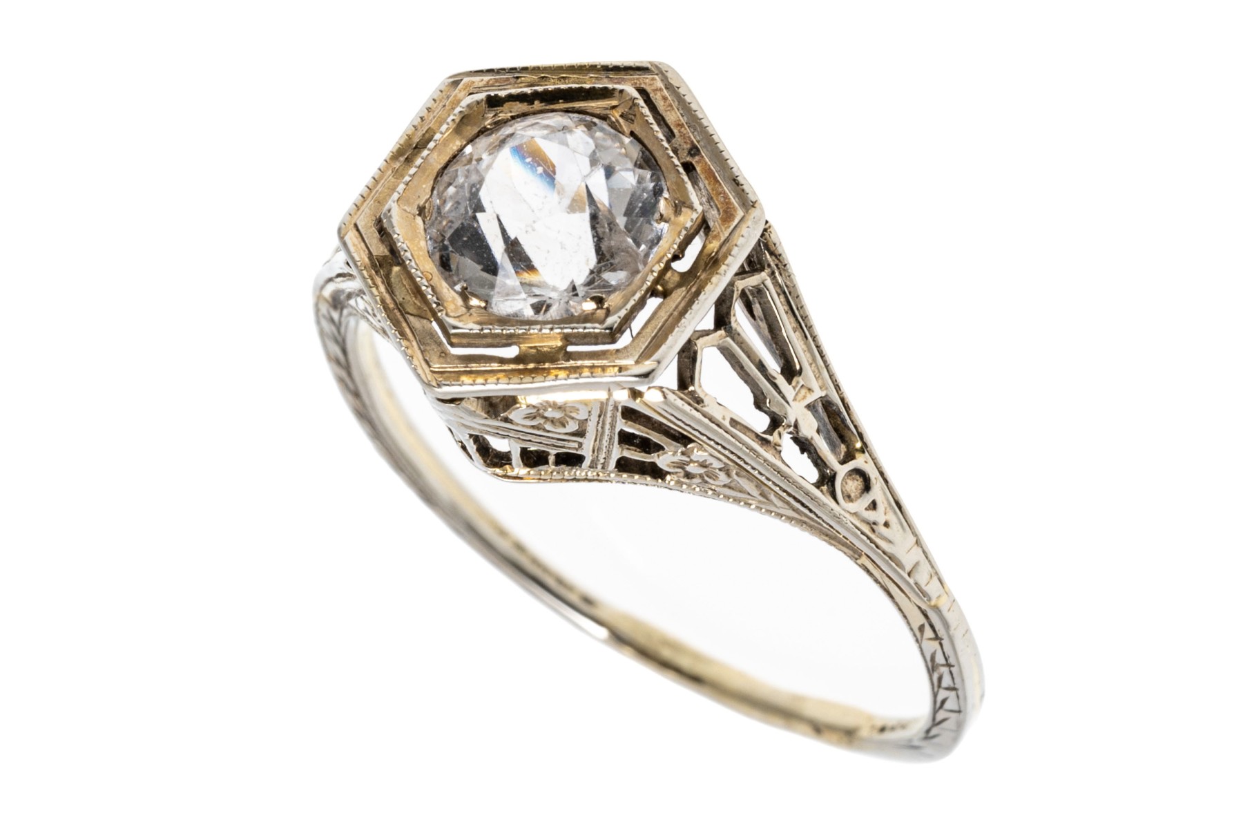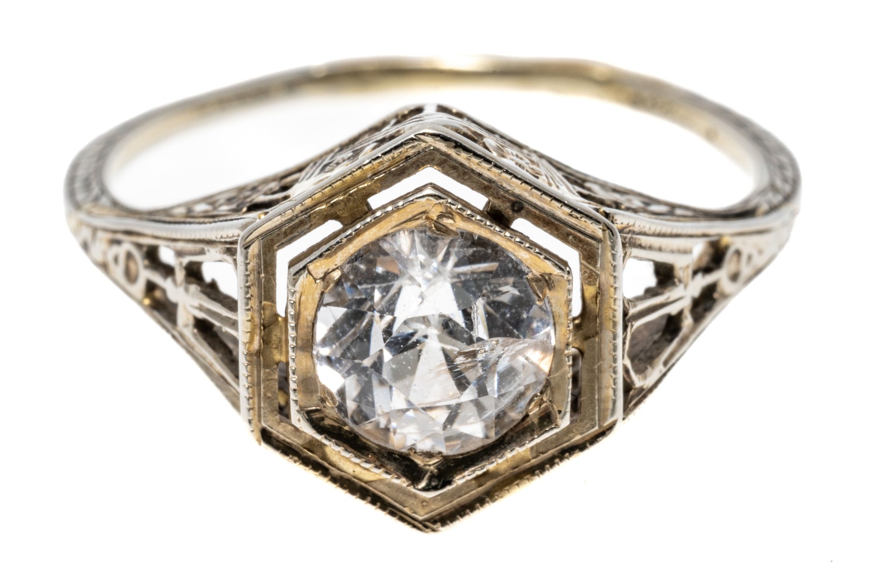 14k White Gold Pretty Vintage White Sapphire Filigree Solitaire Ring, Size 7.25 #258281. Black Rock Galleries provides high end estate liquidation services through online estate auctions and a 50,000 sq ft designer showroom. estate liquidator, estate sale, online auction, antiques, fine art, liquidation, clean outs, auction, consignment, interior design, fine jewelry, collectibles, appraisals, estate appraisals, estate services, decor, furniture, furniture consignment, antique center, consignment shop. We offer appraisal services and specialize in fine art, jewelry, antiques and decorative arts. Sell with us. Black Rock Galleries is the tri-state's largest estate liquidator serving New England and the greater New York City area. We are the trusted source for expert appraisals, auction services, estate sales, and consignments. Black Rock Galleries is the east coast's largest and most trusted estate liquidator, with locations in Connecticut, greater Boston, MA and Raleigh, NC, Fairfield, Southport, Apex, TX. We are the best source for expert appraisals, auction services, estate sales and consignments. We have served thousands of families and estates with compassion, professionalism and expertise. BRG works with attorneys, executors, realtors and families to bring the greatest return on personal and estate property in the current market. Our unique combination of services make us the easy choice to get the job done in a timely and stress-free manner. We are with you from the initial consultation to the final clean out. Our house-built online auction software platform offers clients a dynamic approach to liquidating their personal property. This venue is most successful in bringing the best return with the least amount of disruption for our clients. See our services page for a complete description of this offering. 14k White Gold Pretty Vintage White Sapphire Filigree Solitaire Ring, Size 7.25 #258281