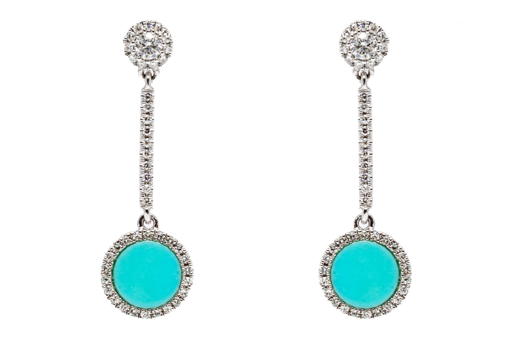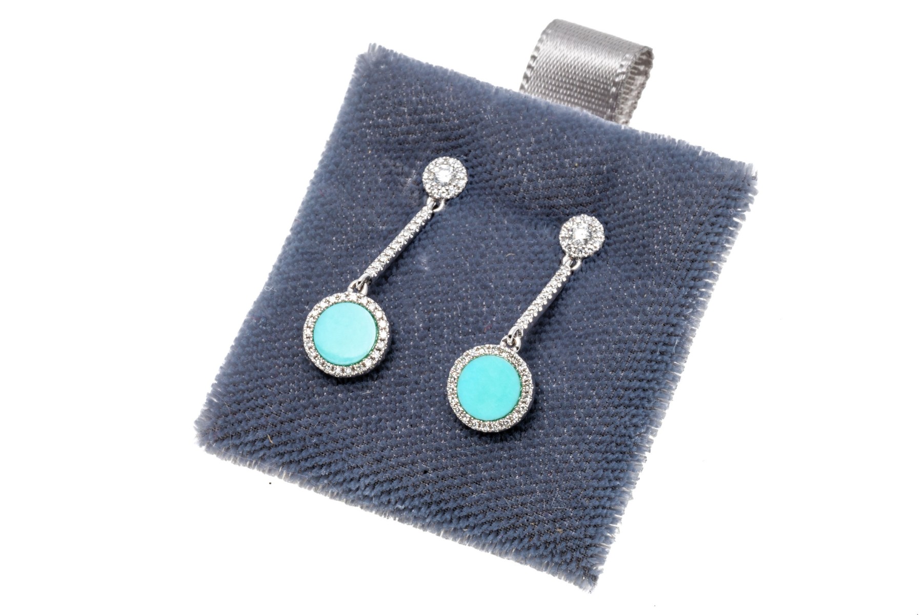 14k white gold turquoise and diamond drop pendant earrings, app. 0.33 TCW, finished with posts and clutch style backs