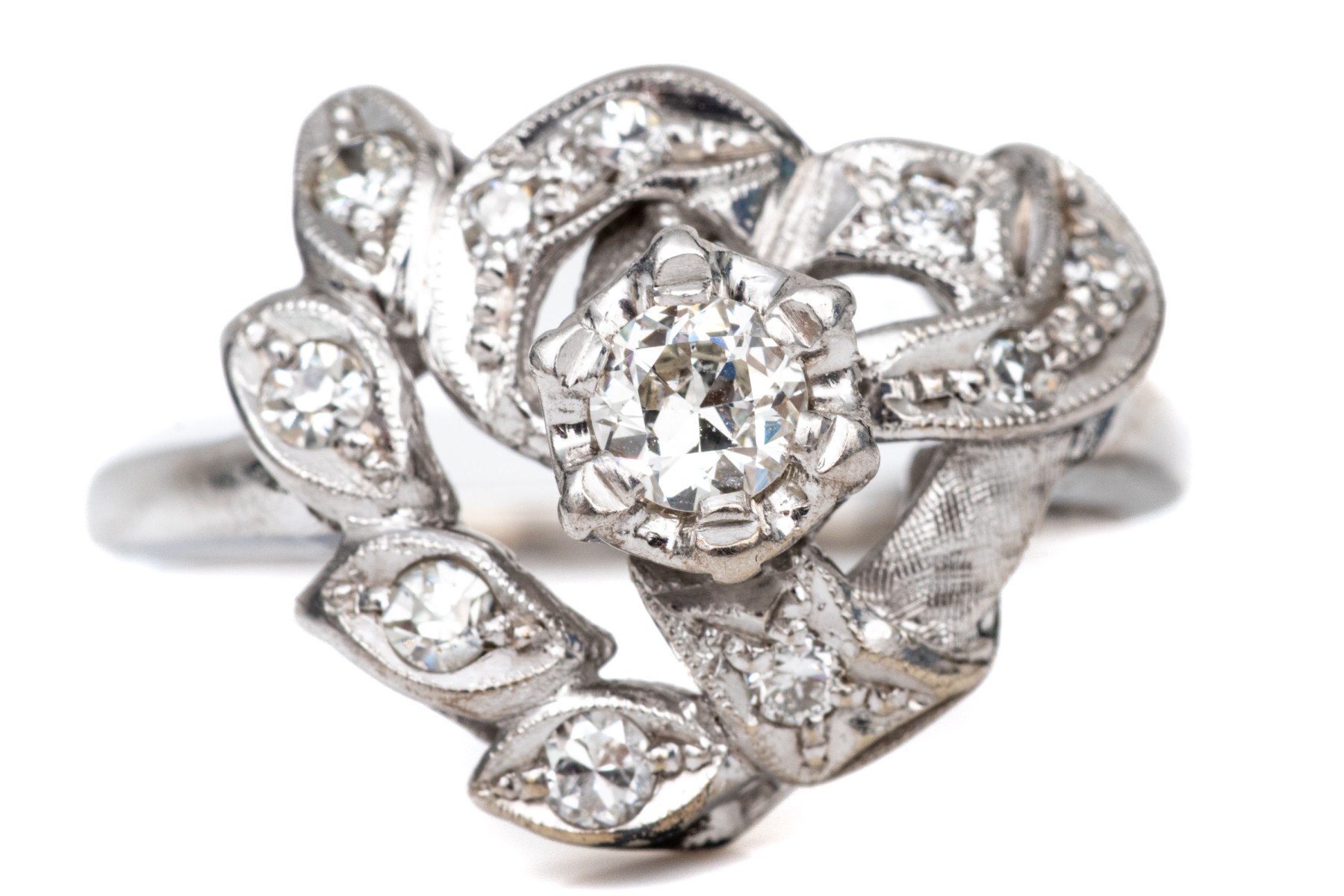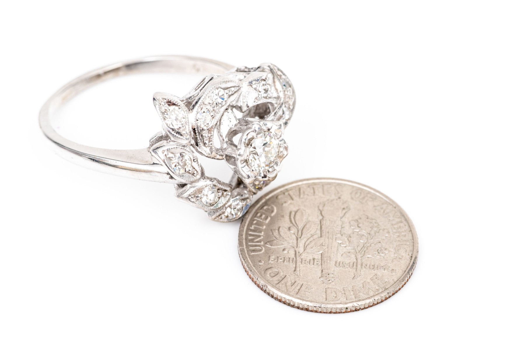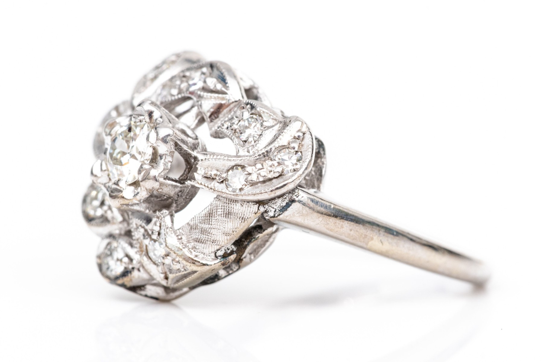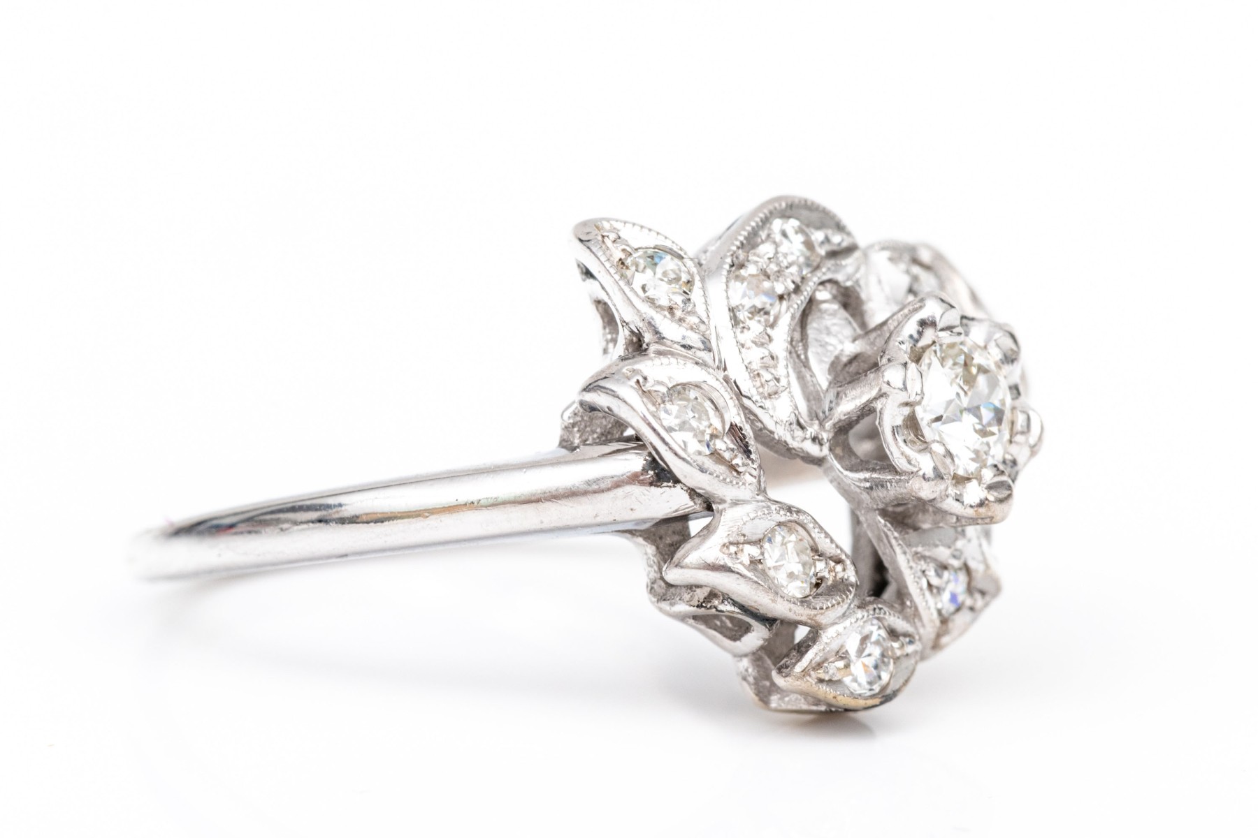 14k white gold vintage diamond cluster ring, app. 0.41 TCW, size 9.25