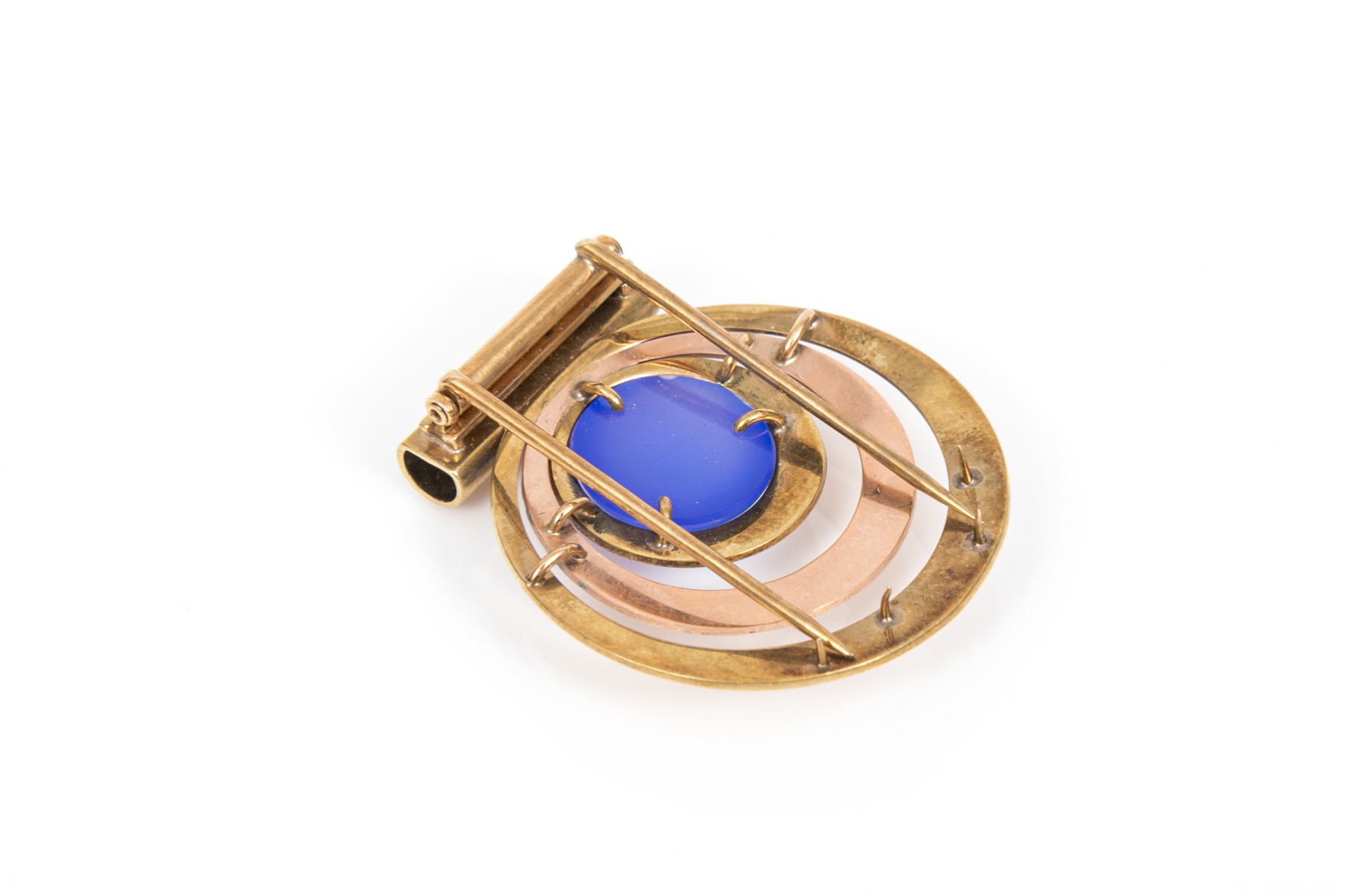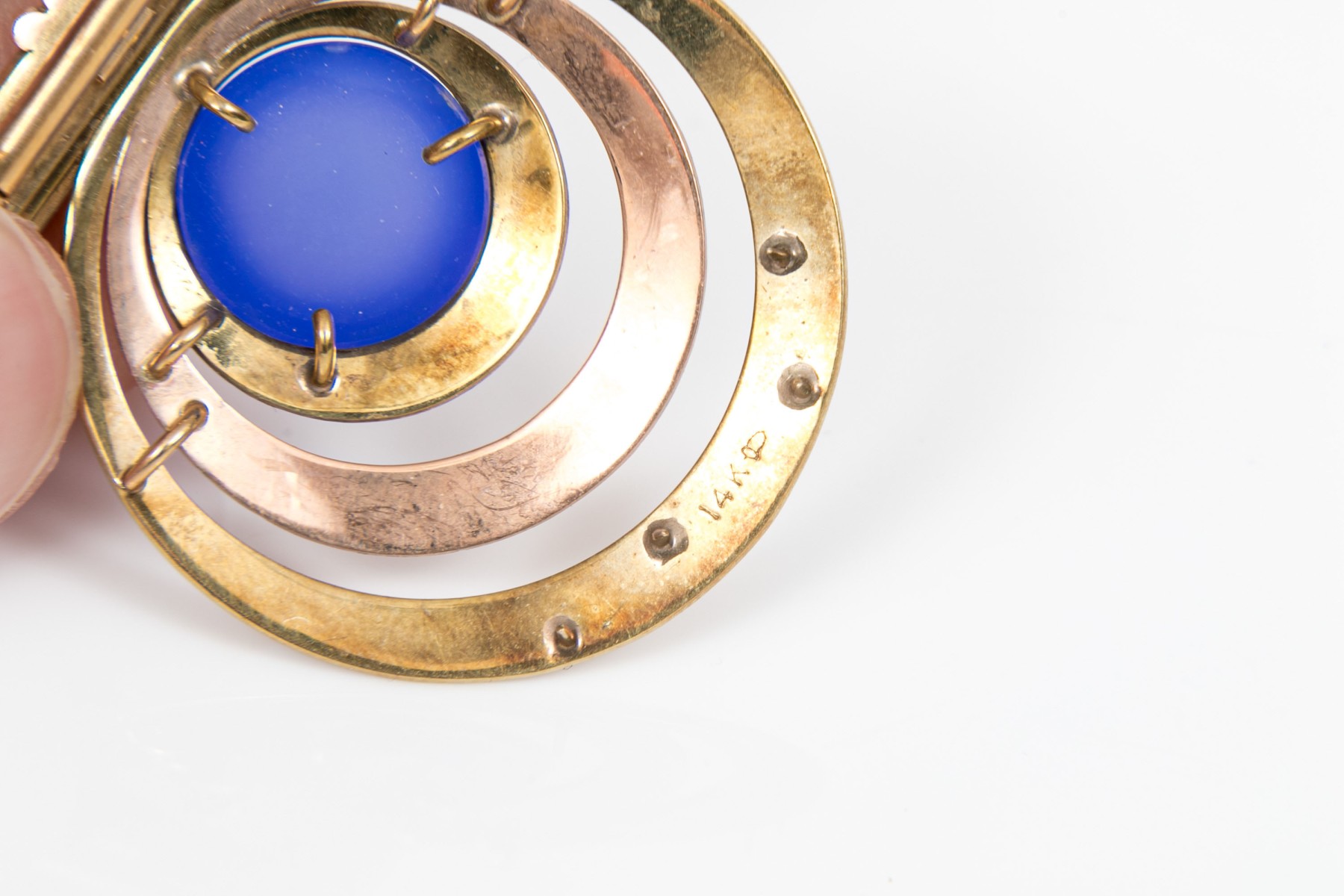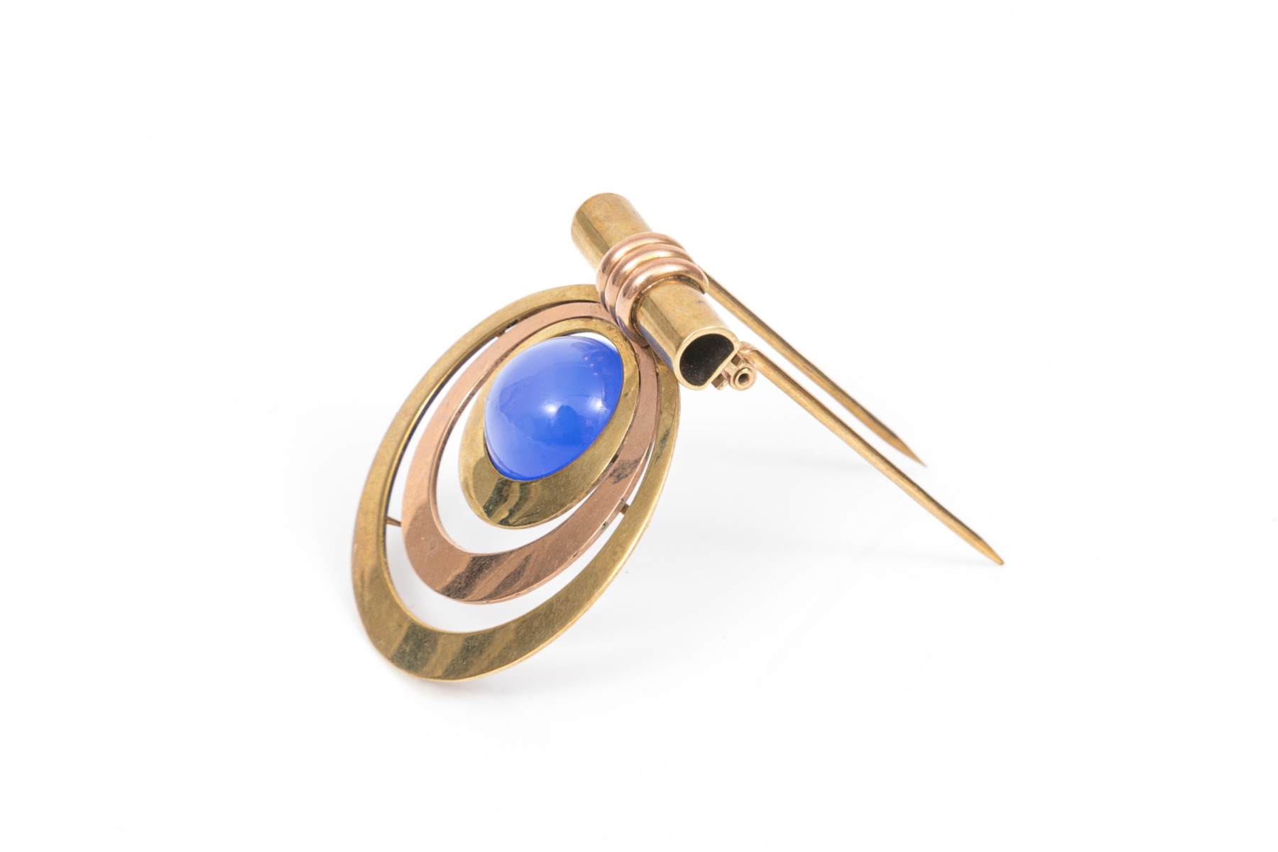 14k yellow and rose gold fabulous Deco style blue chalcedony coat clip