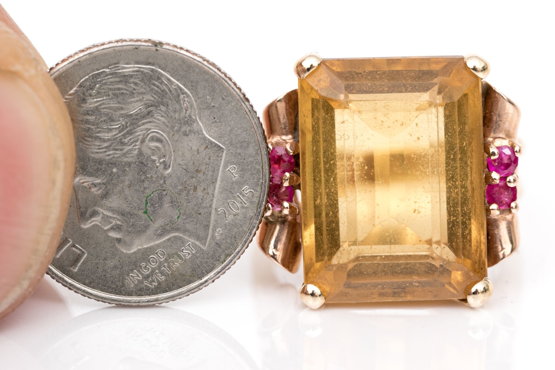 14k Yellow And Rose Gold Handsome Vintage Citrine And Ruby Ring, App. 9.44 CTS, Size 5.5 #341274. Black Rock Galleries provides high end estate liquidation services through online estate auctions and a 50,000 sq ft designer showroom. estate liquidator, estate sale, online auction, antiques, fine art, liquidation, clean outs, auction, consignment, interior design, fine jewelry, collectibles, appraisals, estate appraisals, estate services, decor, furniture, furniture consignment, antique center, consignment shop. We offer appraisal services and specialize in fine art, jewelry, antiques and decorative arts. Sell with us. Black Rock Galleries is the tri-state's largest estate liquidator serving New England and the greater New York City area. We are the trusted source for expert appraisals, auction services, estate sales, and consignments. Black Rock Galleries is the east coast's largest and most trusted estate liquidator, with locations in Connecticut, greater Boston, MA and Raleigh, NC, Fairfield, Southport, Apex, TX. We are the best source for expert appraisals, auction services, estate sales and consignments. We have served thousands of families and estates with compassion, professionalism and expertise. BRG works with attorneys, executors, realtors and families to bring the greatest return on personal and estate property in the current market. Our unique combination of services make us the easy choice to get the job done in a timely and stress-free manner. We are with you from the initial consultation to the final clean out. Our house-built online auction software platform offers clients a dynamic approach to liquidating their personal property. This venue is most successful in bringing the best return with the least amount of disruption for our clients. See our services page for a complete description of this offering. 14k Yellow And Rose Gold Handsome Vintage Citrine And Ruby Ring, App. 9.44 CTS, Size 5.5 #341274