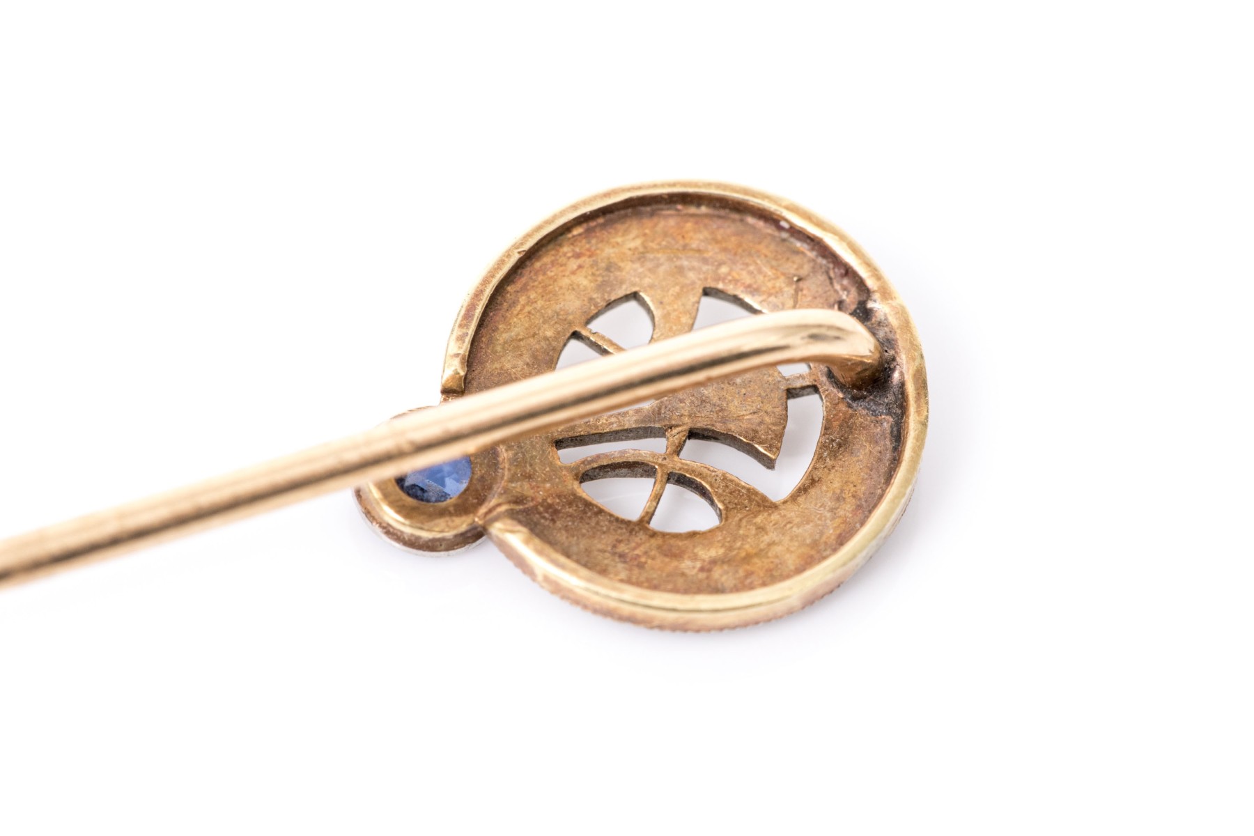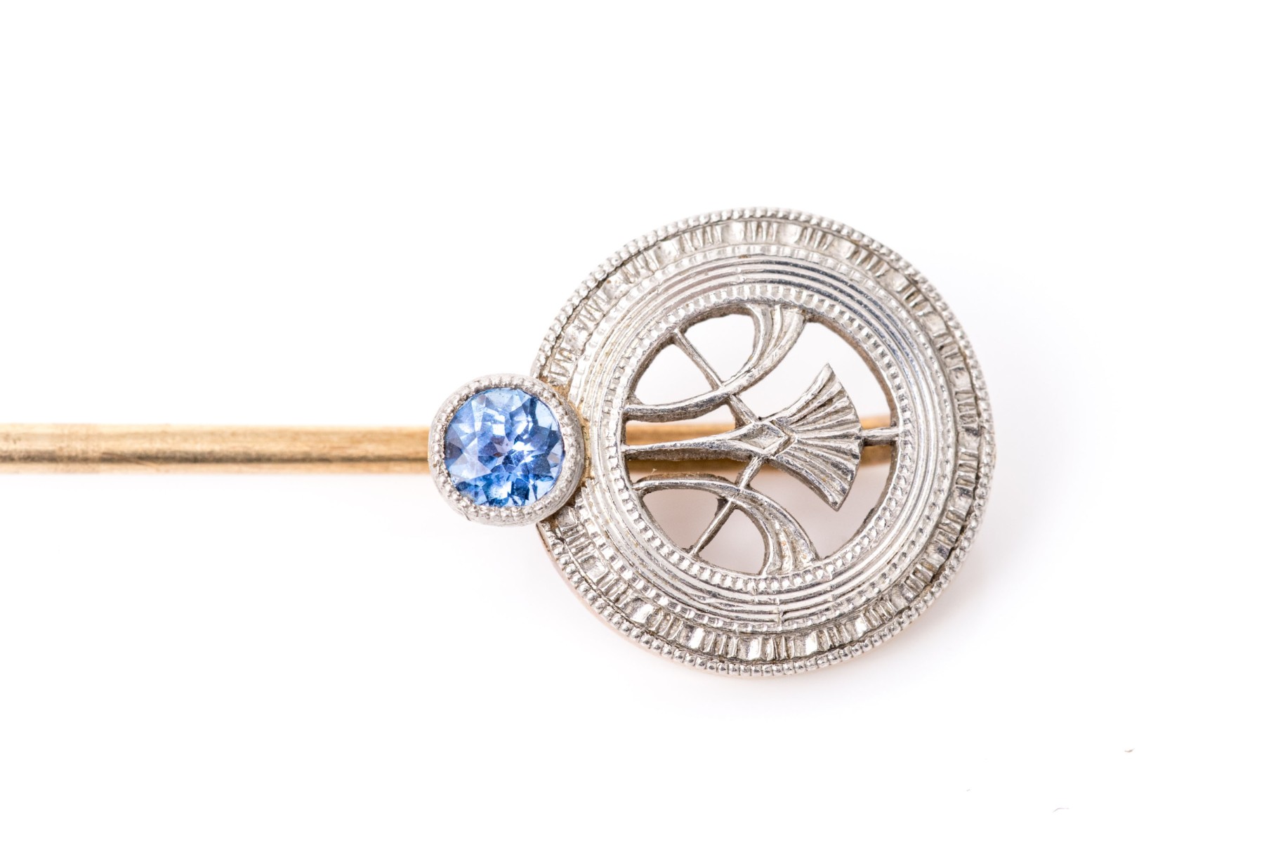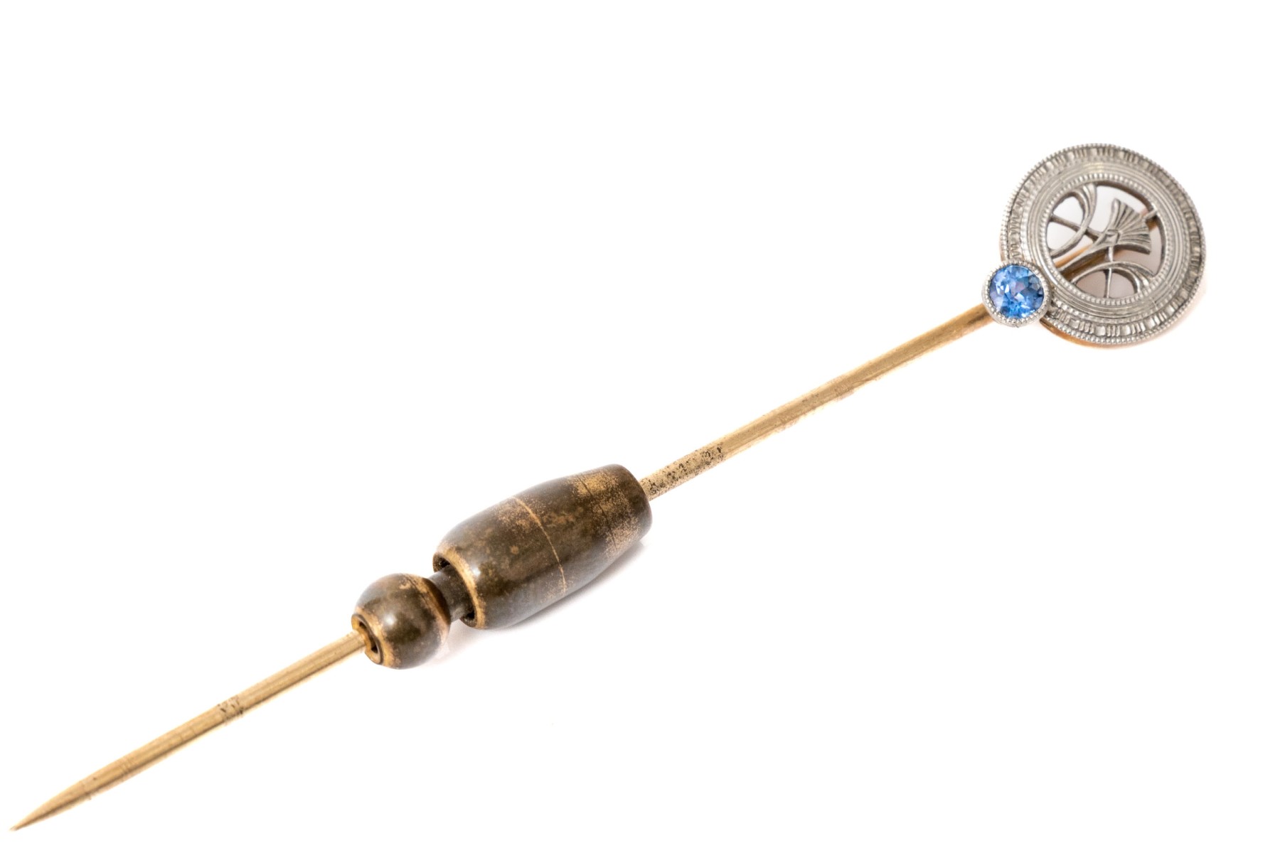 14k yellow and white gold antique Deco style sapphire set stick pin