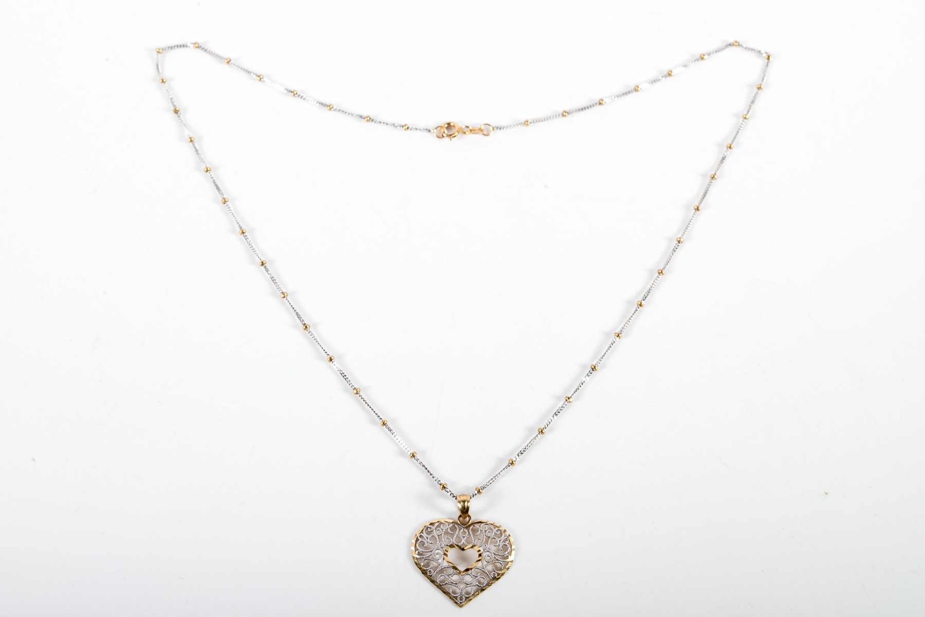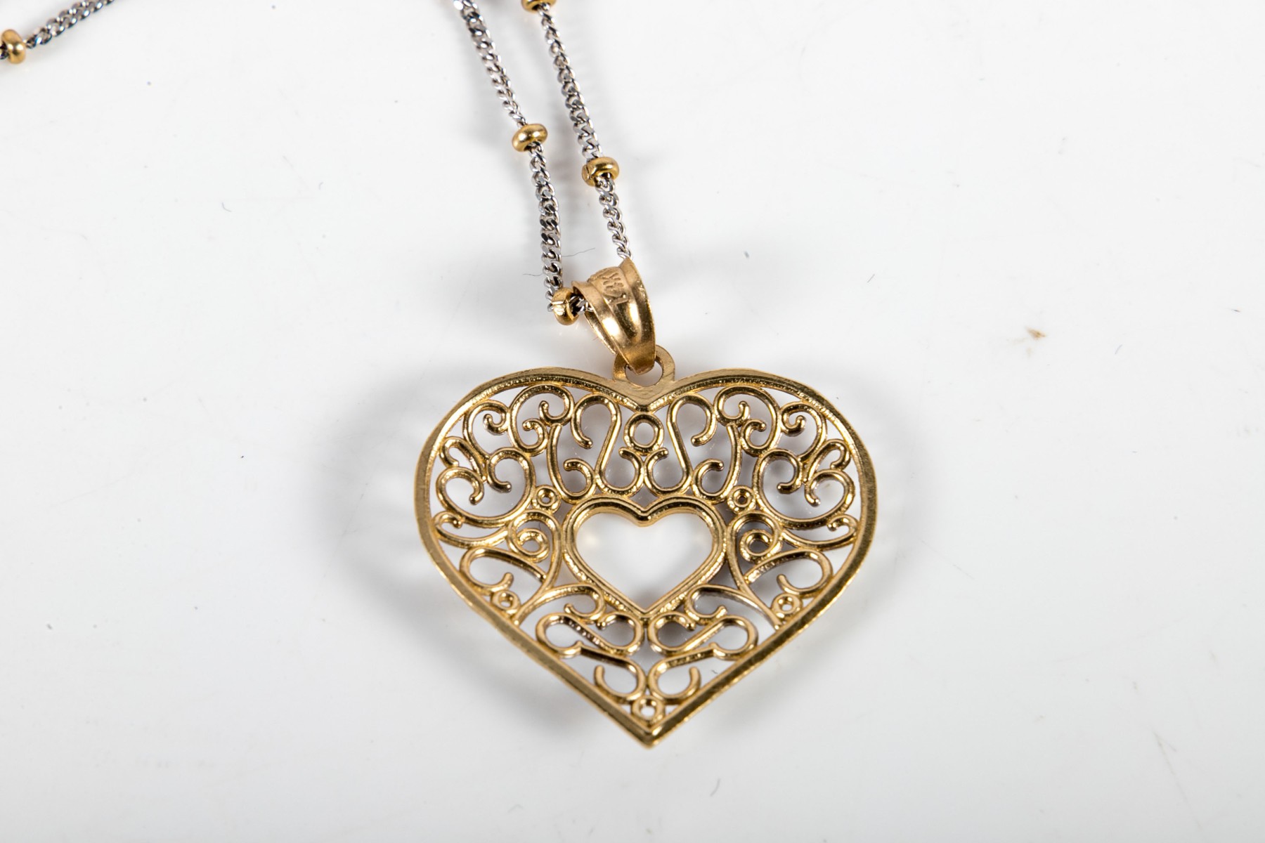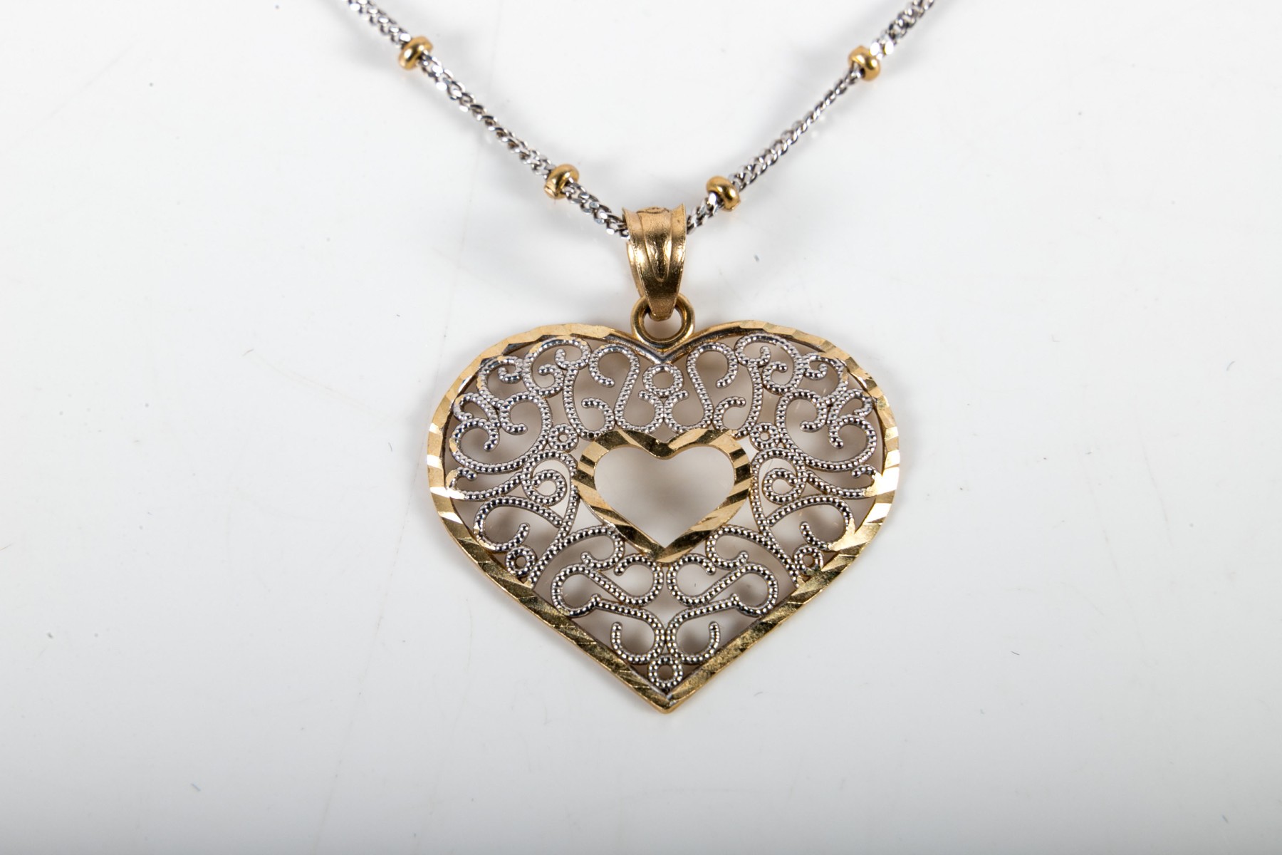 14k Yellow And White Gold Filigree Heart Pendant Necklace #267159. Black Rock Galleries provides high end estate liquidation services through online estate auctions and a 50,000 sq ft designer showroom. estate liquidator, estate sale, online auction, antiques, fine art, liquidation, clean outs, auction, consignment, interior design, fine jewelry, collectibles, appraisals, estate appraisals, estate services, decor, furniture, furniture consignment, antique center, consignment shop. We offer appraisal services and specialize in fine art, jewelry, antiques and decorative arts. Sell with us. Black Rock Galleries is the tri-state's largest estate liquidator serving New England and the greater New York City area. We are the trusted source for expert appraisals, auction services, estate sales, and consignments. Black Rock Galleries is the east coast's largest and most trusted estate liquidator, with locations in Connecticut, greater Boston, MA and Raleigh, NC, Fairfield, Southport, Apex, TX. We are the best source for expert appraisals, auction services, estate sales and consignments. We have served thousands of families and estates with compassion, professionalism and expertise. BRG works with attorneys, executors, realtors and families to bring the greatest return on personal and estate property in the current market. Our unique combination of services make us the easy choice to get the job done in a timely and stress-free manner. We are with you from the initial consultation to the final clean out. Our house-built online auction software platform offers clients a dynamic approach to liquidating their personal property. This venue is most successful in bringing the best return with the least amount of disruption for our clients. See our services page for a complete description of this offering. 14k Yellow And White Gold Filigree Heart Pendant Necklace #267159