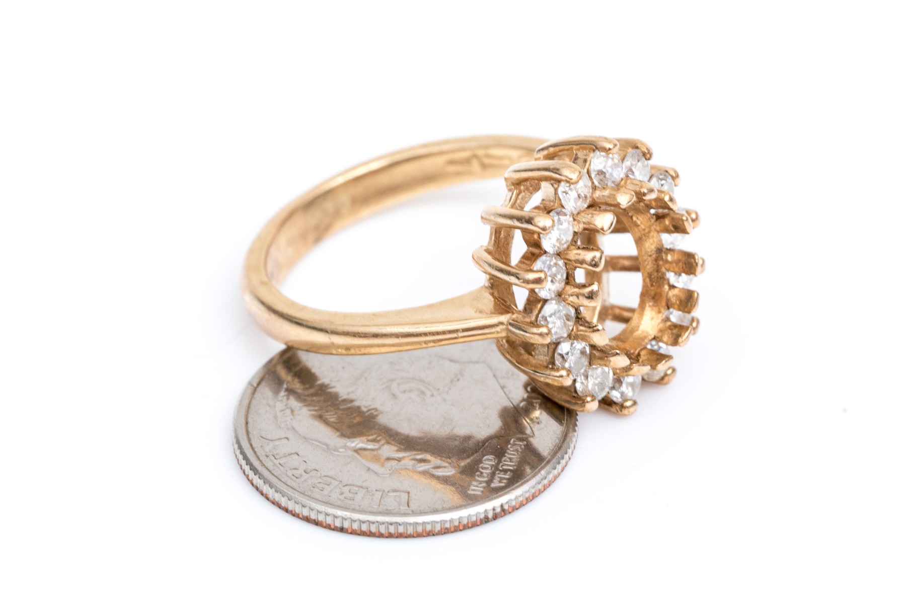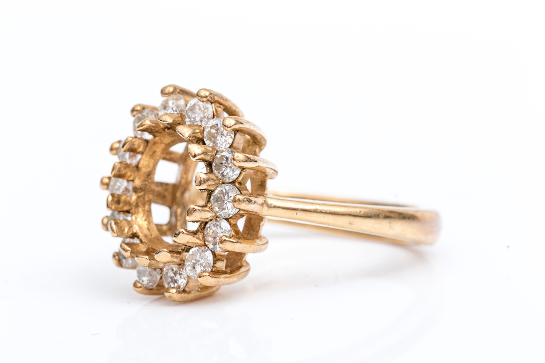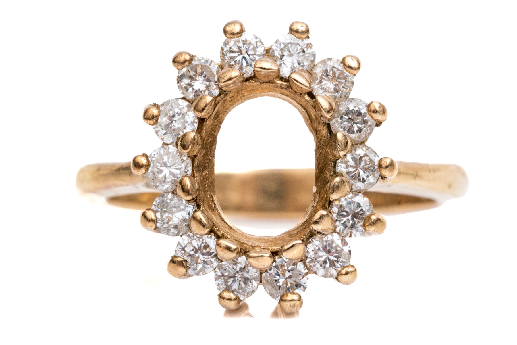 14k yellow gold 9x7 oval moissanite halo semi mount ring, size 6.5, prong set