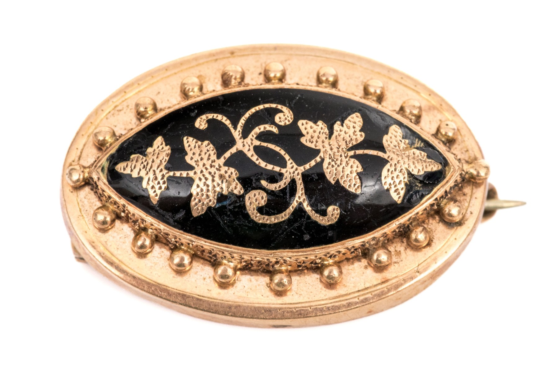 14k yellow gold antique foliate motif mourner's brooch, pin stem is not gold