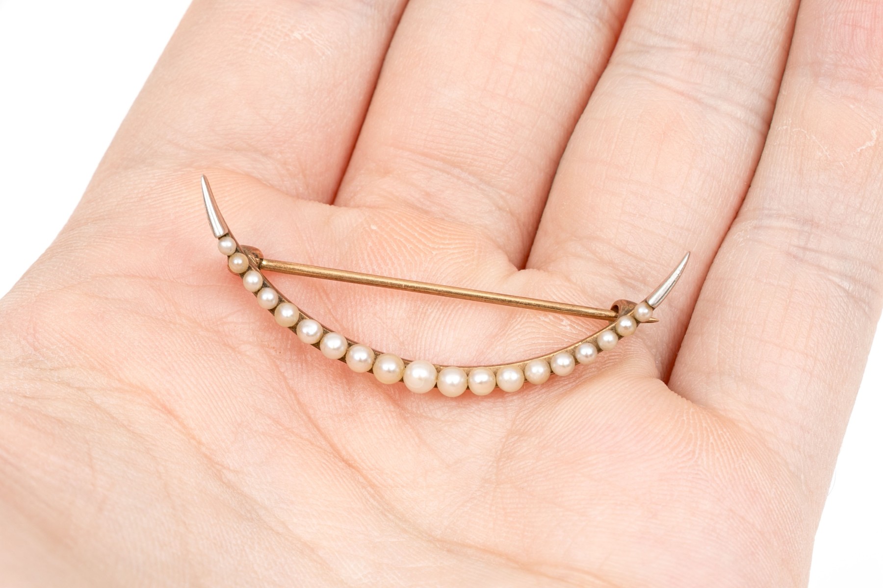 14k Yellow Gold Antique Half Moon Shape Seed Pearl Set Pin #259491. Black Rock Galleries provides high end estate liquidation services through online estate auctions and a 50,000 sq ft designer showroom. estate liquidator, estate sale, online auction, antiques, fine art, liquidation, clean outs, auction, consignment, interior design, fine jewelry, collectibles, appraisals, estate appraisals, estate services, decor, furniture, furniture consignment, antique center, consignment shop. We offer appraisal services and specialize in fine art, jewelry, antiques and decorative arts. Sell with us. Black Rock Galleries is the tri-state's largest estate liquidator serving New England and the greater New York City area. We are the trusted source for expert appraisals, auction services, estate sales, and consignments. Black Rock Galleries is the east coast's largest and most trusted estate liquidator, with locations in Connecticut, greater Boston, MA and Raleigh, NC, Fairfield, Southport, Apex, TX. We are the best source for expert appraisals, auction services, estate sales and consignments. We have served thousands of families and estates with compassion, professionalism and expertise. BRG works with attorneys, executors, realtors and families to bring the greatest return on personal and estate property in the current market. Our unique combination of services make us the easy choice to get the job done in a timely and stress-free manner. We are with you from the initial consultation to the final clean out. Our house-built online auction software platform offers clients a dynamic approach to liquidating their personal property. This venue is most successful in bringing the best return with the least amount of disruption for our clients. See our services page for a complete description of this offering. 14k Yellow Gold Antique Half Moon Shape Seed Pearl Set Pin #259491