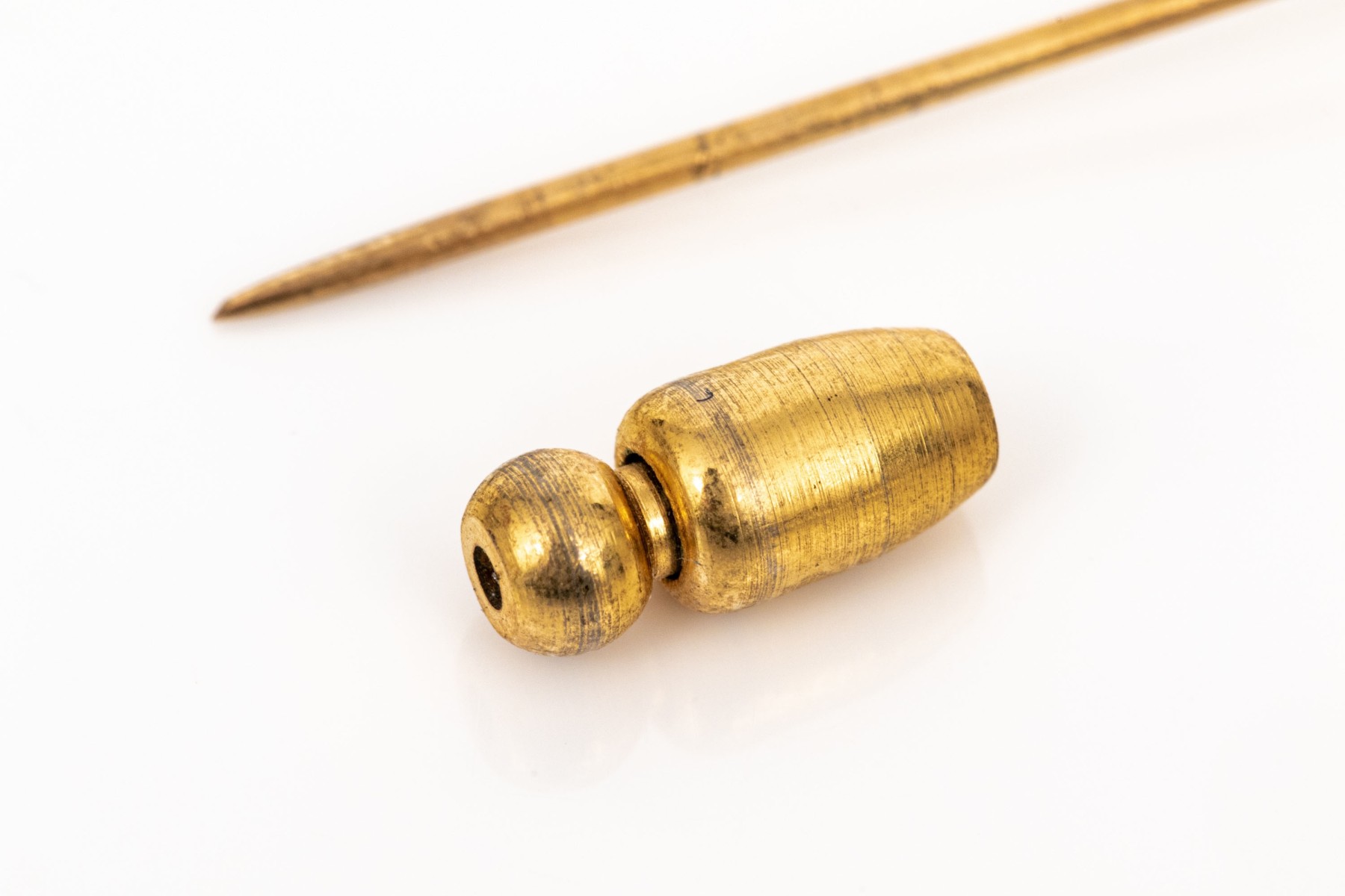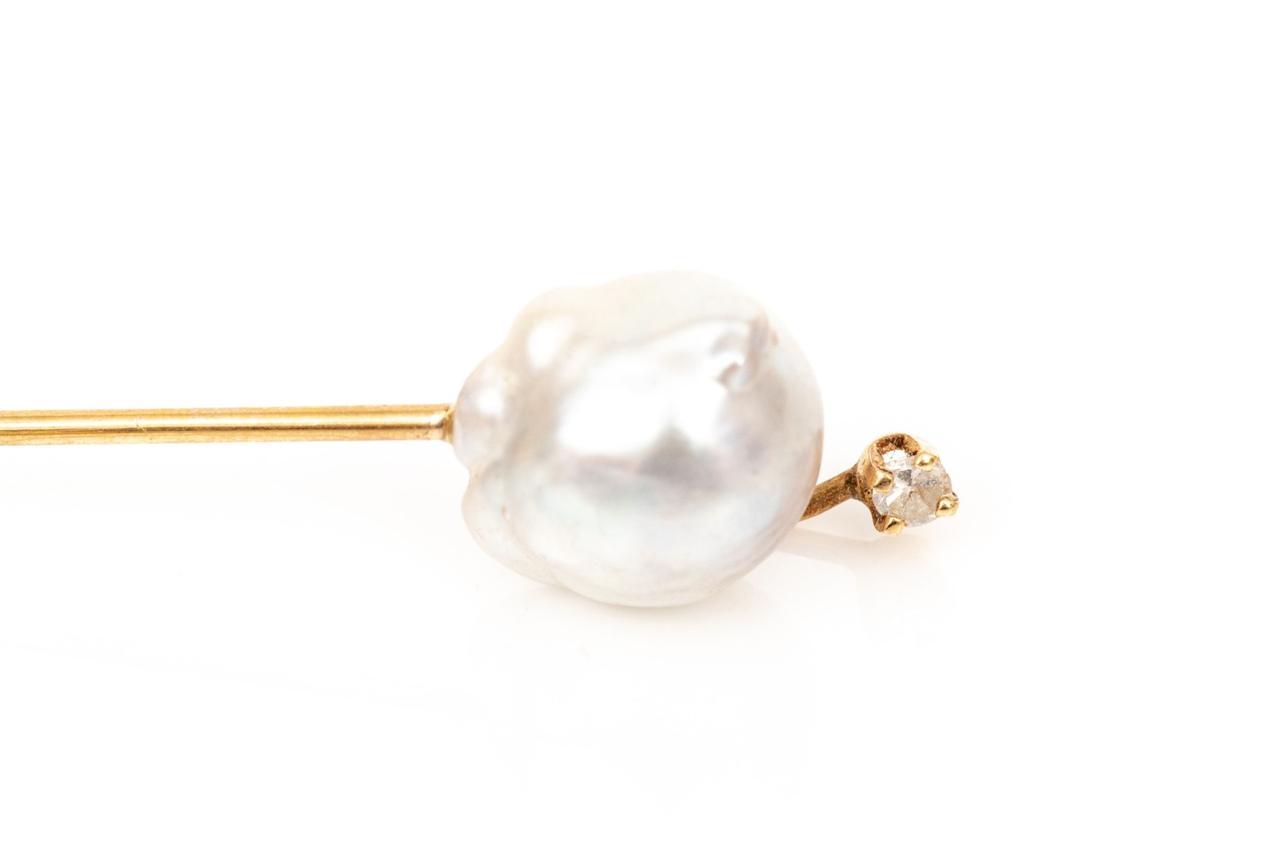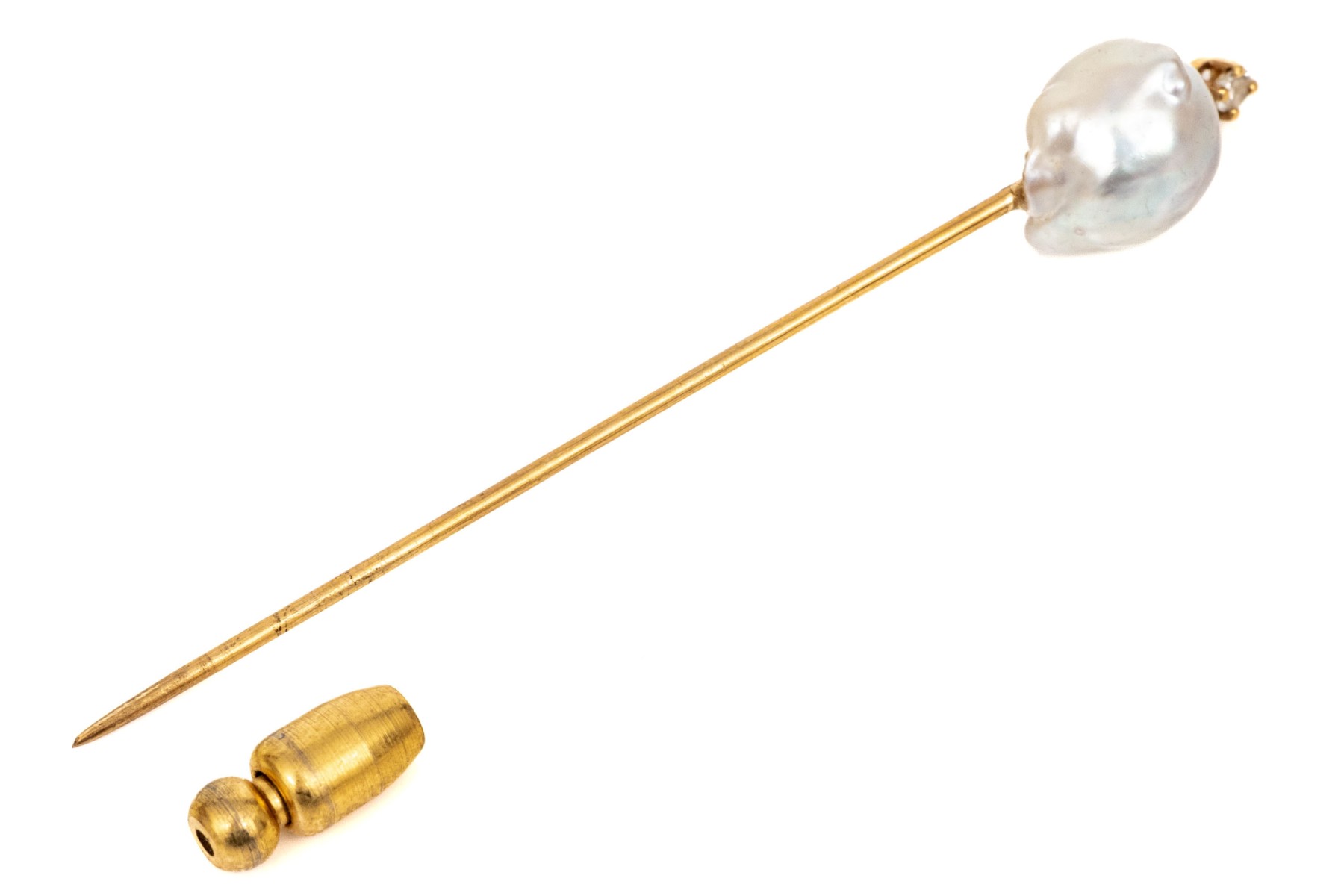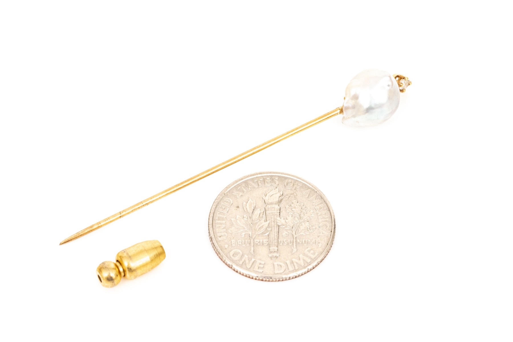 14k yellow gold baroque pearl form and white sapphire stick pin