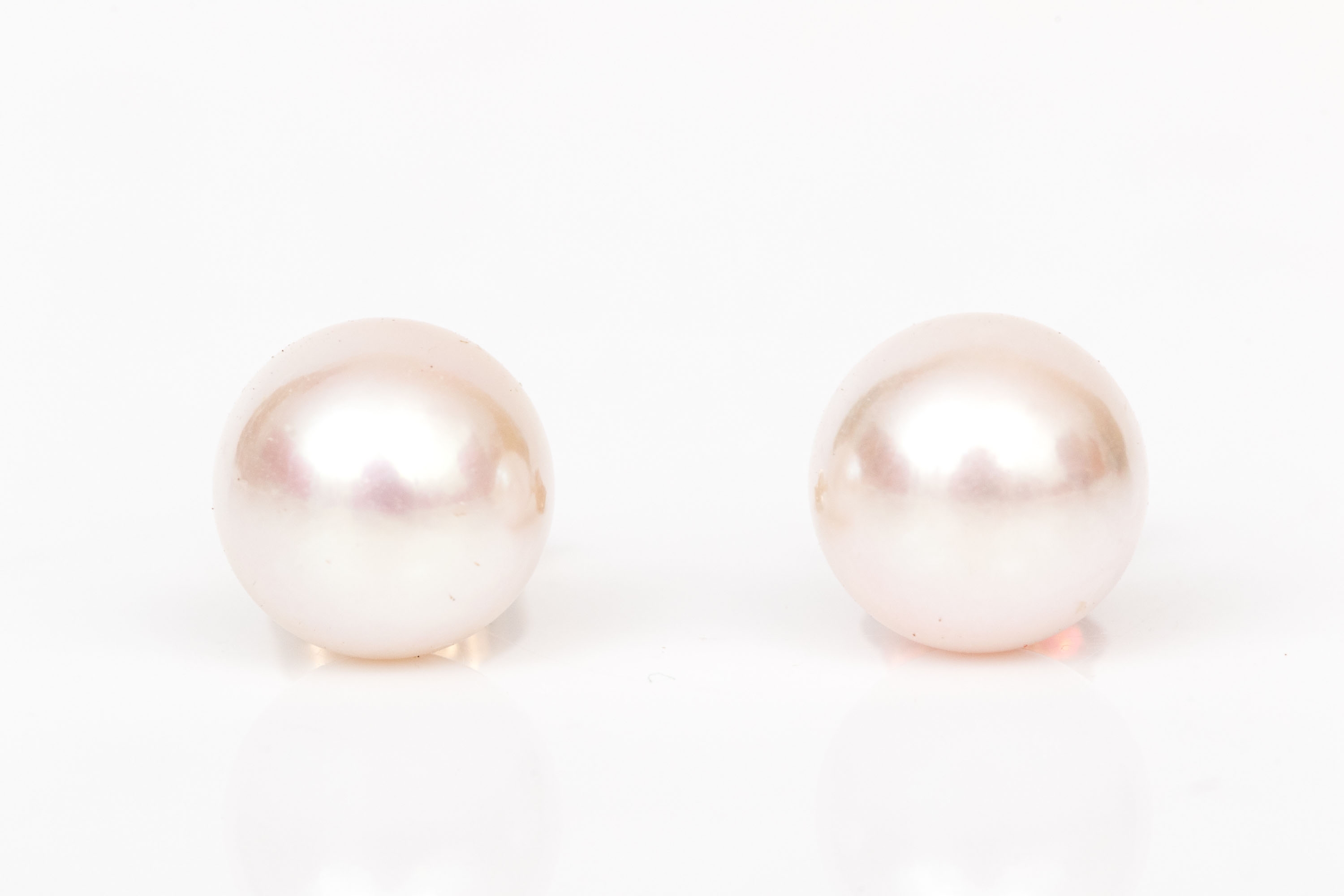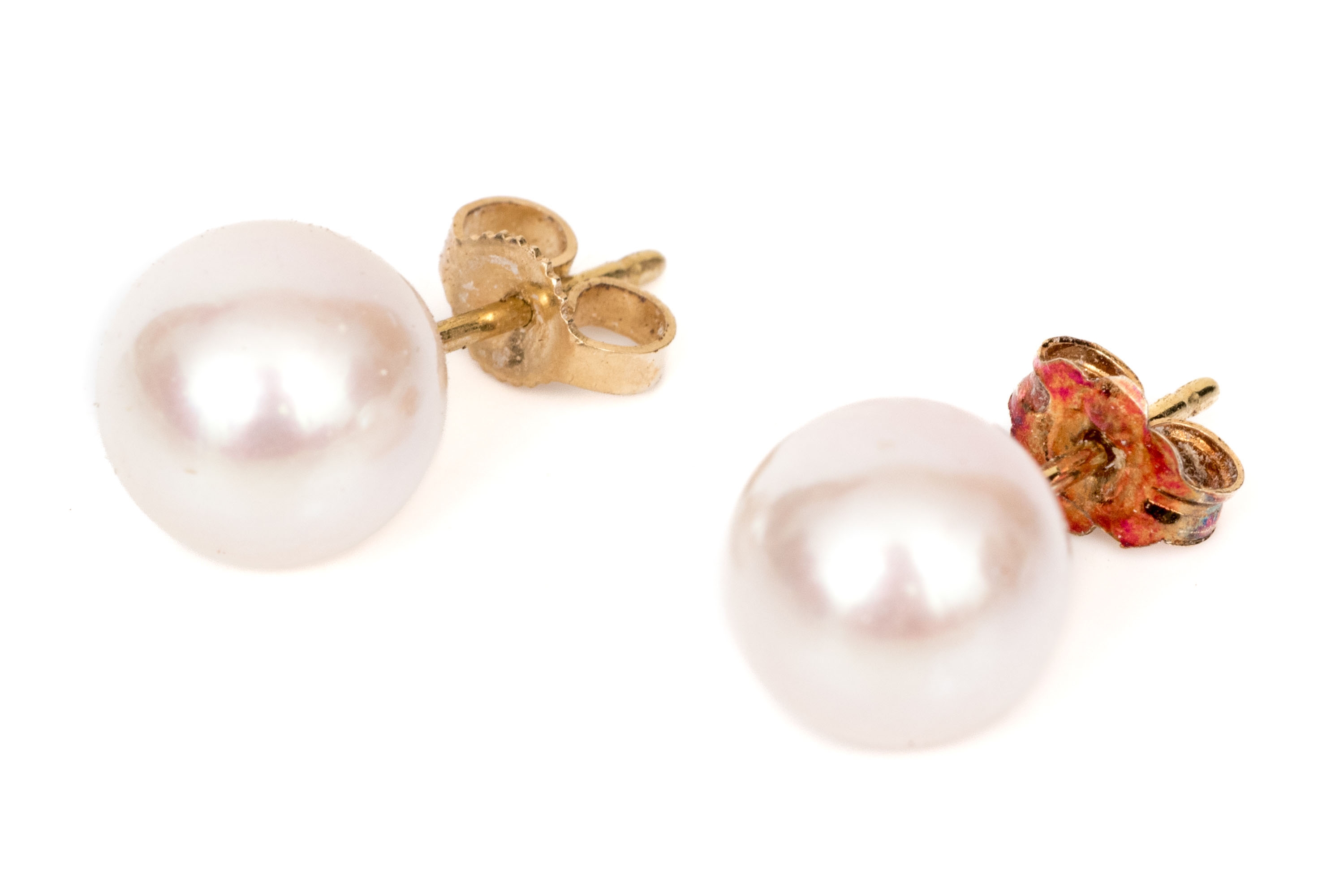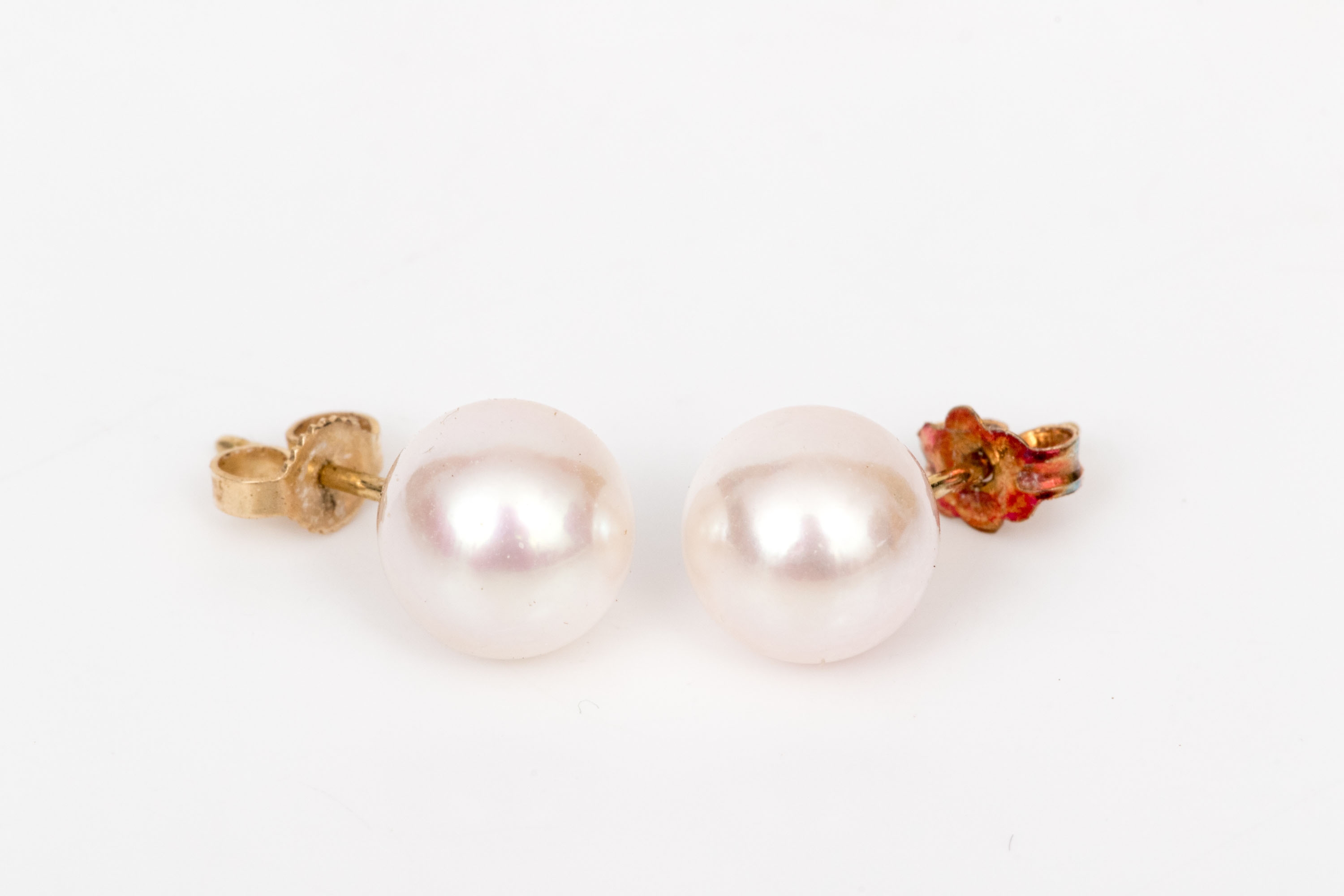 14k yellow gold beautiful classic 8.75mm cultured pearl earrings, finished with posts and clutch style backs