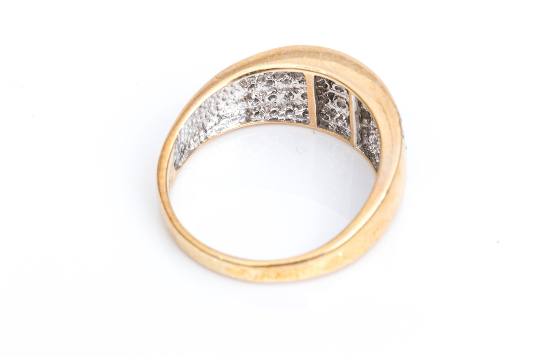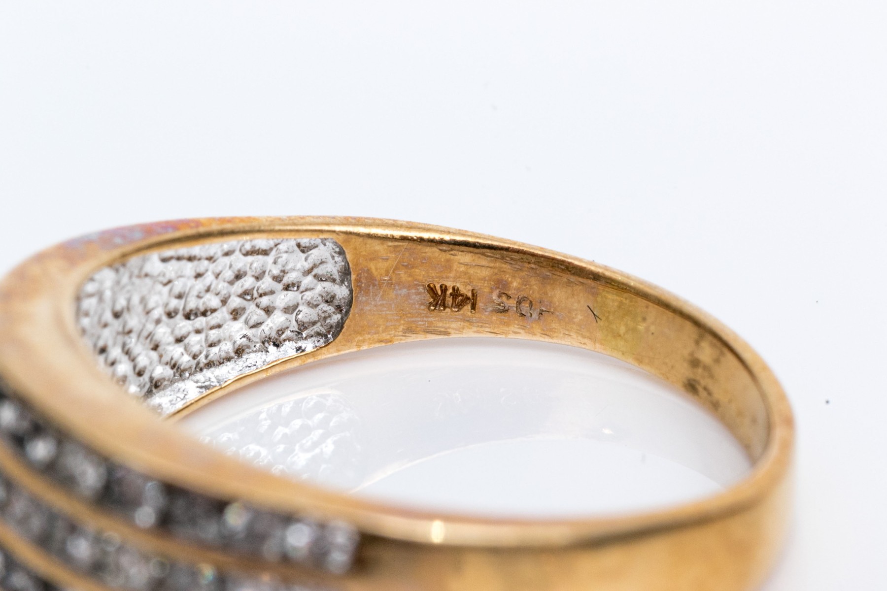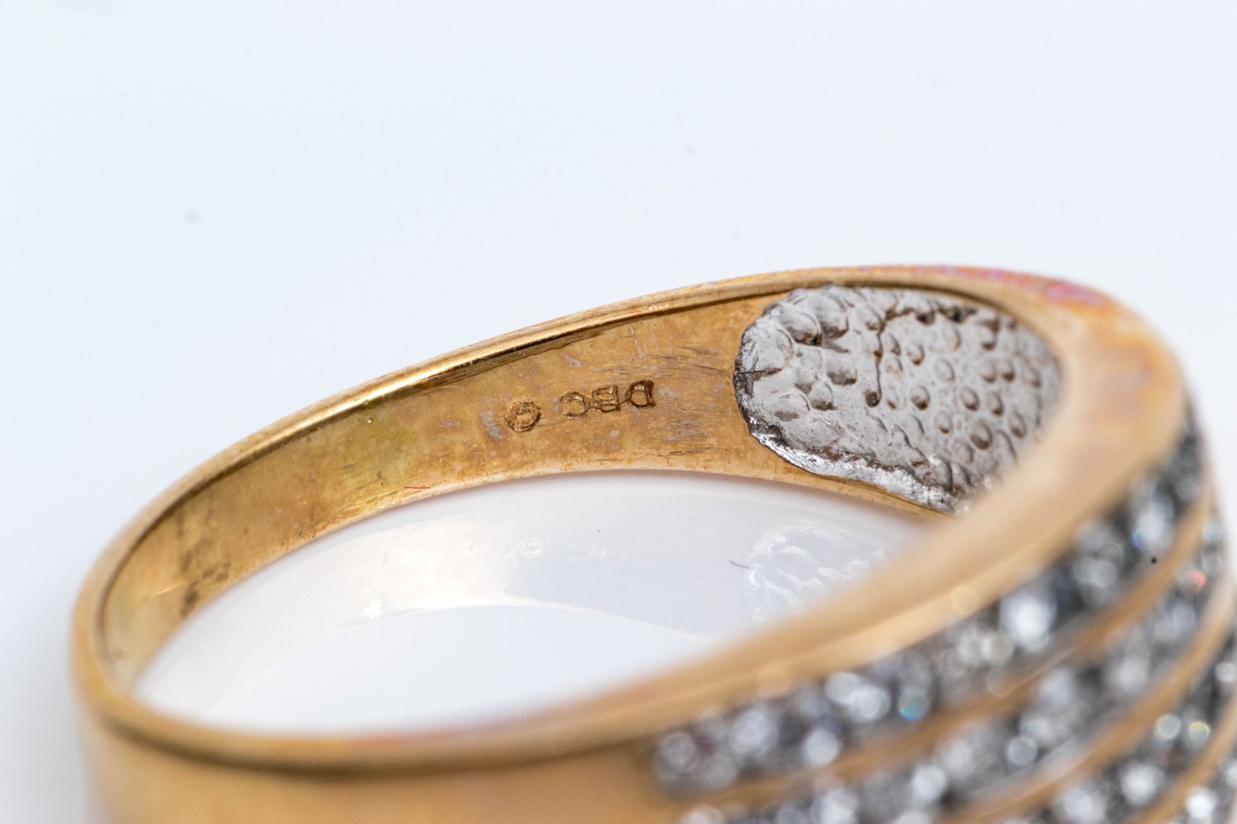 14k yellow gold beautiful four row channel set graduated diamond dome ring, app. 0.92 TCW, size 8.25