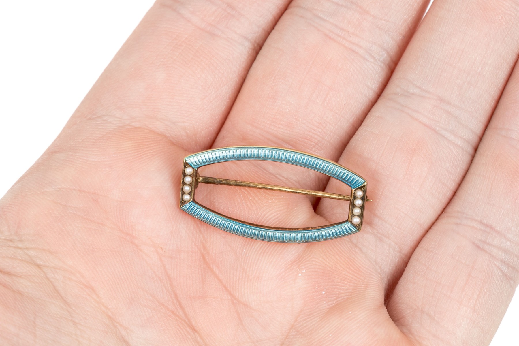 14k yellow gold beautiful vintage enamel and seed pearl scatter pin