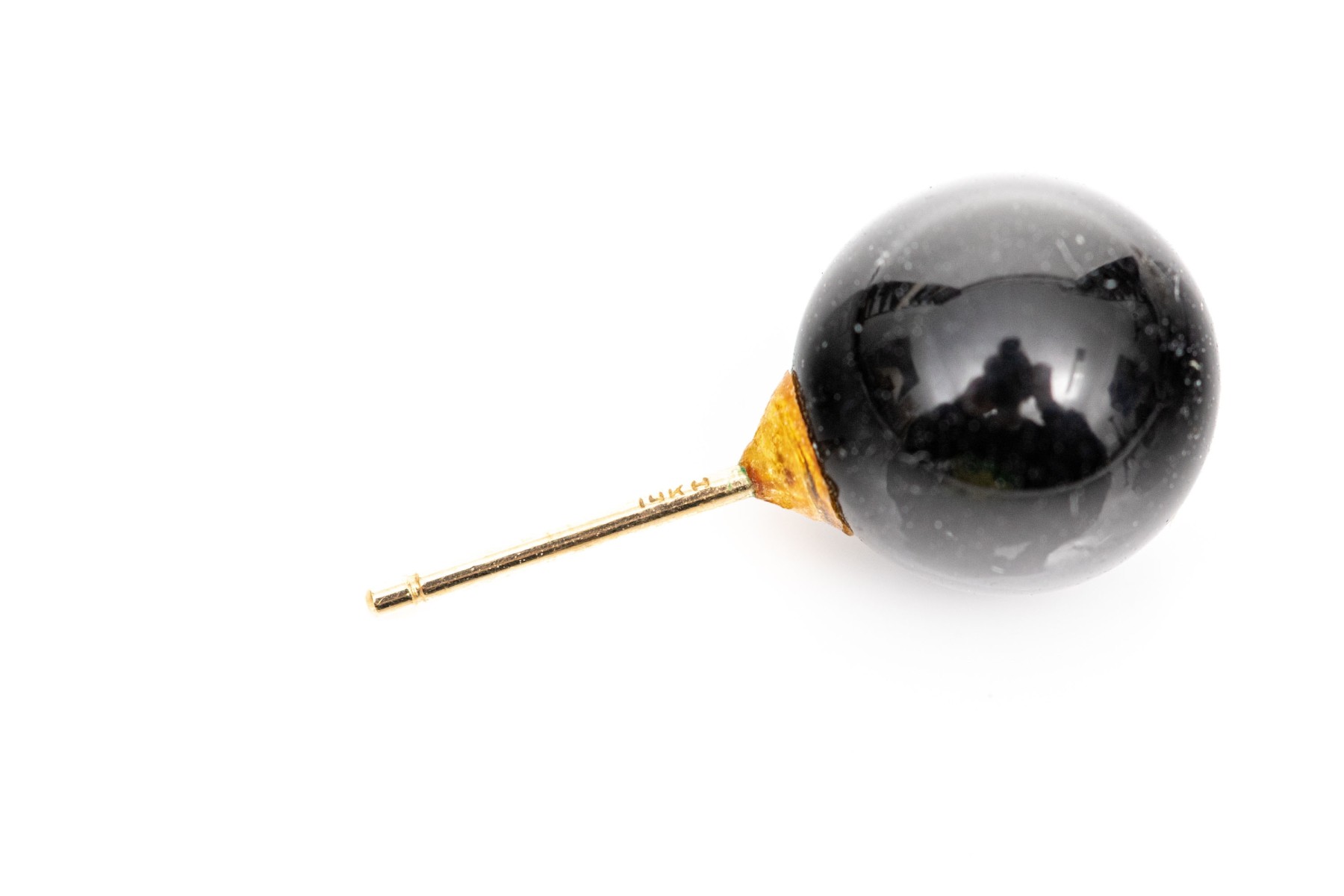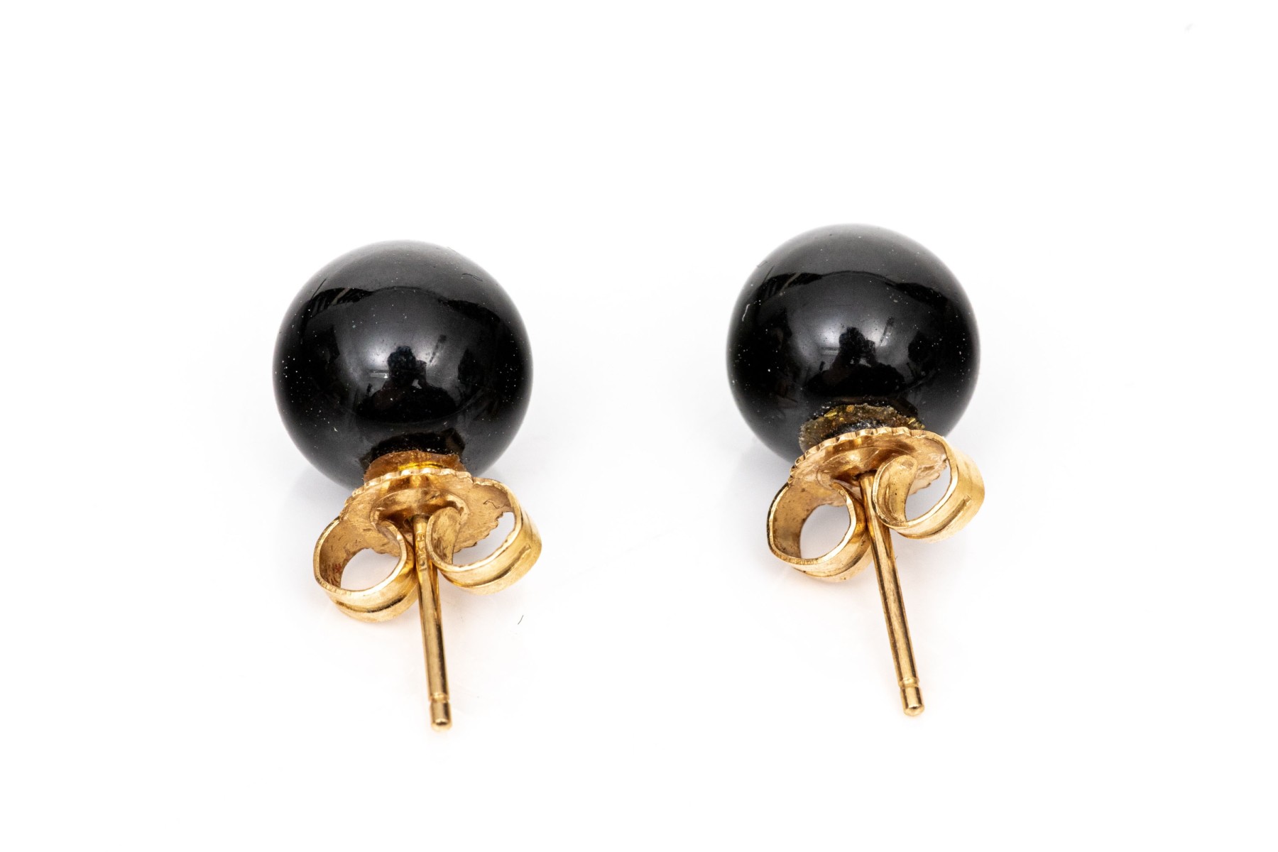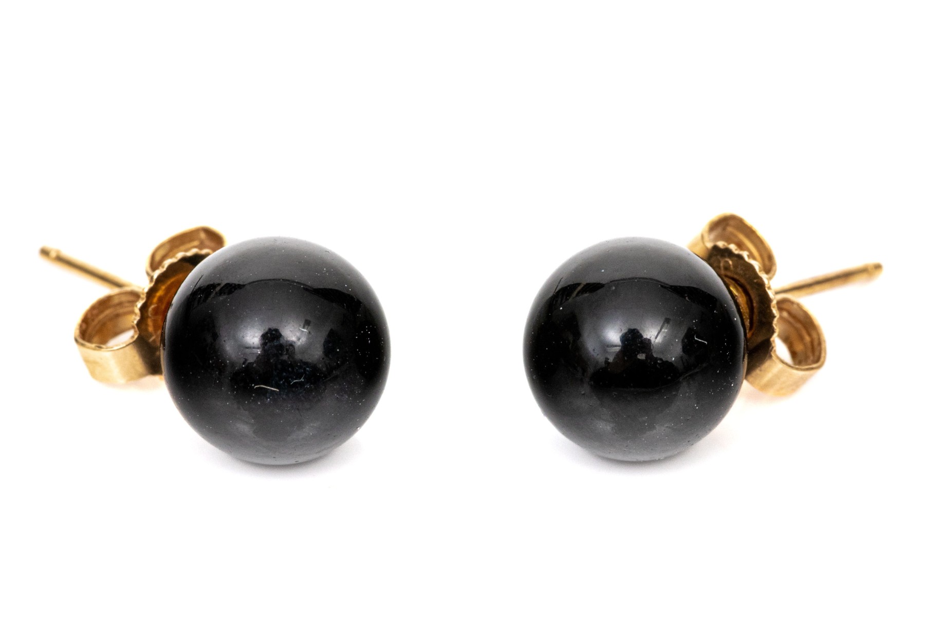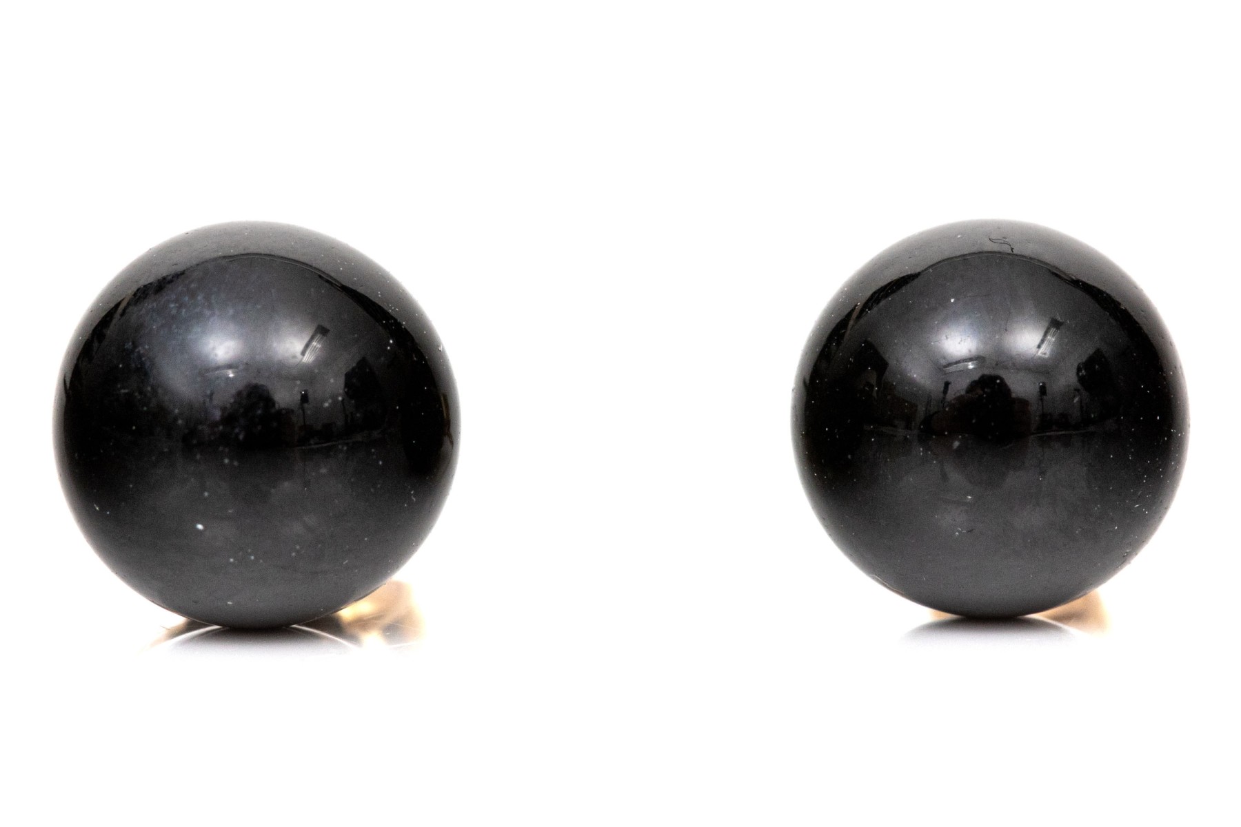 14k yellow gold classic 8.25 mm black onyx ball stud earrings, finished with posts and clutch style backs