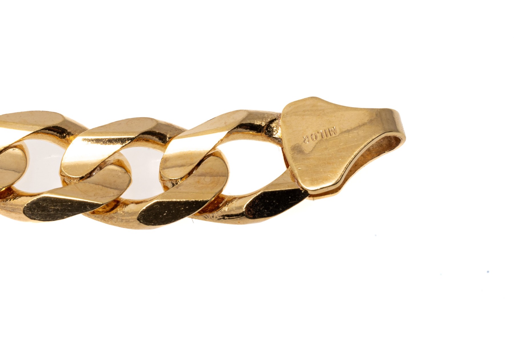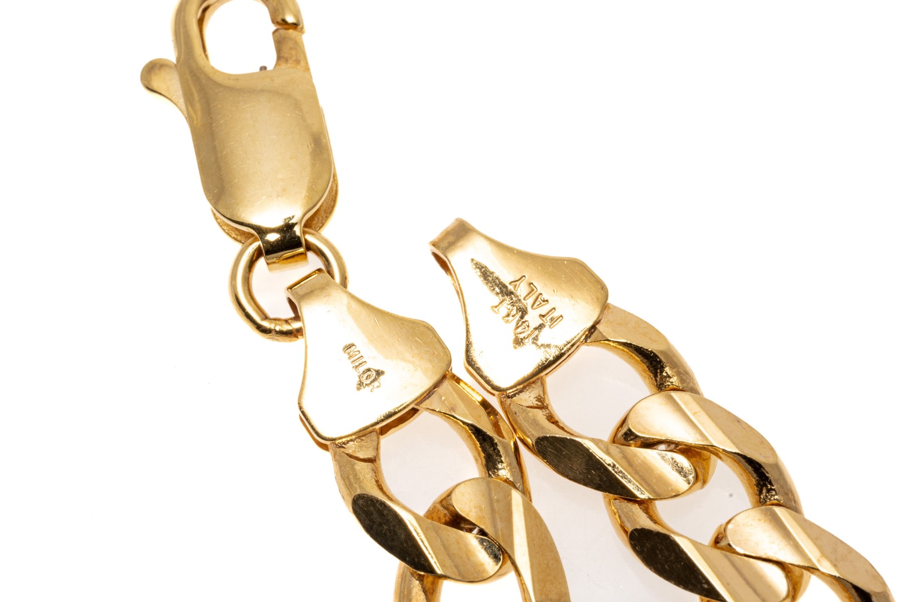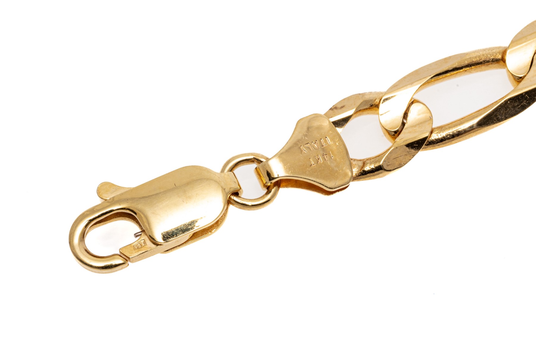 14k yellow gold classic chunky figaro style link bracelet, high polished. The bracelet is finished with a lobster claw style clasp