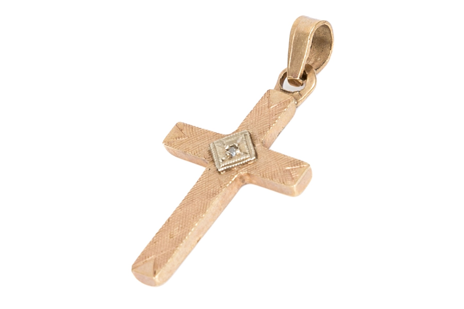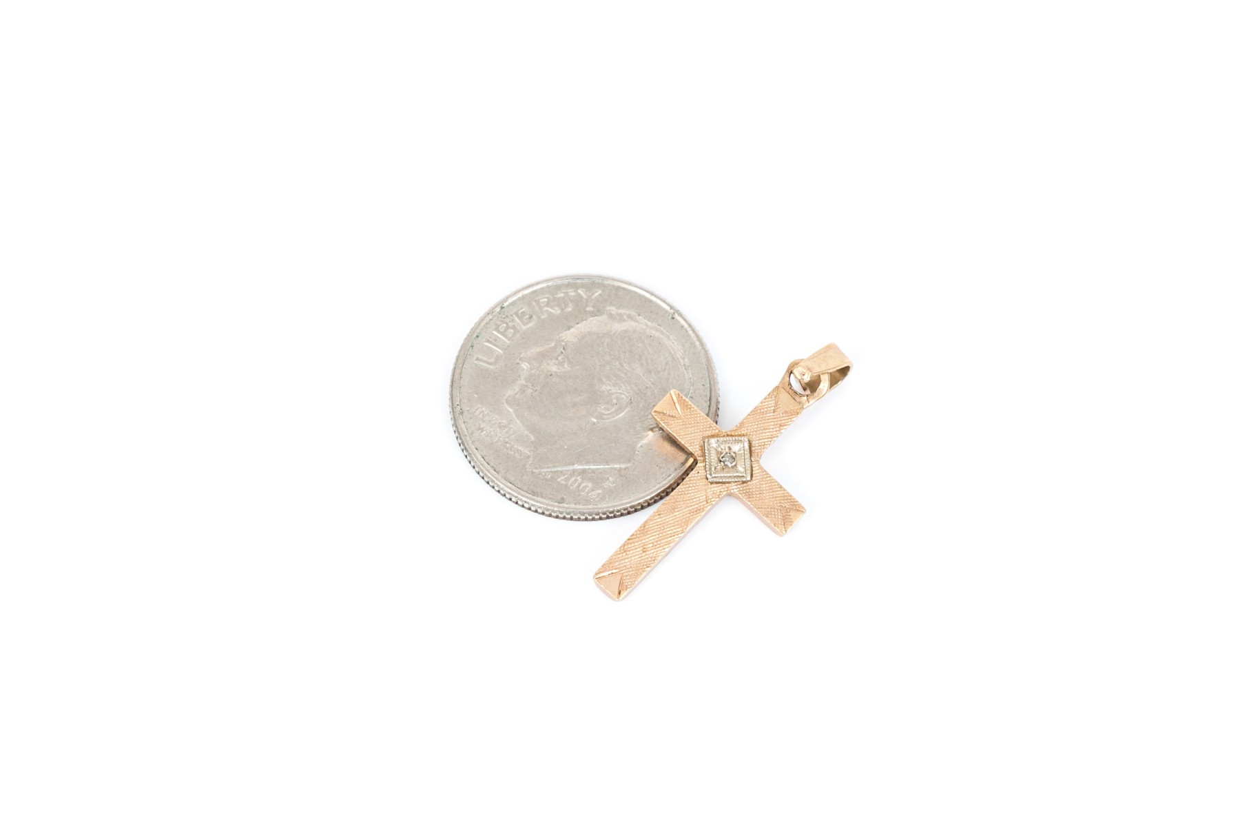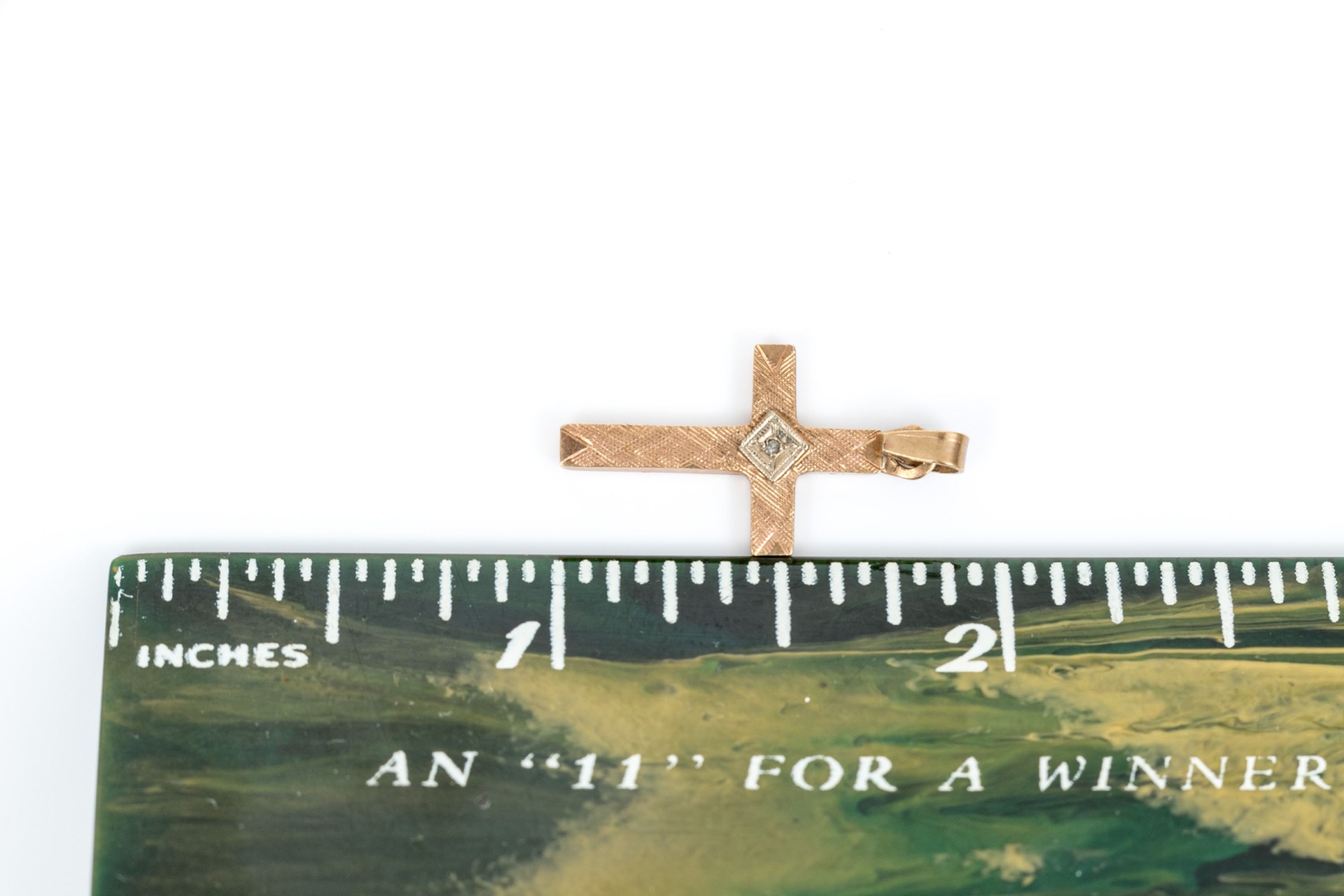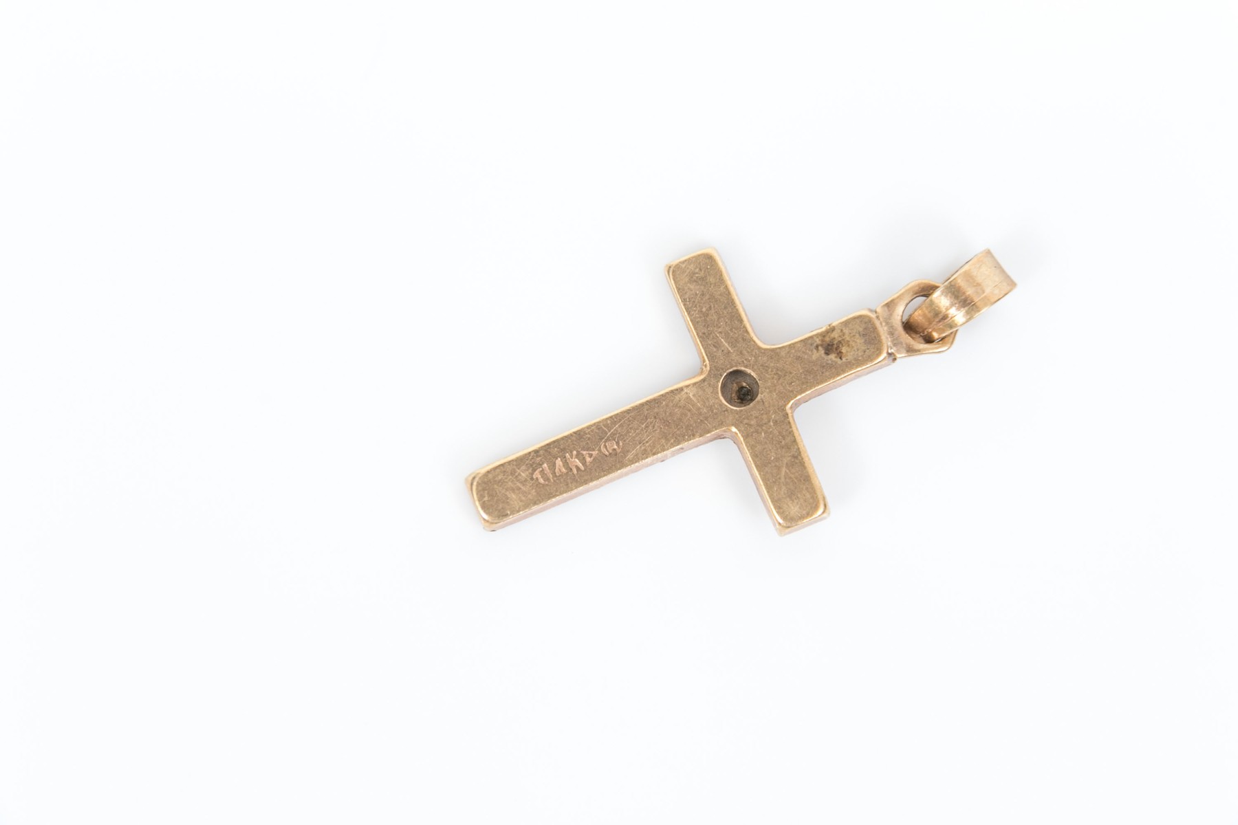 14k yellow gold classic Florentined finished cross, finished with a solid bale