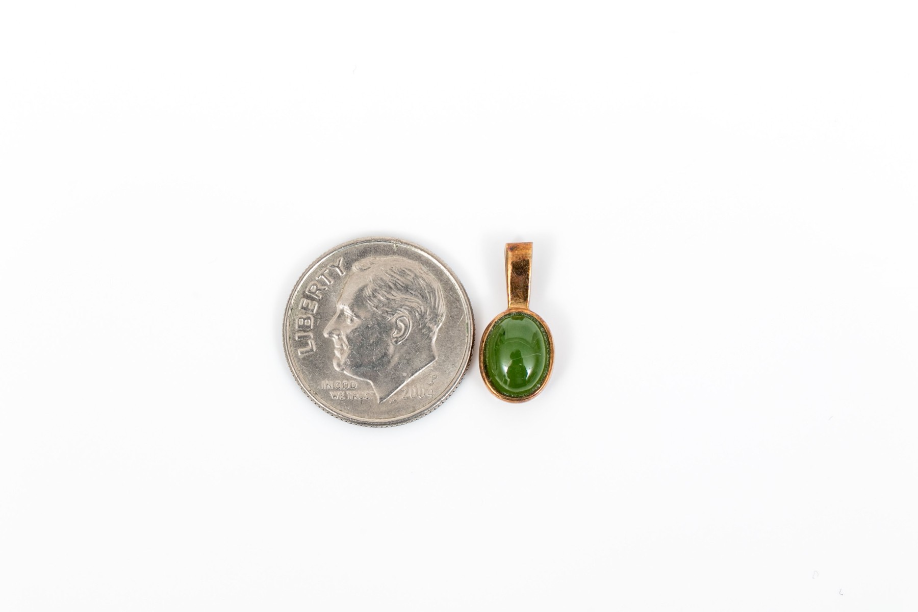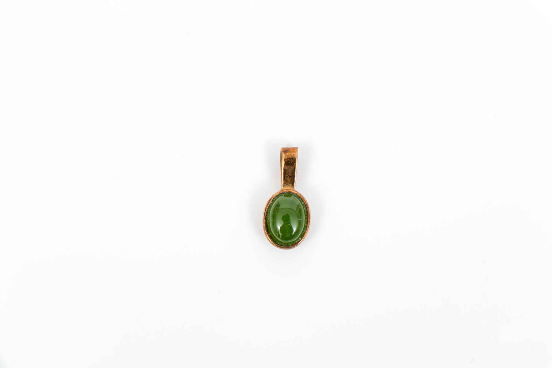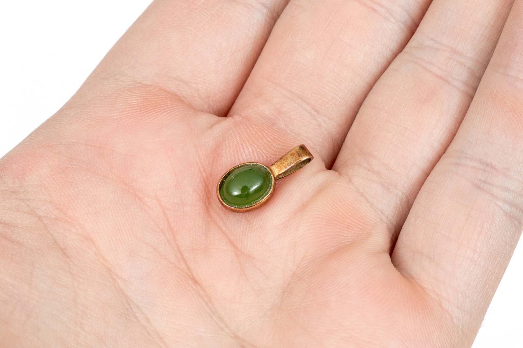14k yellow gold contemporary oval green chalcedony pendant, finished with a solid bale