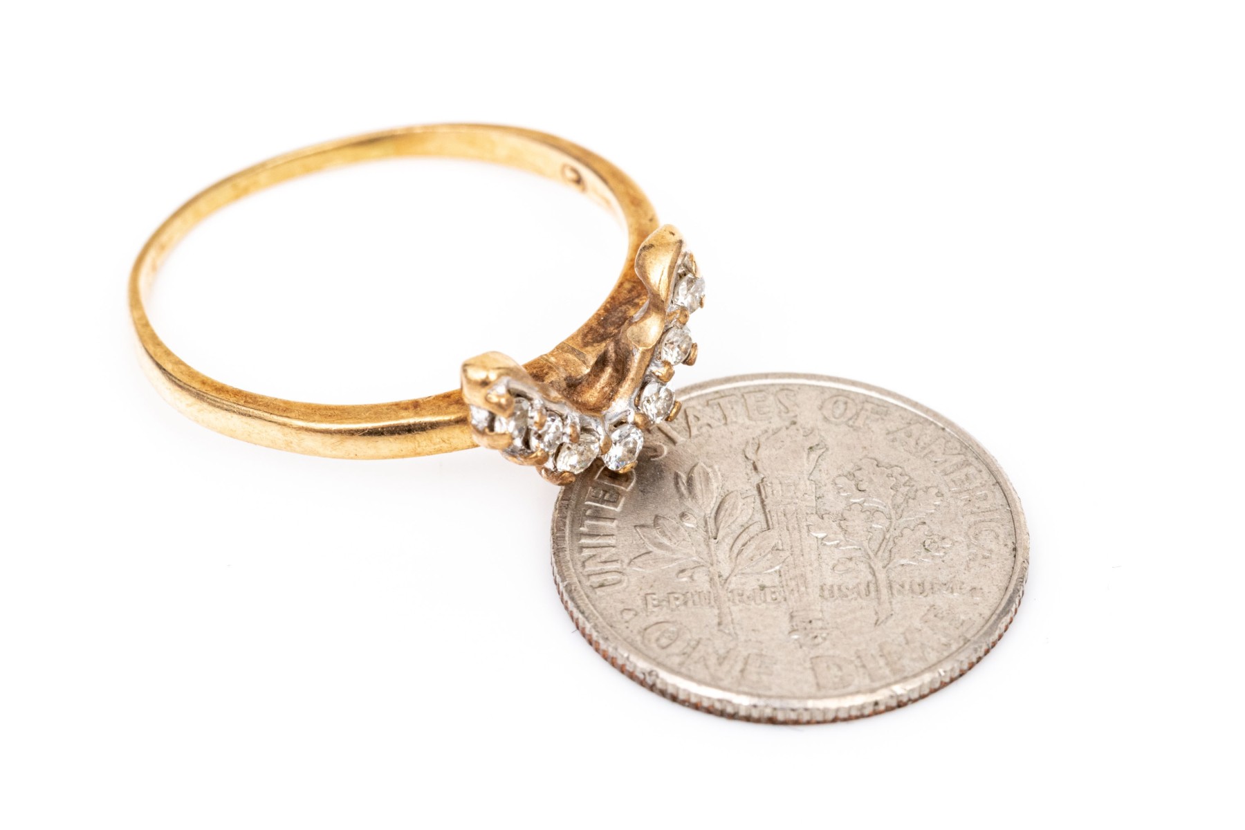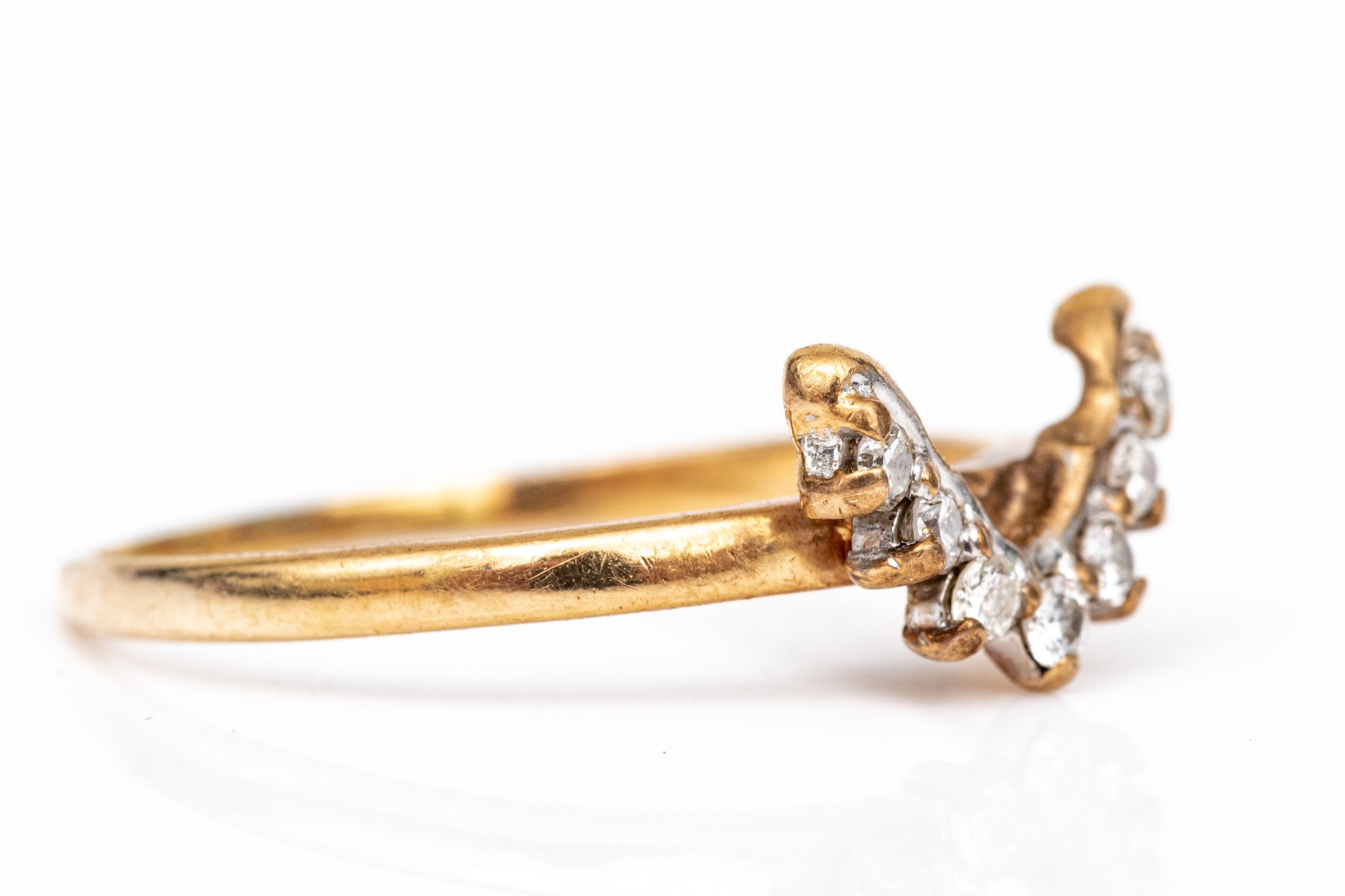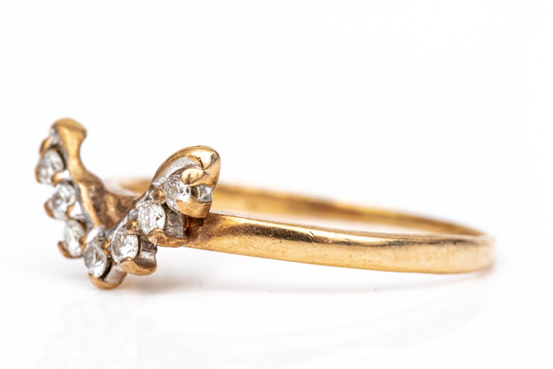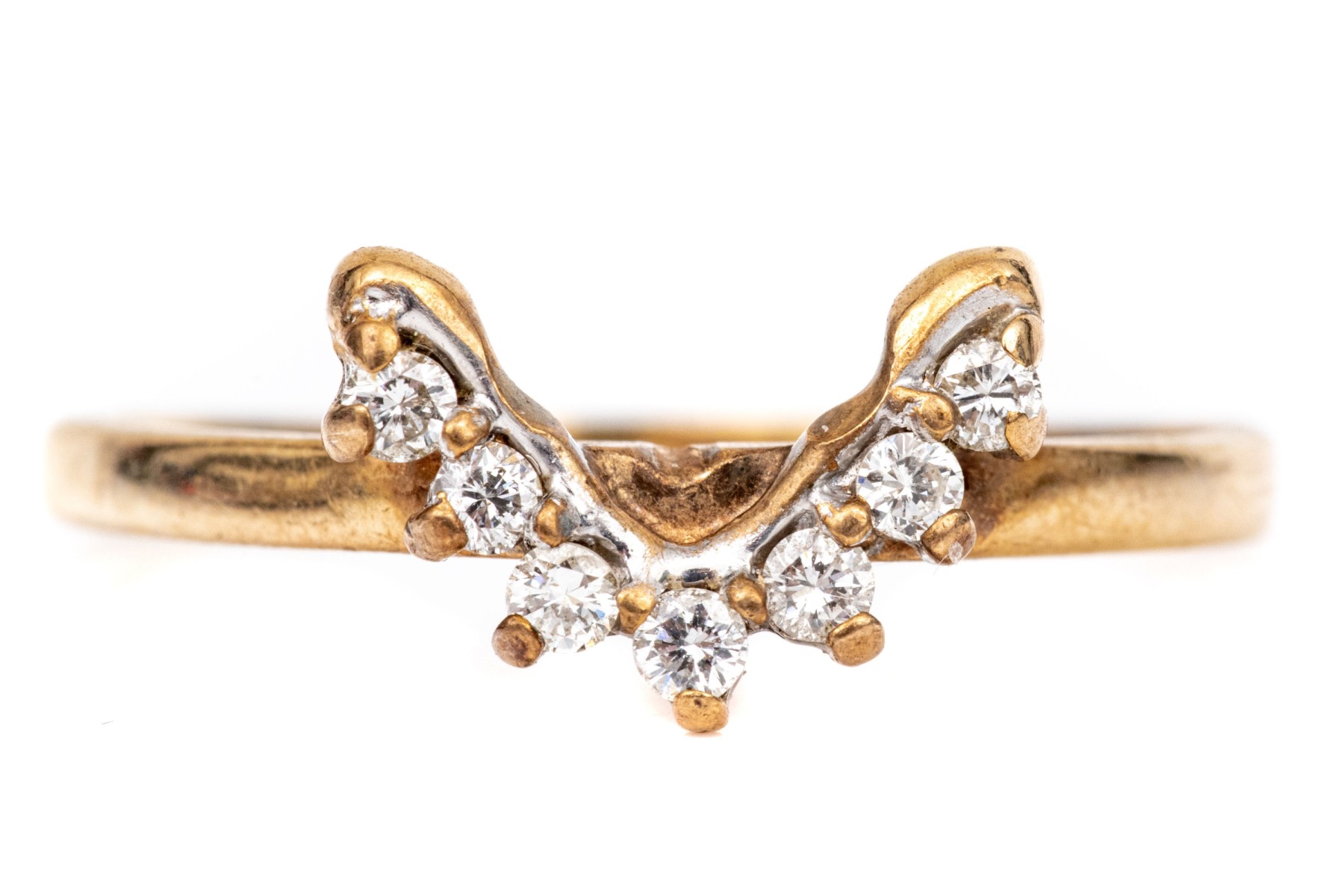 14k yellow gold deeply curved prong set diamond band ring, app. 0.07 TCW, size 8.25