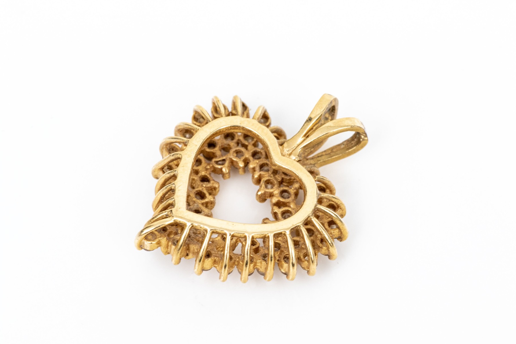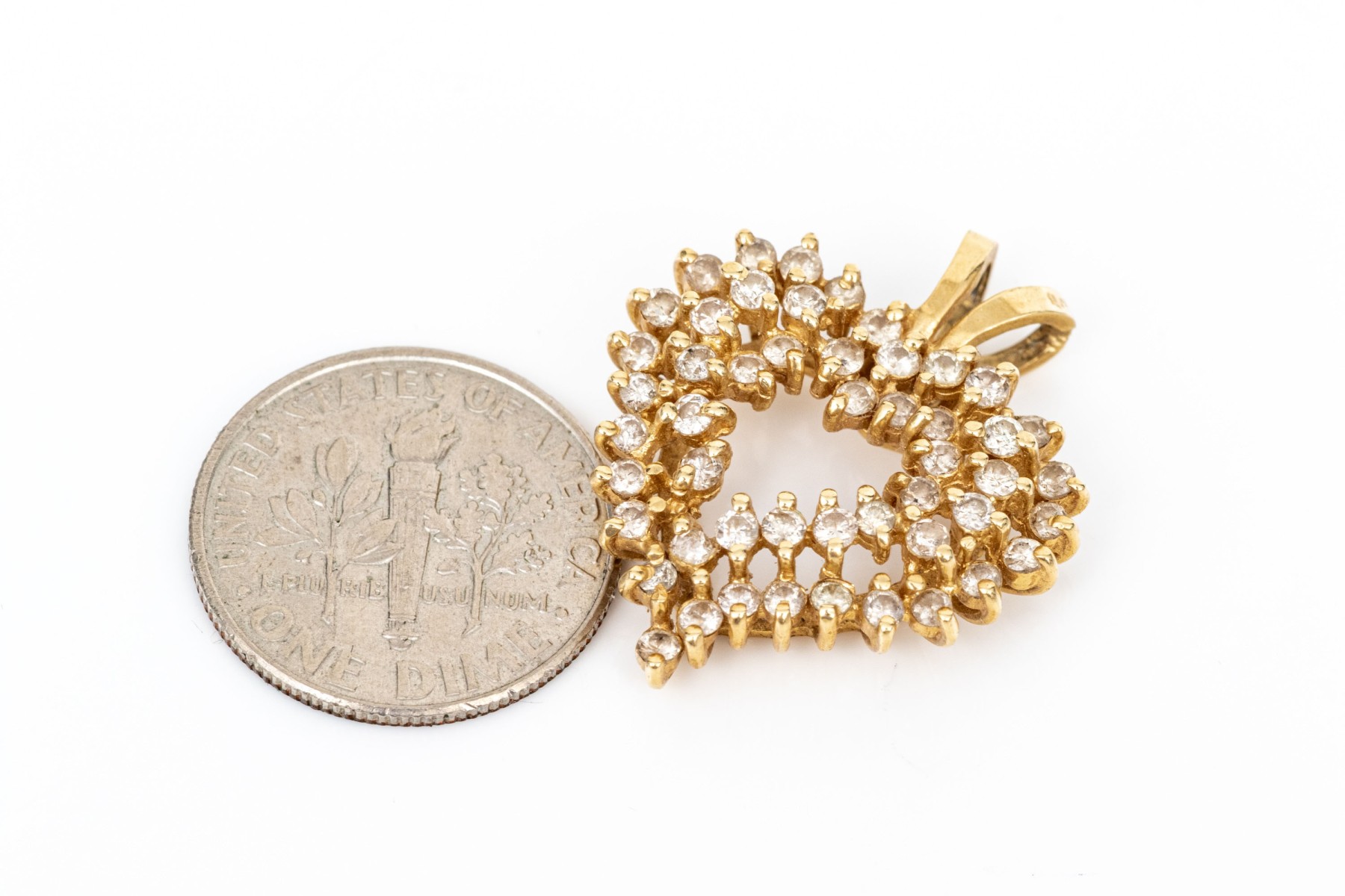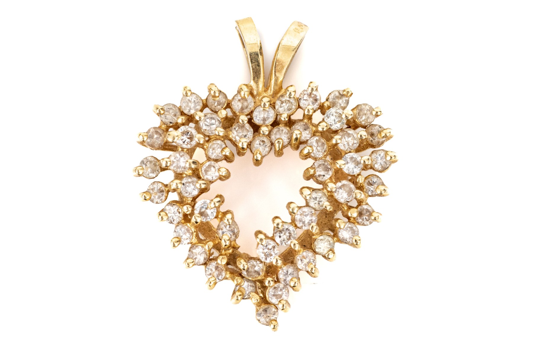14k yellow gold diamond set open heart cluster pendant, app. 0.55 TCW