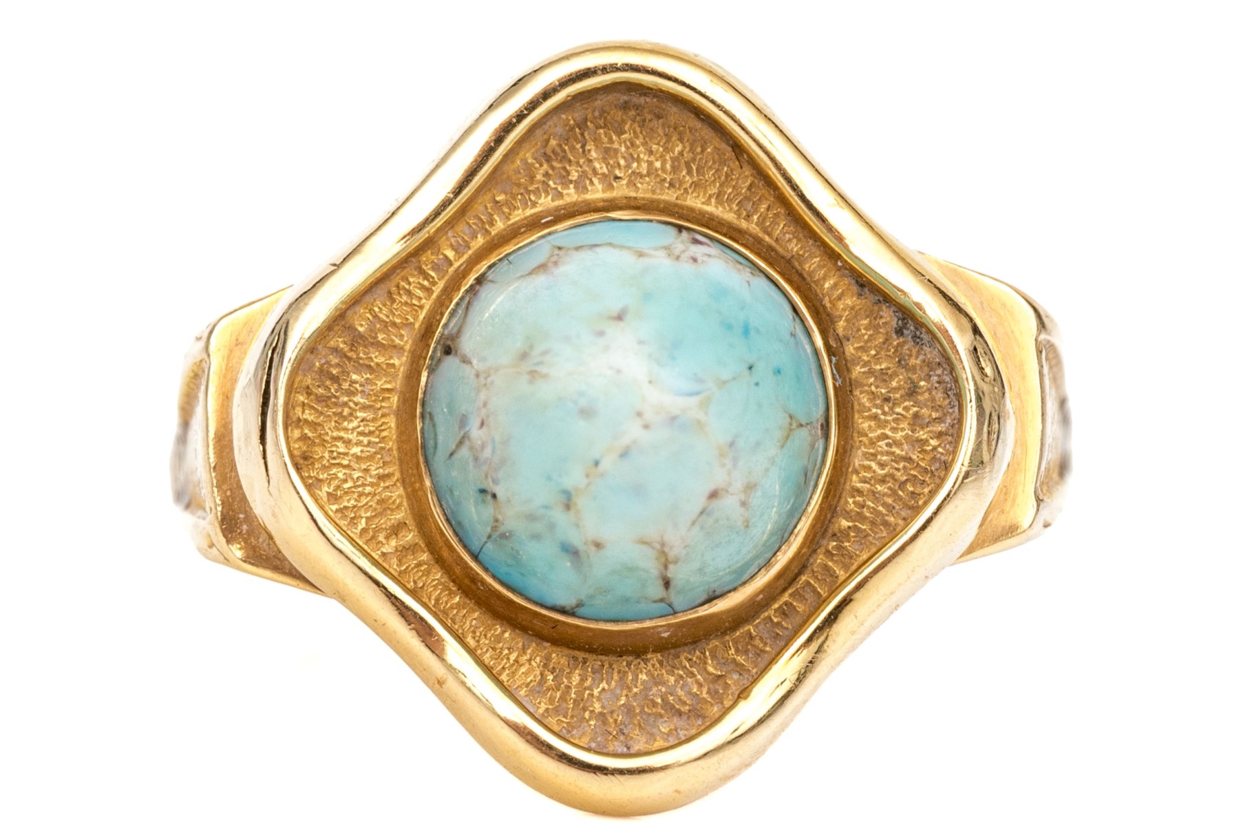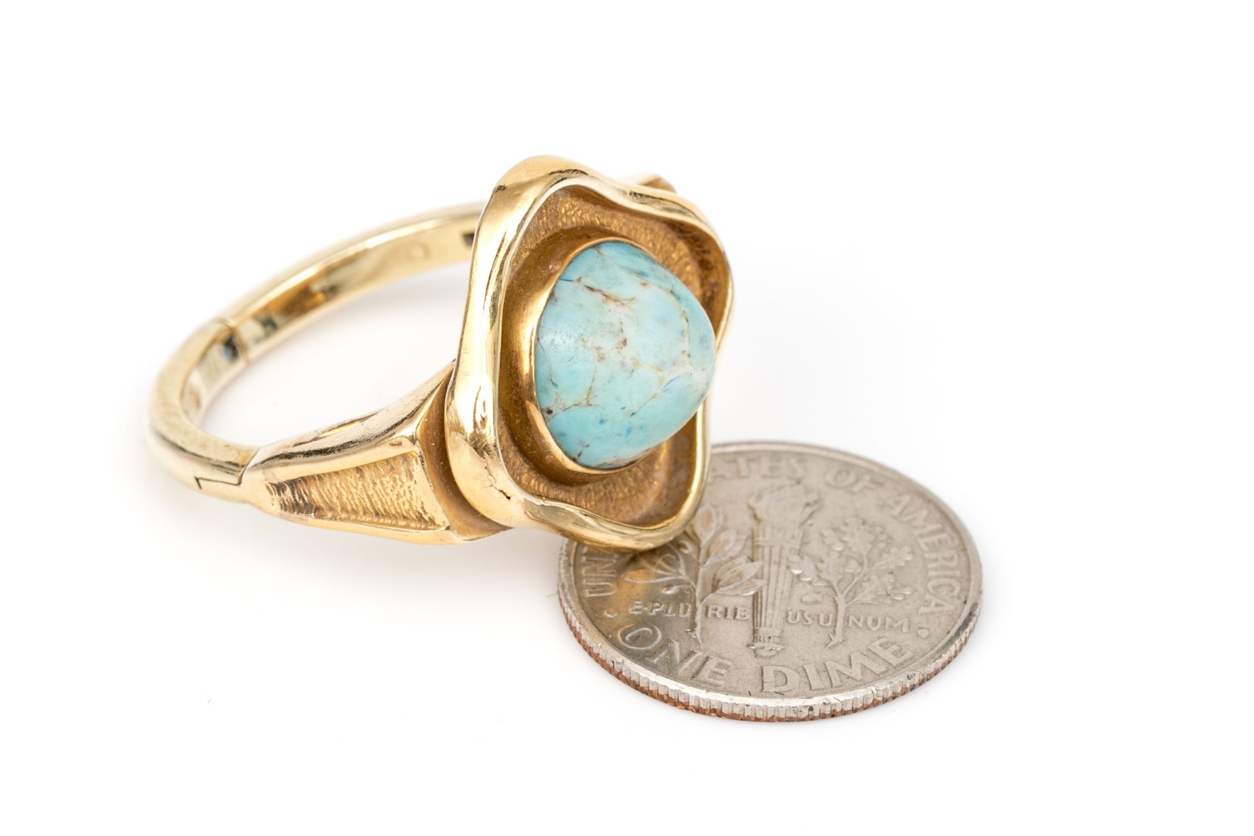 14k yellow gold fabulous contemporary amazonite quatrefoil motif ring, size 7.75+ with fingermate