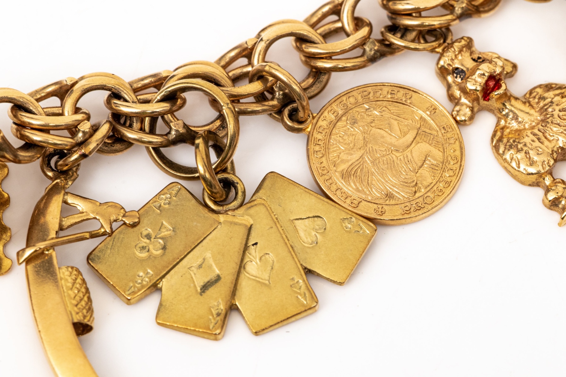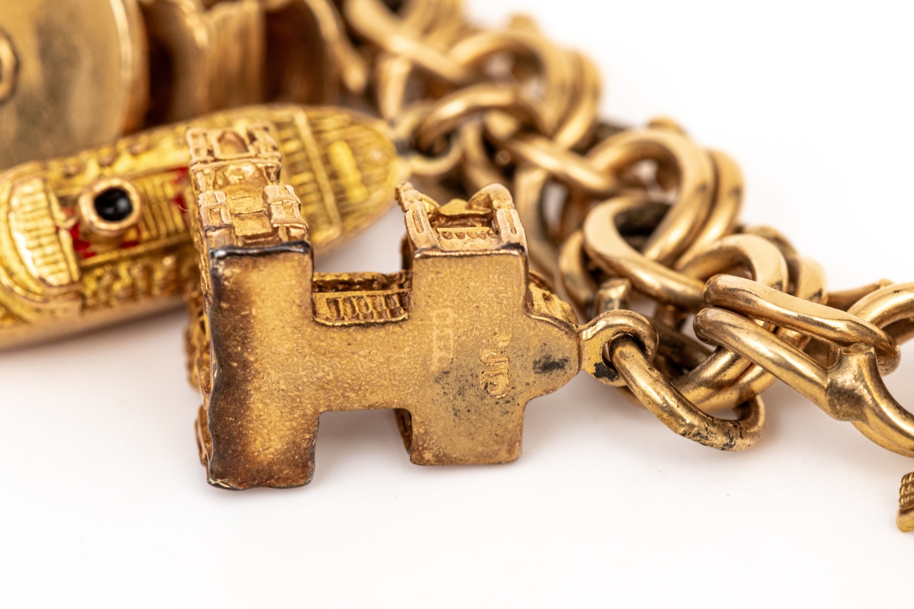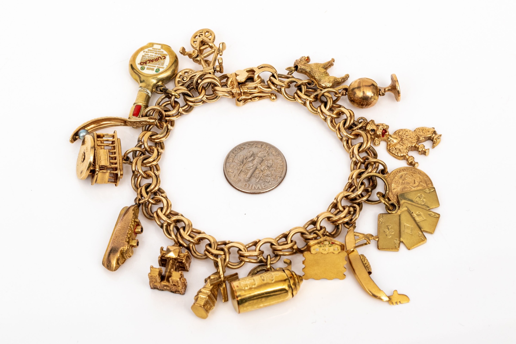 14k Yellow Gold Fabulous Vintage Travel Motif Charm Bracelet, With 14k, 10k And 9k Assorted Charms #448902. Black Rock Galleries provides high end estate liquidation services through online estate auctions and a 50,000 sq ft designer showroom. estate liquidator, estate sale, online auction, antiques, fine art, liquidation, clean outs, auction, consignment, interior design, fine jewelry, collectibles, appraisals, estate appraisals, estate services, decor, furniture, furniture consignment, antique center, consignment shop. We offer appraisal services and specialize in fine art, jewelry, antiques and decorative arts. Sell with us. Black Rock Galleries is the tri-state's largest estate liquidator serving New England and the greater New York City area. We are the trusted source for expert appraisals, auction services, estate sales, and consignments. Black Rock Galleries is the east coast's largest and most trusted estate liquidator, with locations in Connecticut, greater Boston, MA and Raleigh, NC, Fairfield, Southport, Apex, TX. We are the best source for expert appraisals, auction services, estate sales and consignments. We have served thousands of families and estates with compassion, professionalism and expertise. BRG works with attorneys, executors, realtors and families to bring the greatest return on personal and estate property in the current market. Our unique combination of services make us the easy choice to get the job done in a timely and stress-free manner. We are with you from the initial consultation to the final clean out. Our house-built online auction software platform offers clients a dynamic approach to liquidating their personal property. This venue is most successful in bringing the best return with the least amount of disruption for our clients. See our services page for a complete description of this offering. 14k Yellow Gold Fabulous Vintage Travel Motif Charm Bracelet, With 14k, 10k And 9k Assorted Charms #448902