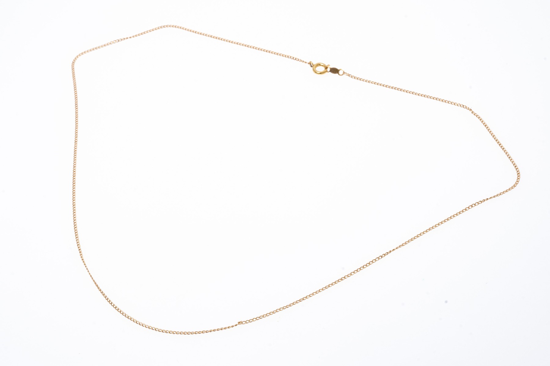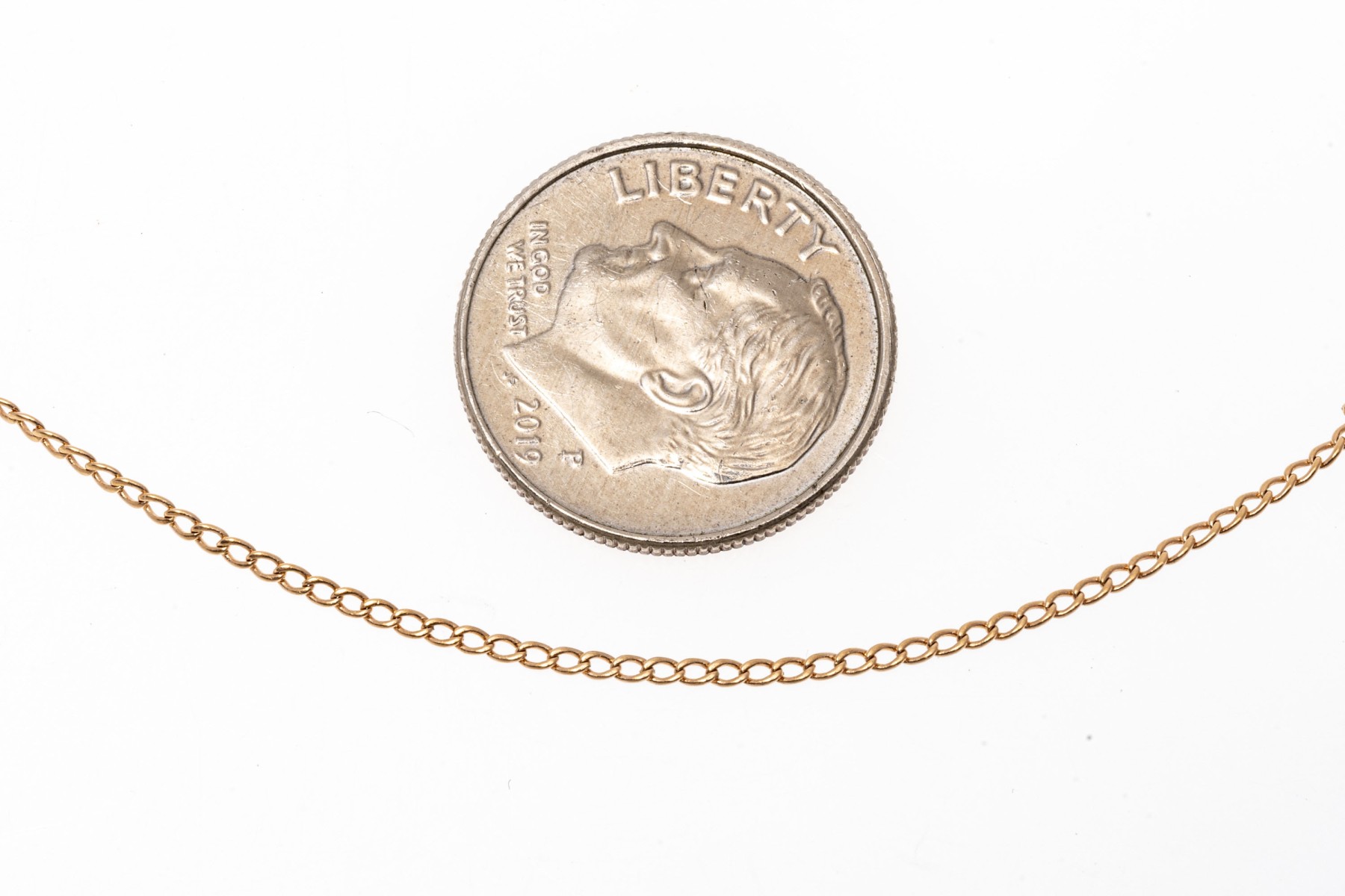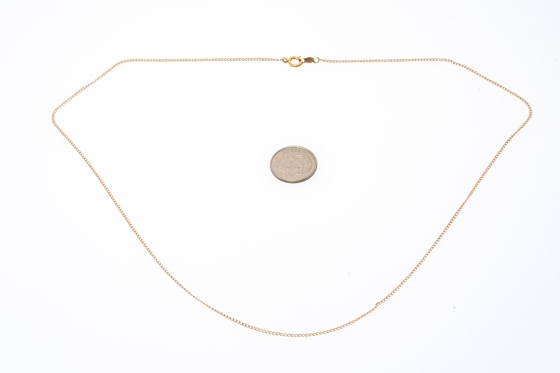14k yellow gold fine curb style chain, finished with a gold filled spring style clasp