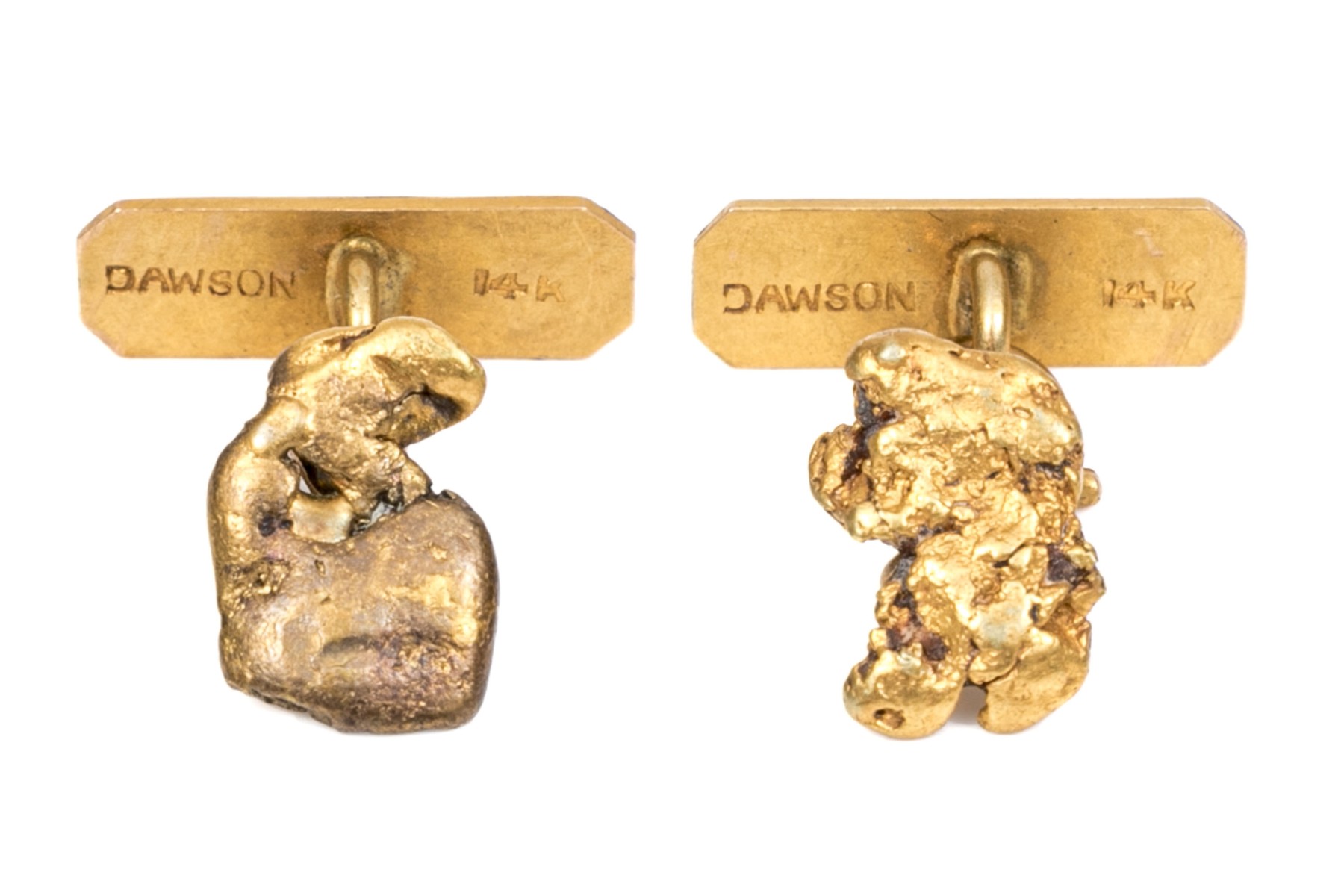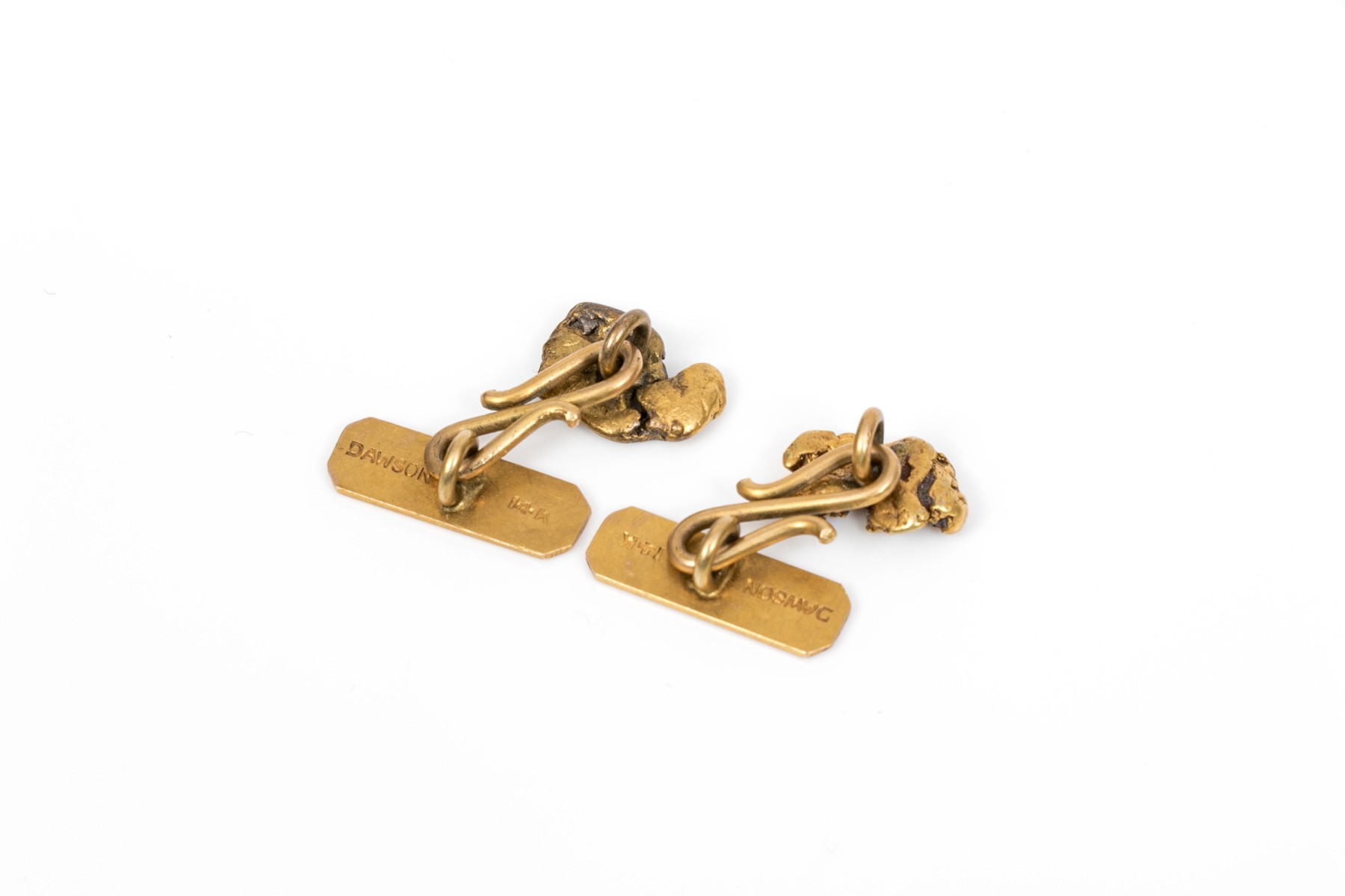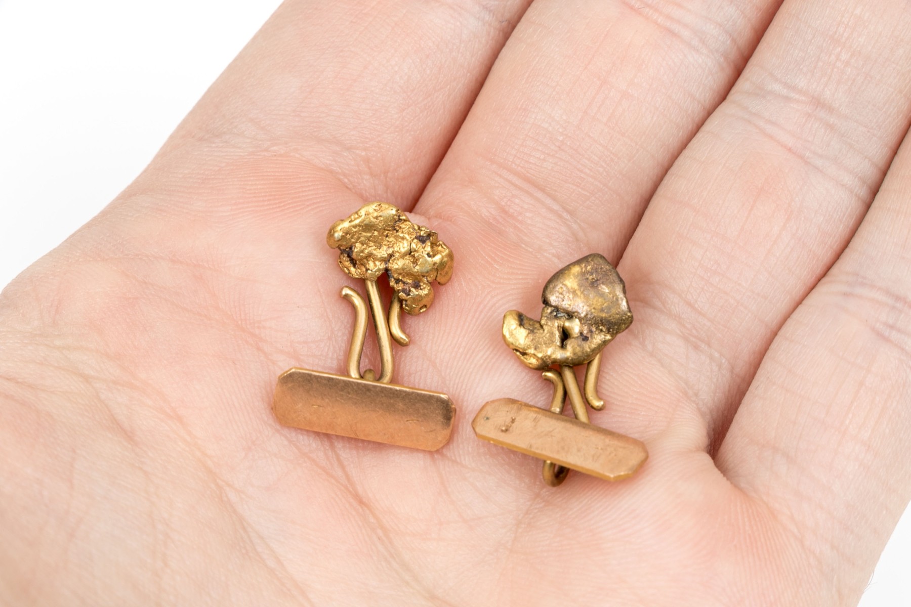 14k yellow gold free form nugget style loose link cufflinks, small tops
