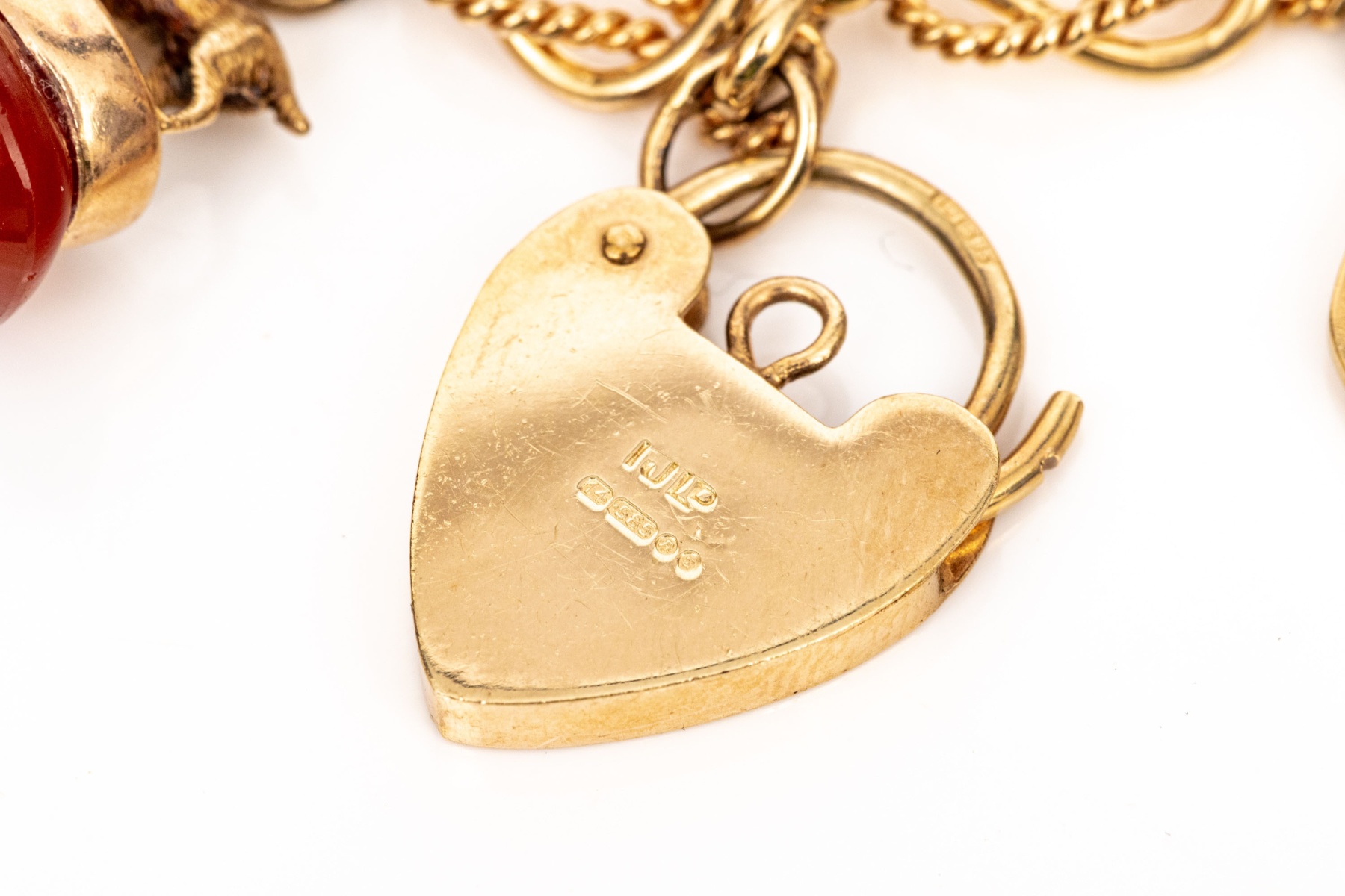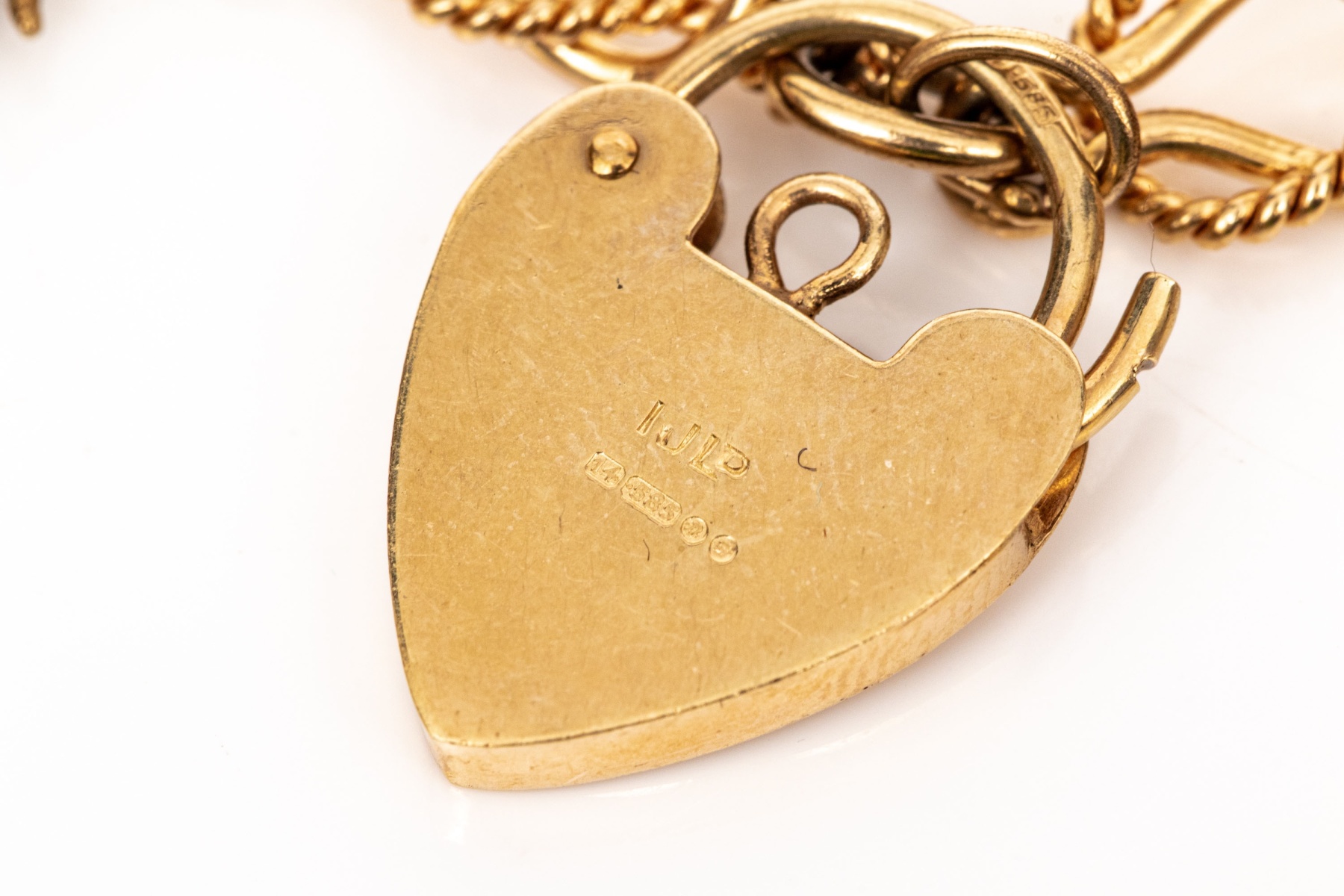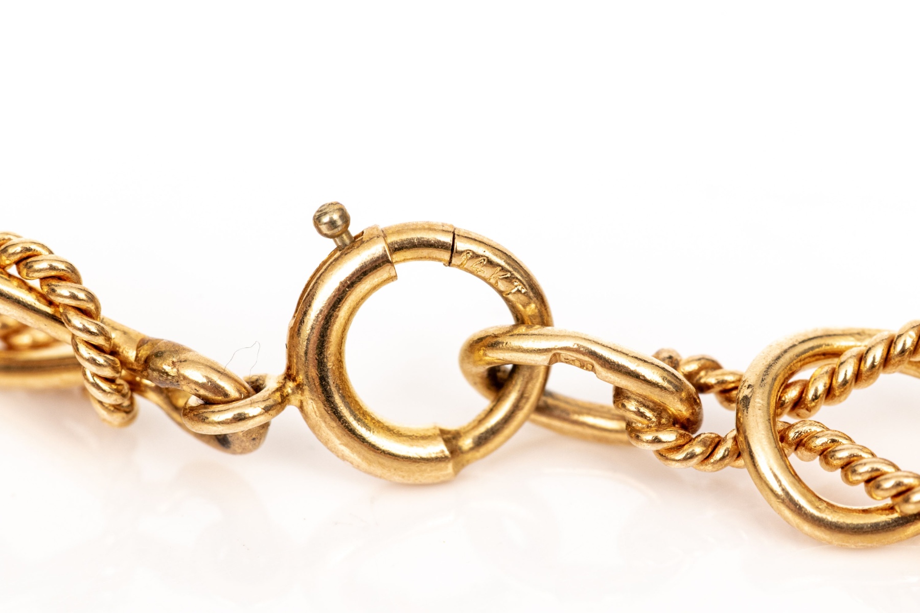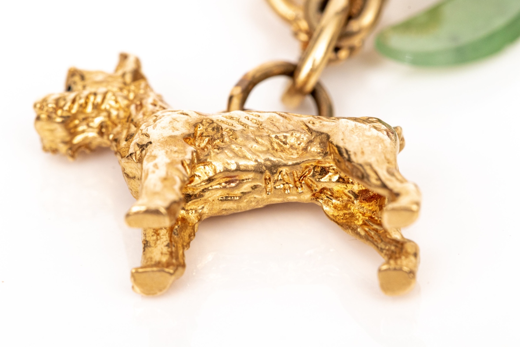 14k yellow gold fun rope motif vintage charm bracelet, with 14k and 9k assorted charms, finished with a spring ring style clasp