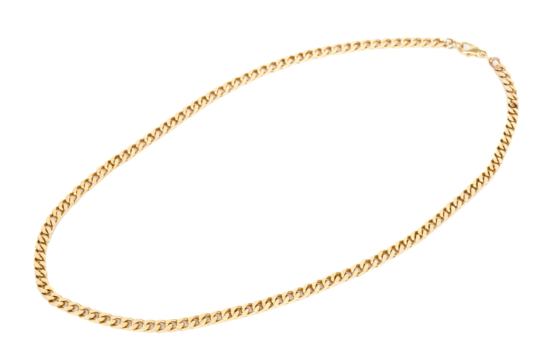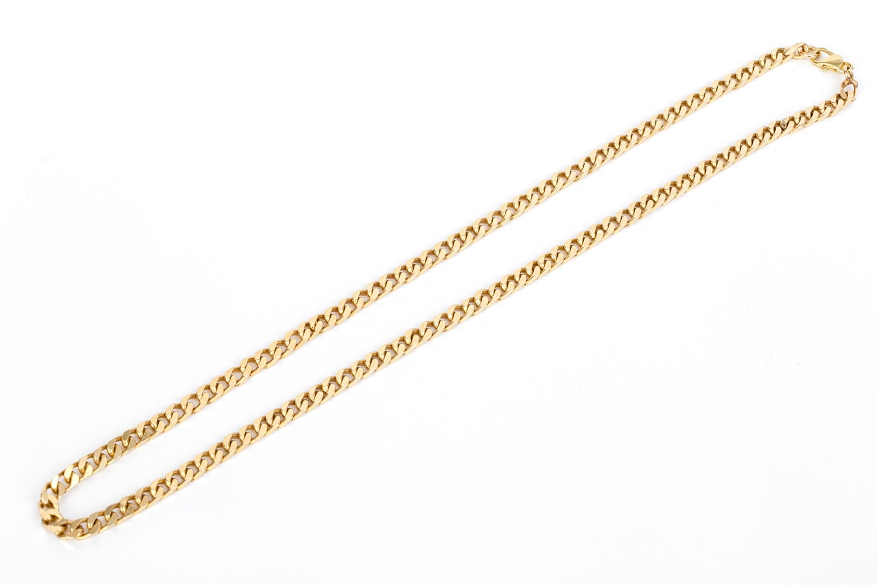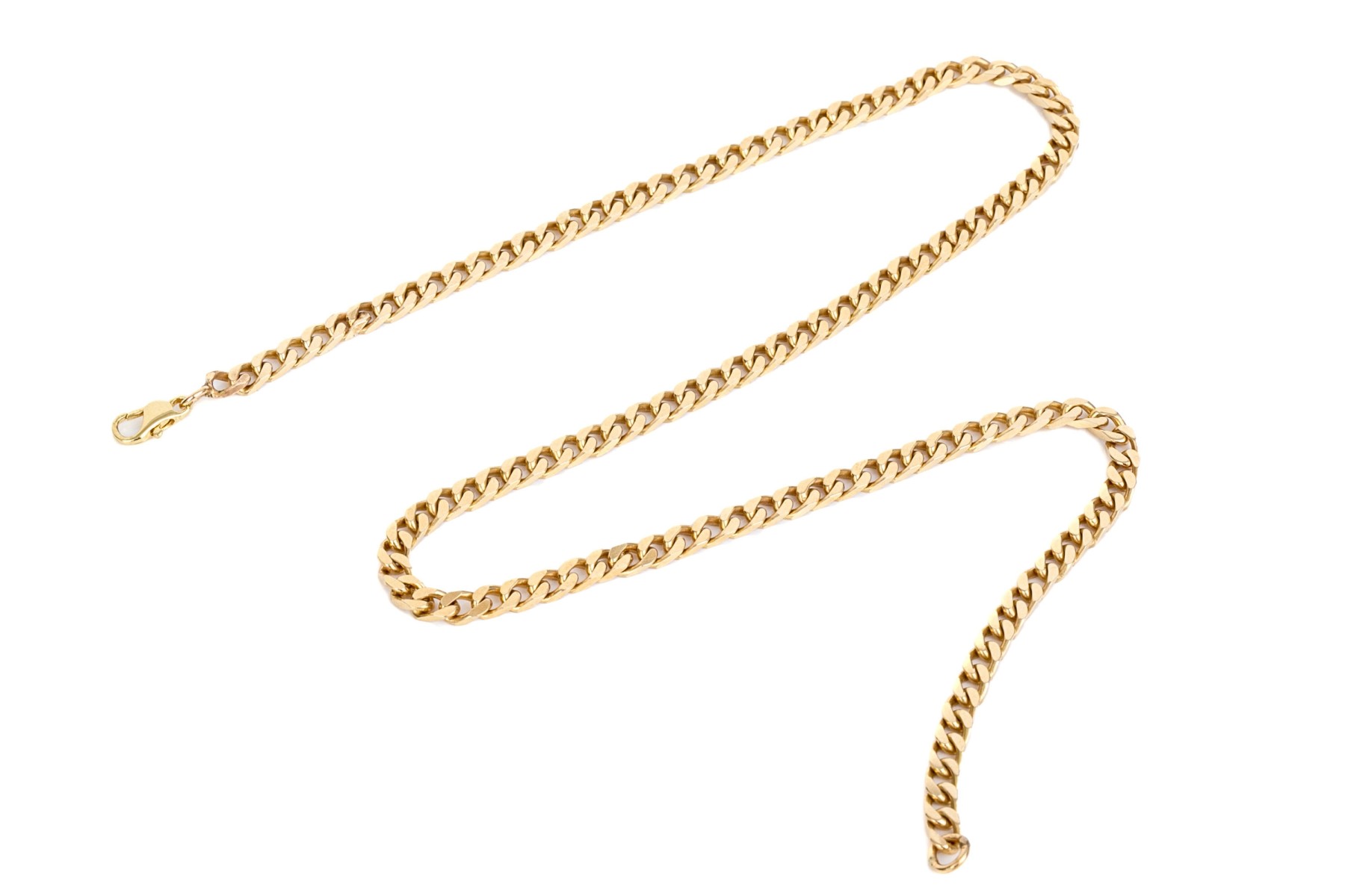 14k yellow gold handsome heavy curb Link chain, finished with a lobster claw style clasp