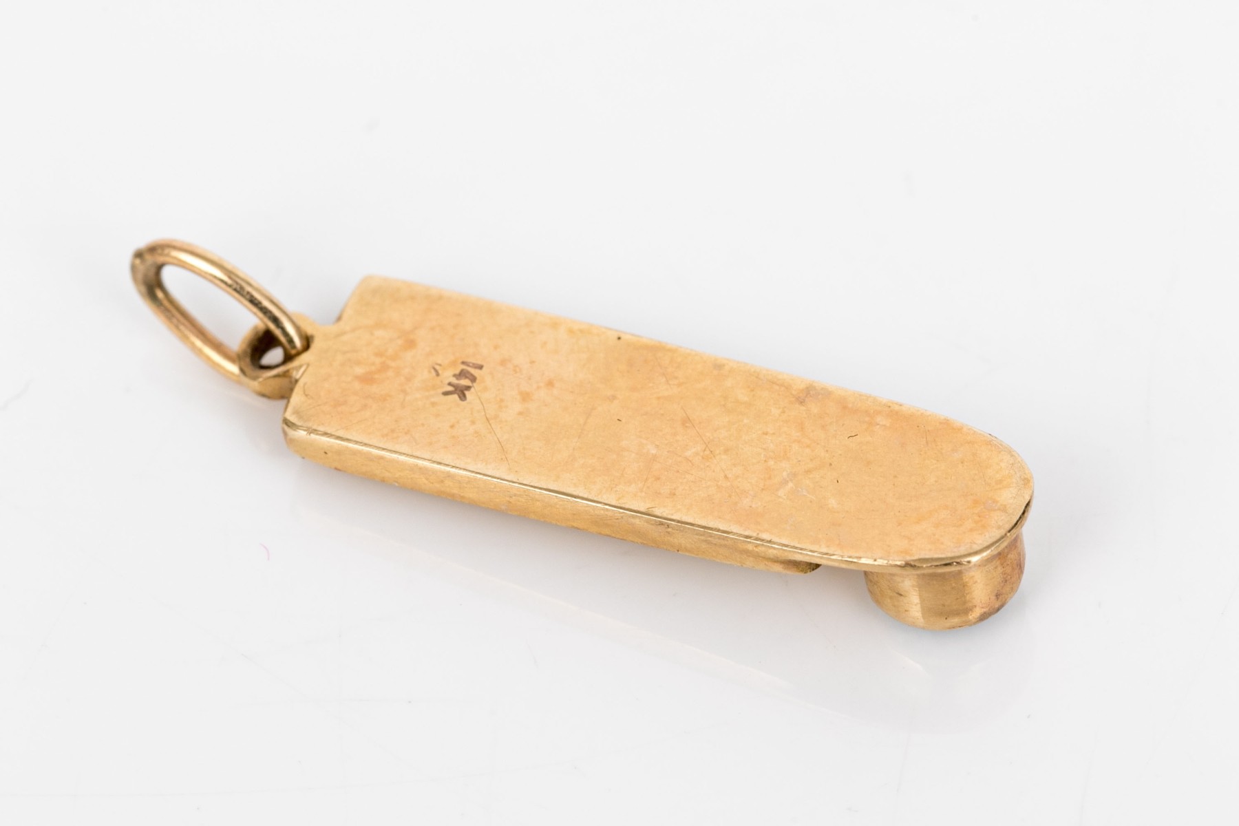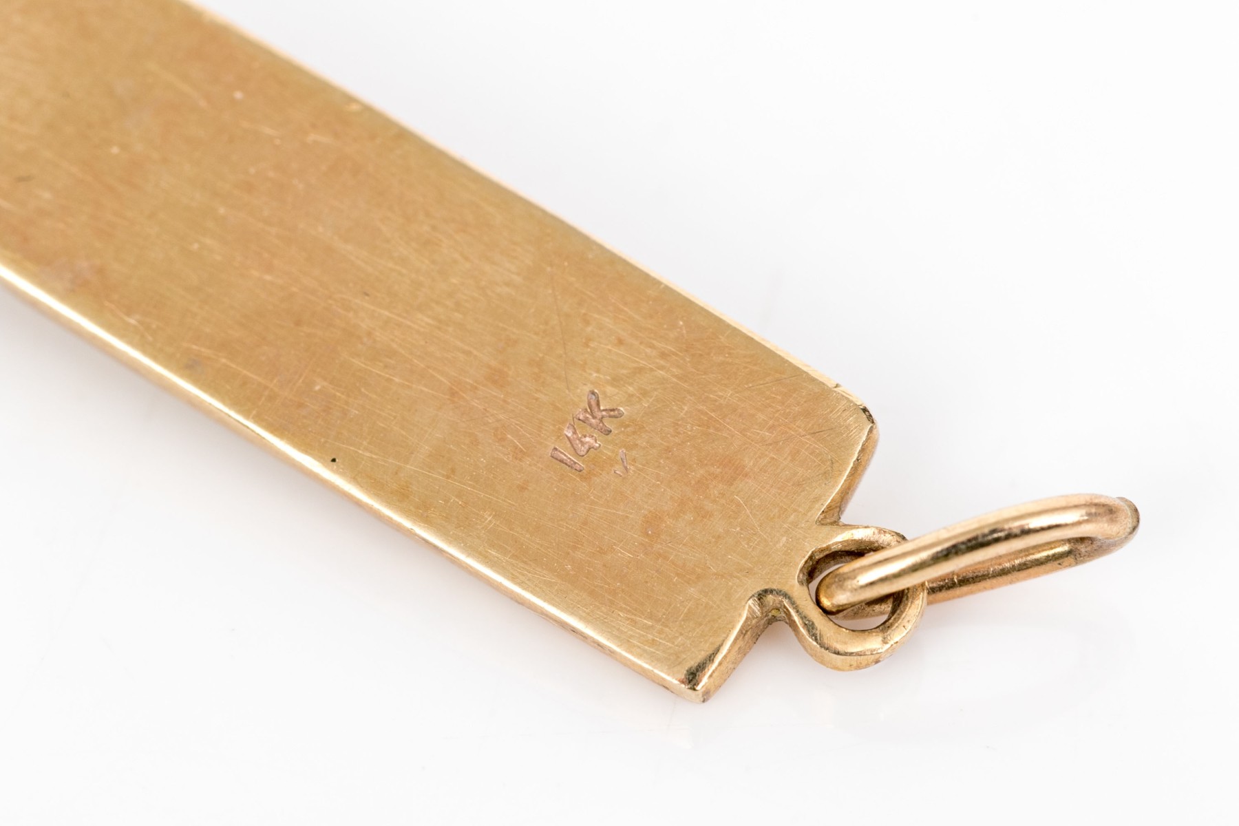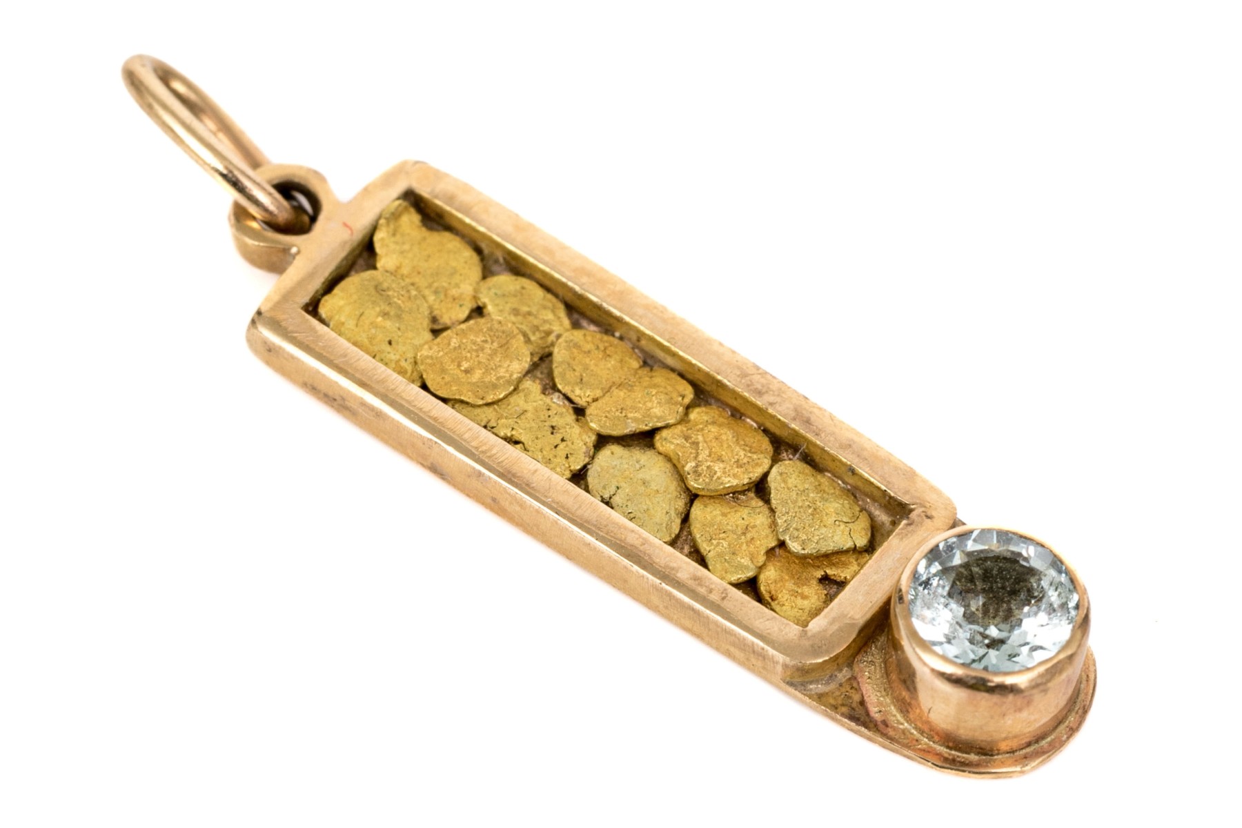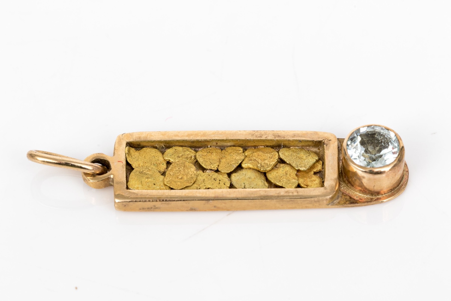 14k yellow gold handsome pebbled bar and prasiolite set pendant, app. 0.14 CTS, bezel set and finished with a jump ring style bale