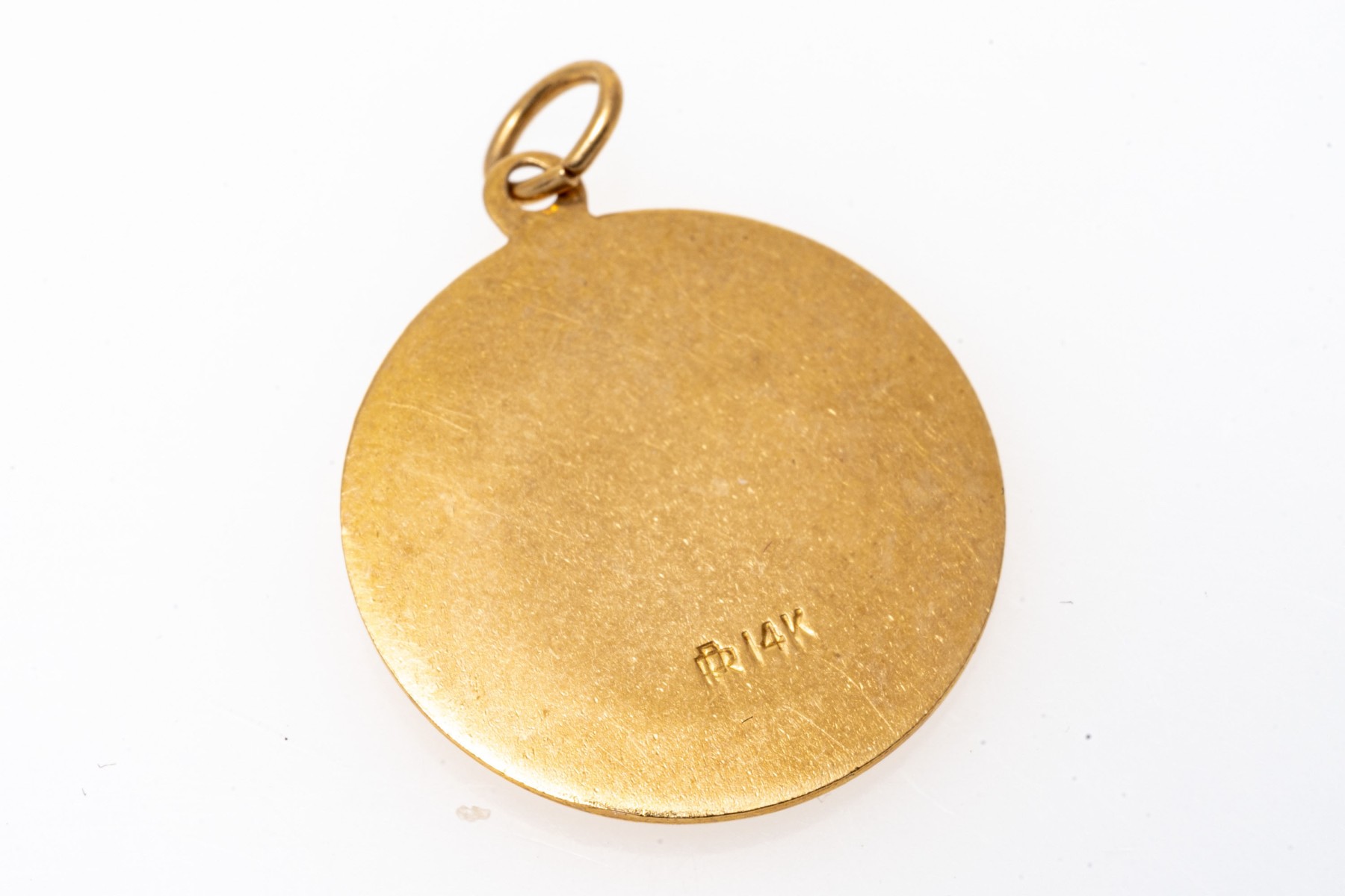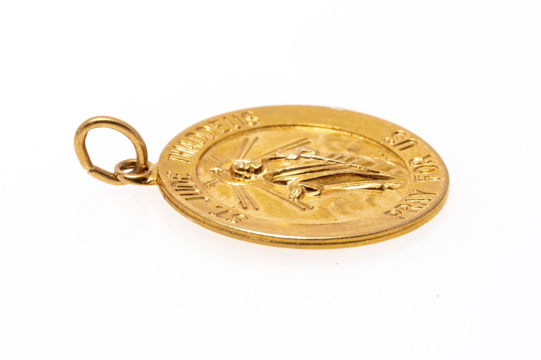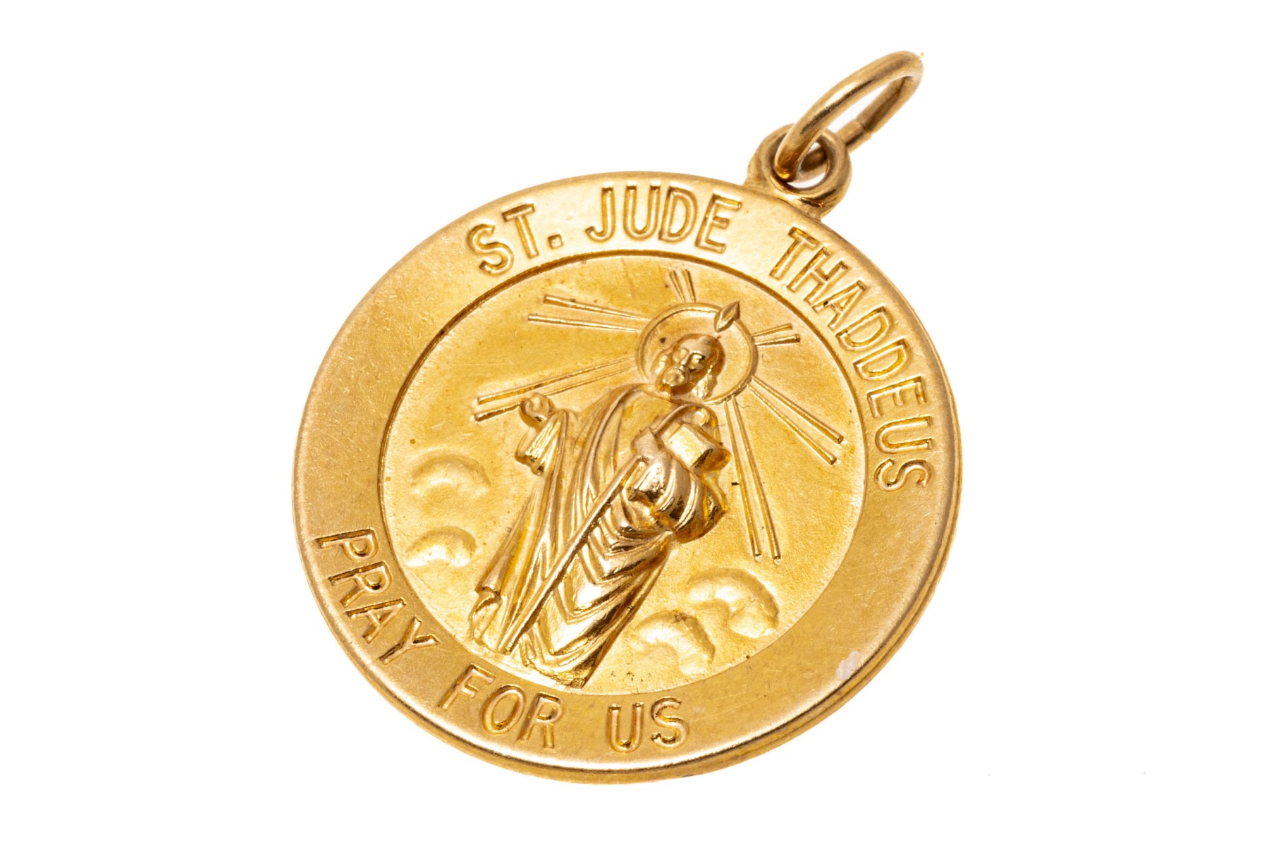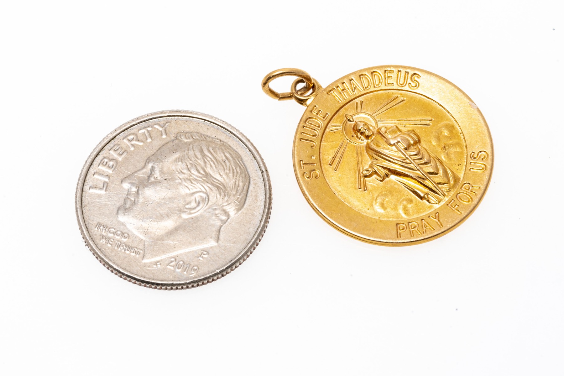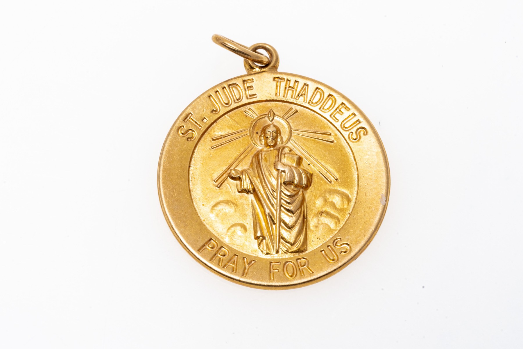 14k yellow gold handsome round St. Jude Thaddeus medal, finished with a solid bale