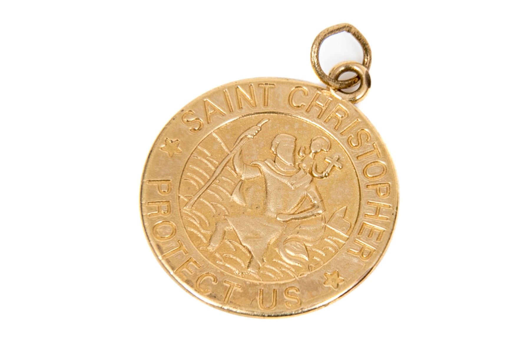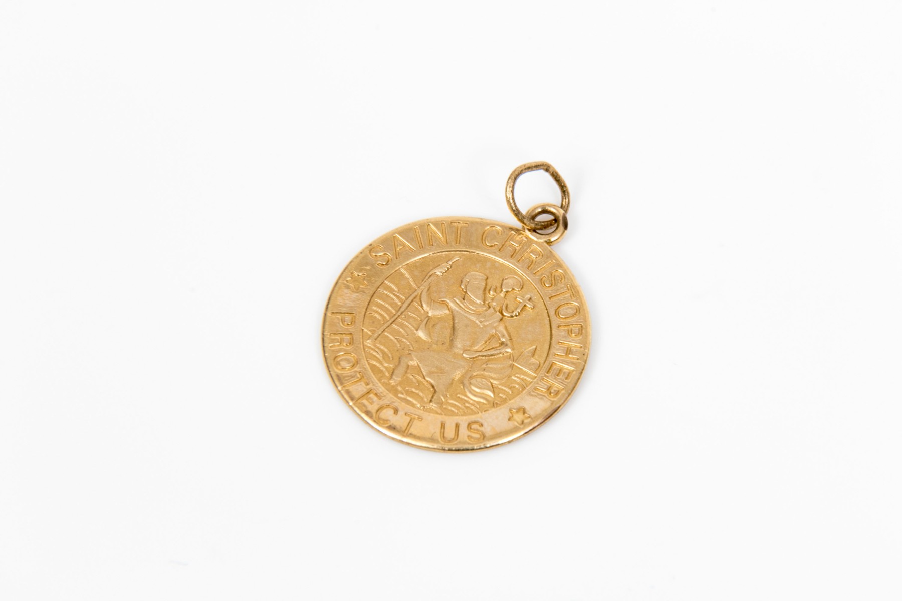 14k yellow gold handsome St.Christopher pendant, finished with a solid bale