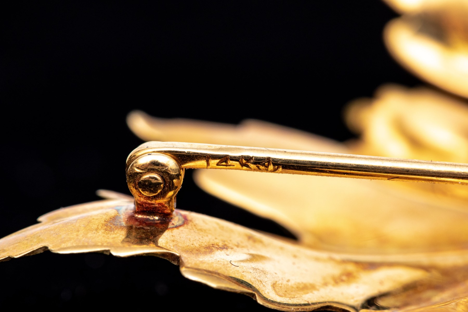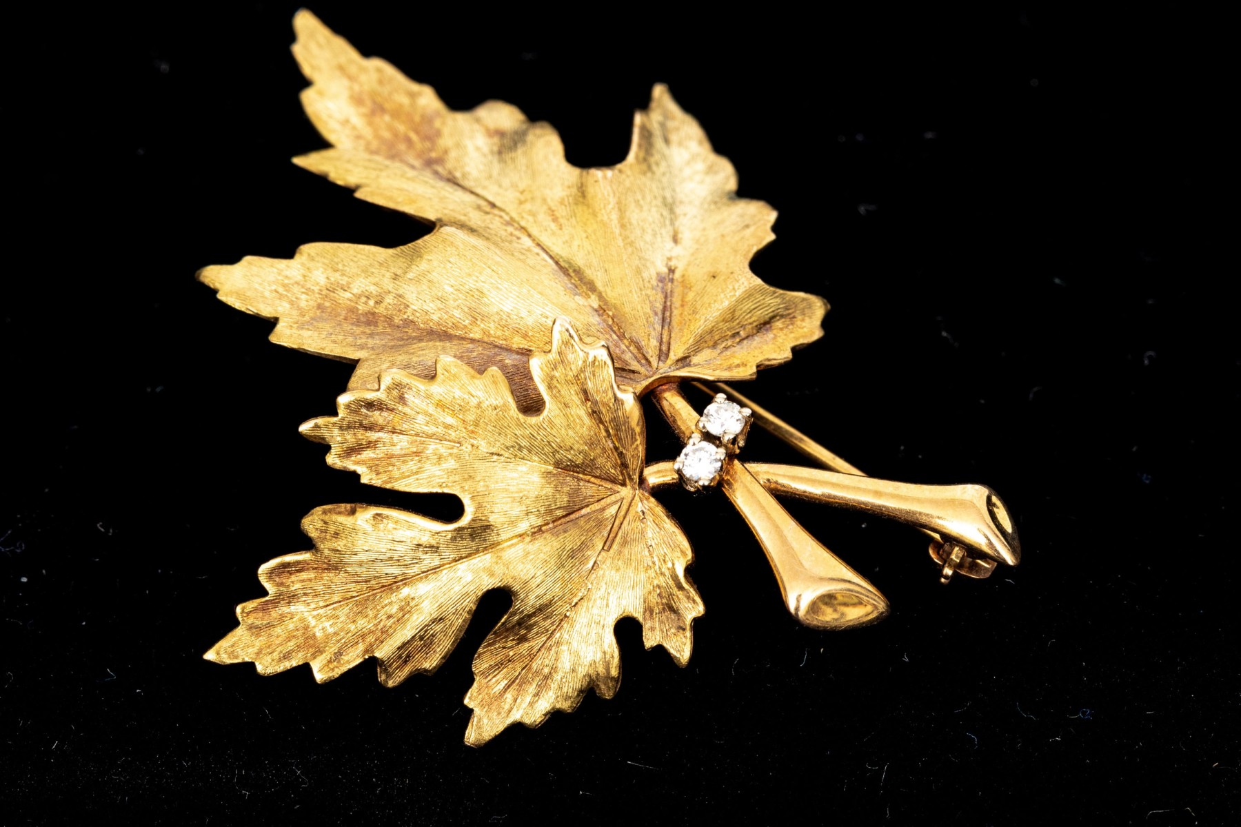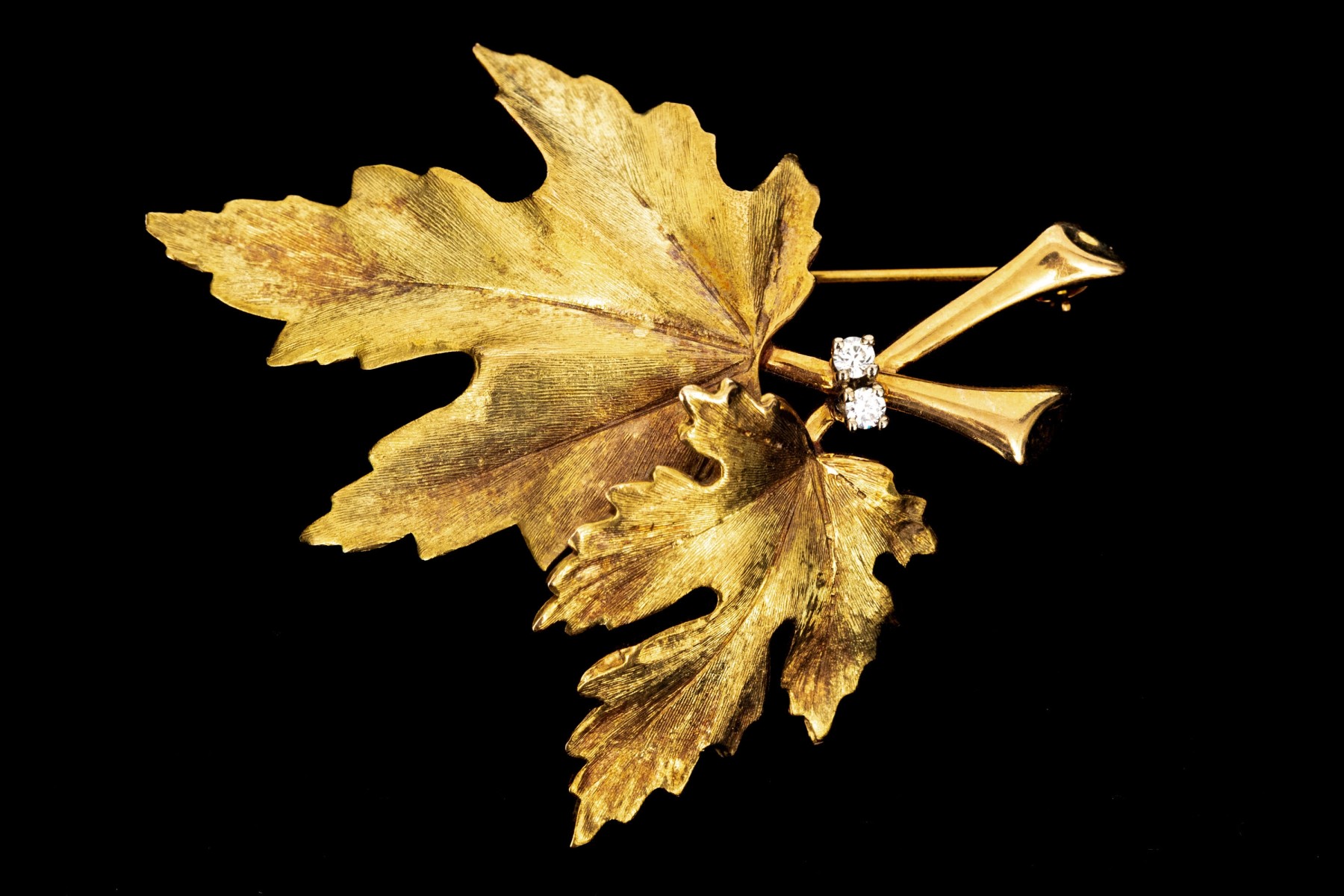 14k Yellow Gold Handsome Vintage Double Leaf Brooch, Diamond Set, App. 0.04 TCW #259814. Black Rock Galleries provides high end estate liquidation services through online estate auctions and a 50,000 sq ft designer showroom. estate liquidator, estate sale, online auction, antiques, fine art, liquidation, clean outs, auction, consignment, interior design, fine jewelry, collectibles, appraisals, estate appraisals, estate services, decor, furniture, furniture consignment, antique center, consignment shop. We offer appraisal services and specialize in fine art, jewelry, antiques and decorative arts. Sell with us. Black Rock Galleries is the tri-state's largest estate liquidator serving New England and the greater New York City area. We are the trusted source for expert appraisals, auction services, estate sales, and consignments. Black Rock Galleries is the east coast's largest and most trusted estate liquidator, with locations in Connecticut, greater Boston, MA and Raleigh, NC, Fairfield, Southport, Apex, TX. We are the best source for expert appraisals, auction services, estate sales and consignments. We have served thousands of families and estates with compassion, professionalism and expertise. BRG works with attorneys, executors, realtors and families to bring the greatest return on personal and estate property in the current market. Our unique combination of services make us the easy choice to get the job done in a timely and stress-free manner. We are with you from the initial consultation to the final clean out. Our house-built online auction software platform offers clients a dynamic approach to liquidating their personal property. This venue is most successful in bringing the best return with the least amount of disruption for our clients. See our services page for a complete description of this offering. 14k Yellow Gold Handsome Vintage Double Leaf Brooch, Diamond Set, App. 0.04 TCW #259814