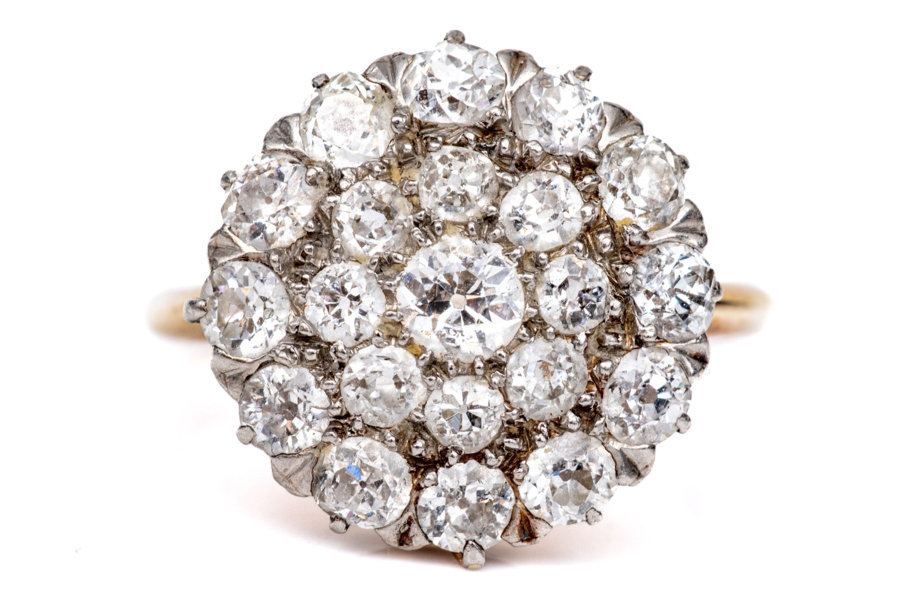 14k yellow gold impactful vintage round diamond cluster ring, app. 1.10 TCW, size 8-