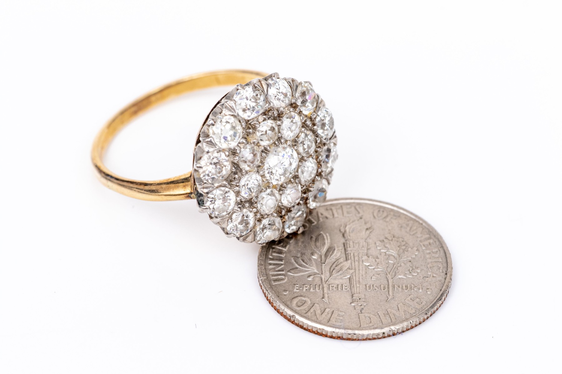 14k Yellow Gold Impactful Vintage Round Diamond Cluster Ring, App. 1.10 TCW, Size 8- #262005. Black Rock Galleries provides high end estate liquidation services through online estate auctions and a 50,000 sq ft designer showroom. estate liquidator, estate sale, online auction, antiques, fine art, liquidation, clean outs, auction, consignment, interior design, fine jewelry, collectibles, appraisals, estate appraisals, estate services, decor, furniture, furniture consignment, antique center, consignment shop. We offer appraisal services and specialize in fine art, jewelry, antiques and decorative arts. Sell with us. Black Rock Galleries is the tri-state's largest estate liquidator serving New England and the greater New York City area. We are the trusted source for expert appraisals, auction services, estate sales, and consignments. Black Rock Galleries is the east coast's largest and most trusted estate liquidator, with locations in Connecticut, greater Boston, MA and Raleigh, NC, Fairfield, Southport, Apex, TX. We are the best source for expert appraisals, auction services, estate sales and consignments. We have served thousands of families and estates with compassion, professionalism and expertise. BRG works with attorneys, executors, realtors and families to bring the greatest return on personal and estate property in the current market. Our unique combination of services make us the easy choice to get the job done in a timely and stress-free manner. We are with you from the initial consultation to the final clean out. Our house-built online auction software platform offers clients a dynamic approach to liquidating their personal property. This venue is most successful in bringing the best return with the least amount of disruption for our clients. See our services page for a complete description of this offering. 14k Yellow Gold Impactful Vintage Round Diamond Cluster Ring, App. 1.10 TCW, Size 8- #262005