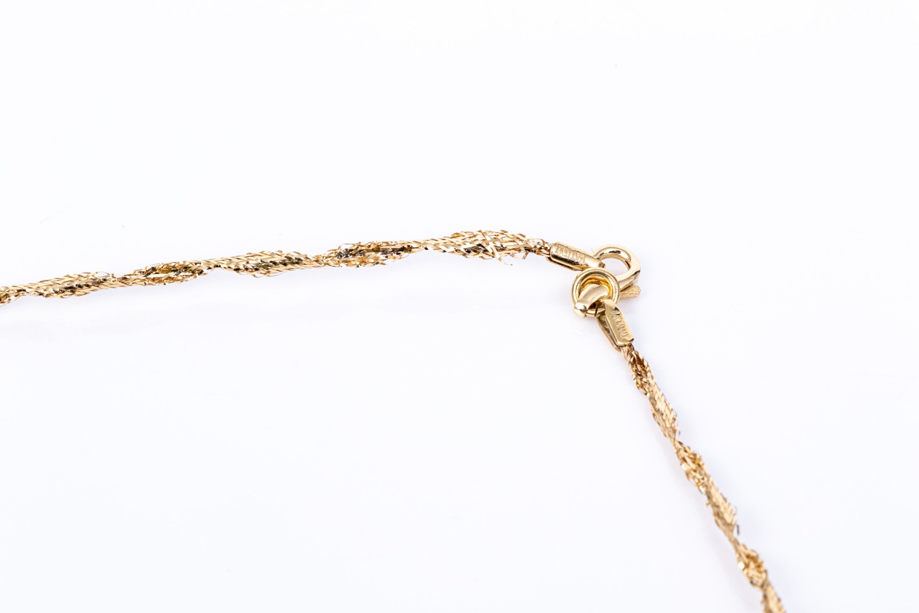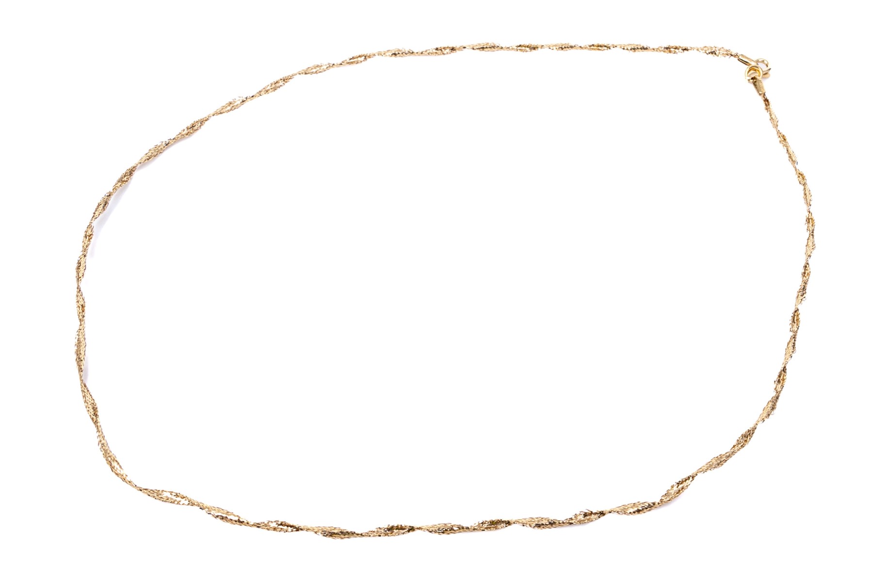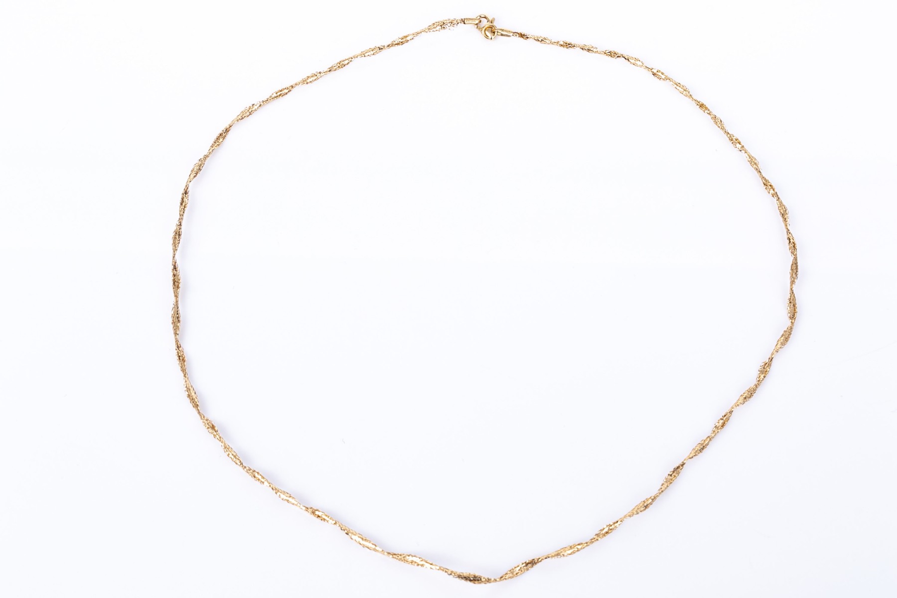 14k yellow gold lightweight twisted spun necklace, finished with a lobster claw style clasp, see conditions