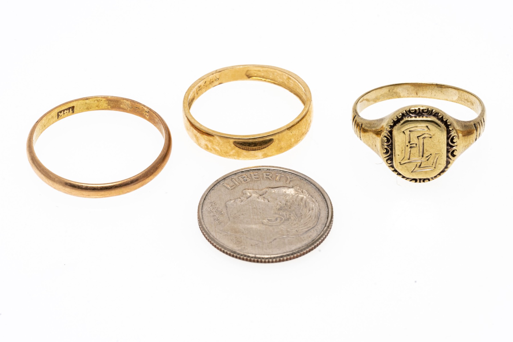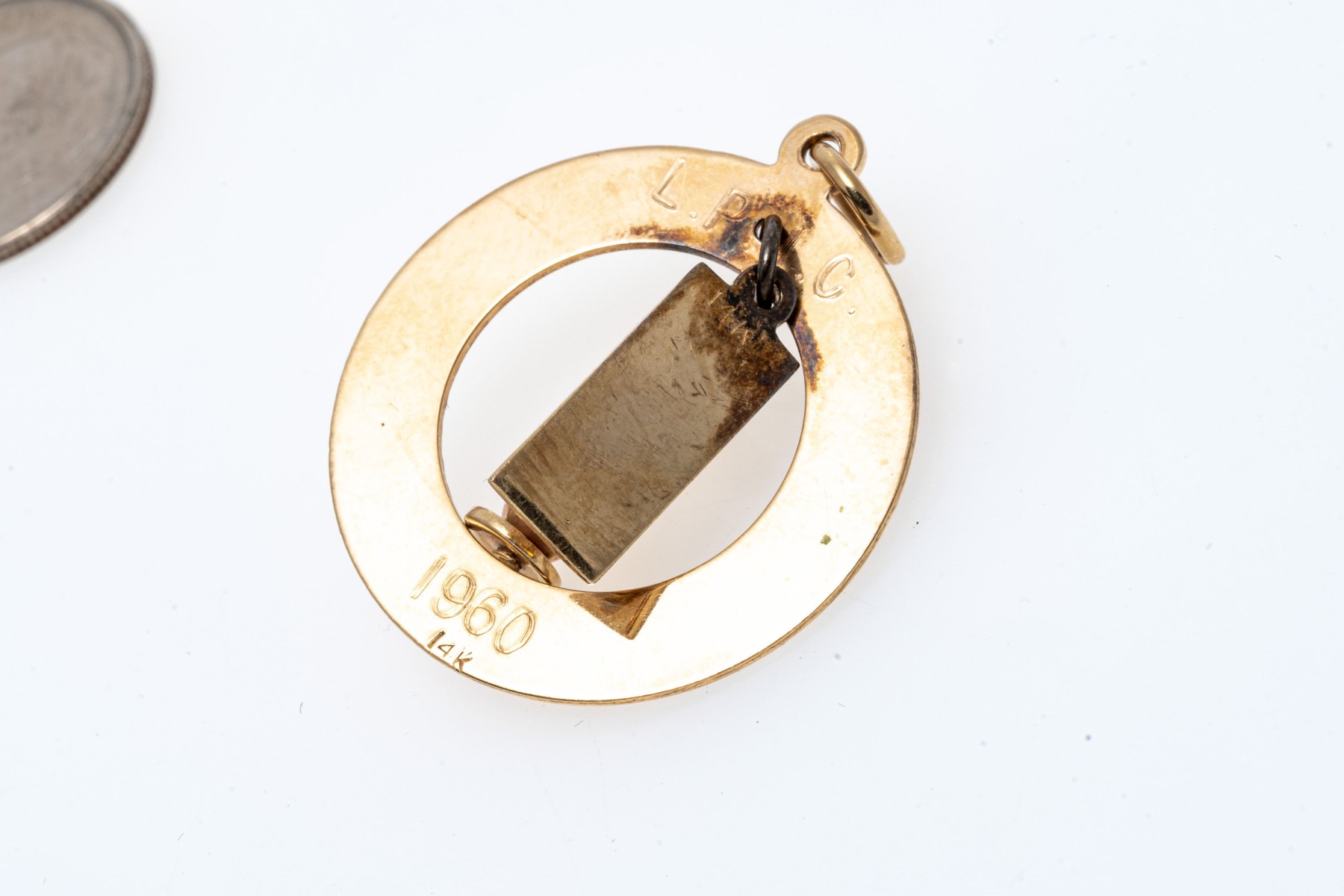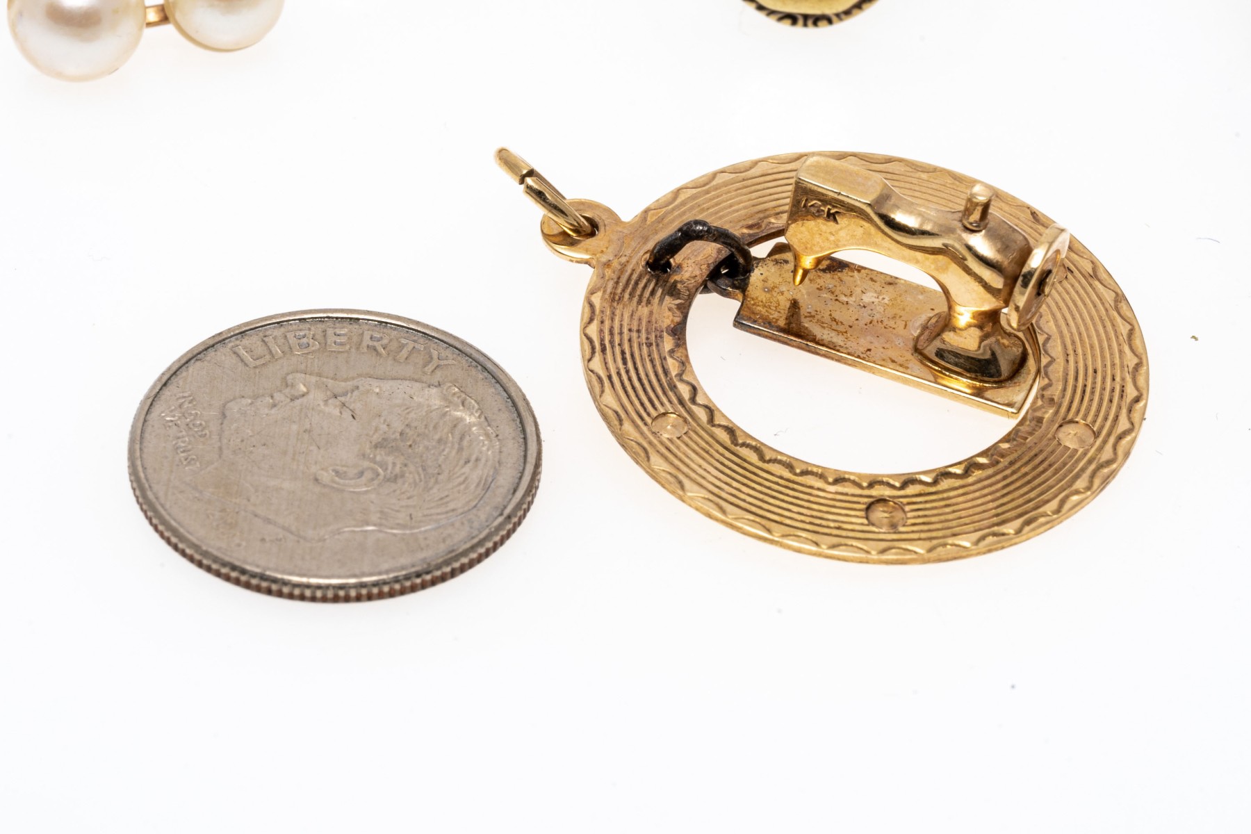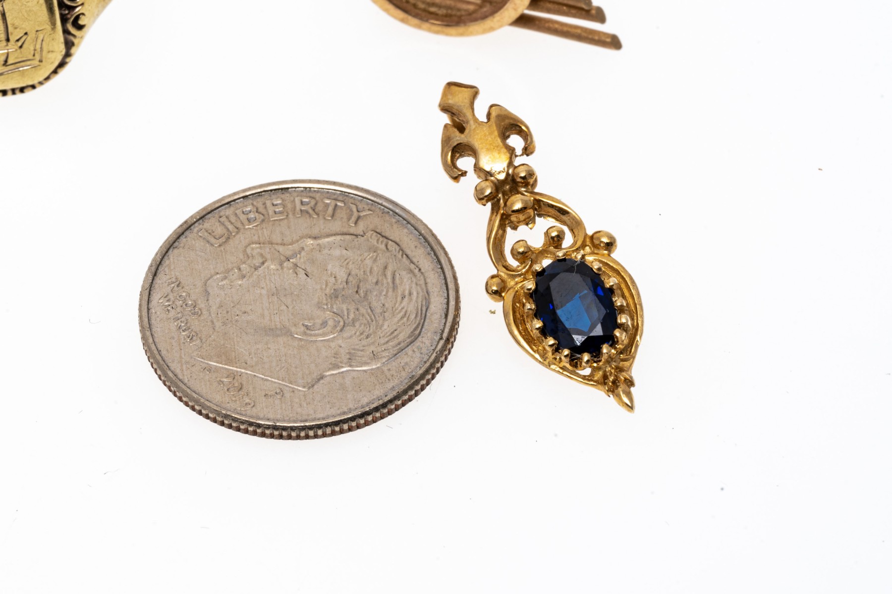 A lot of 14K gold. Rings, pendant, pin and earring singles.