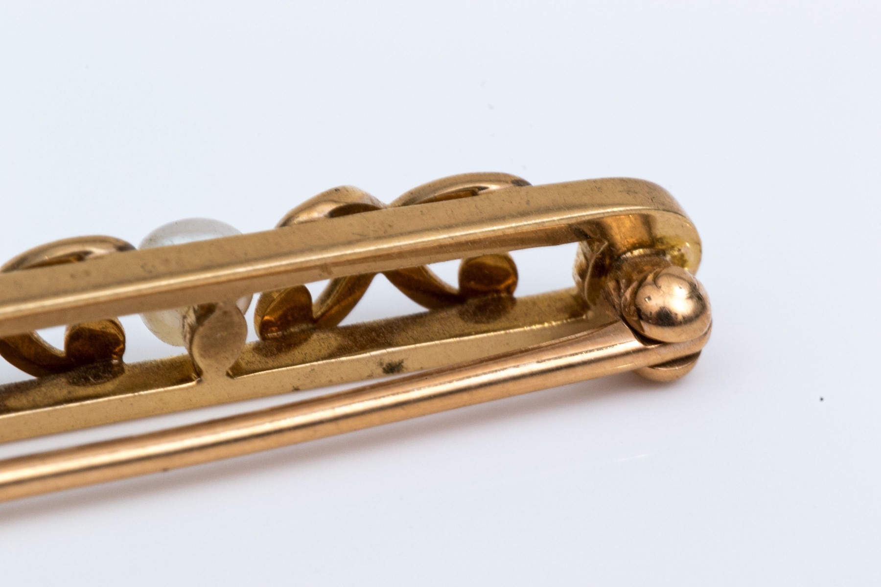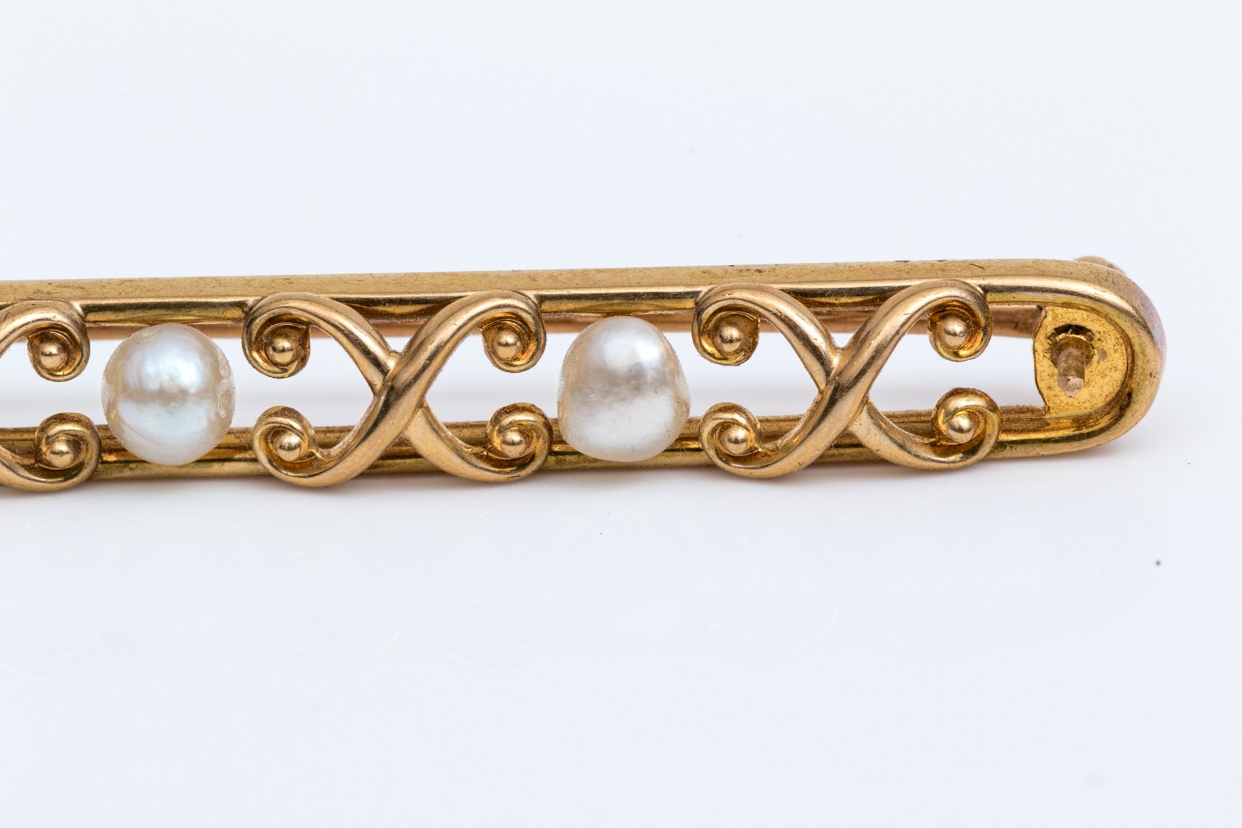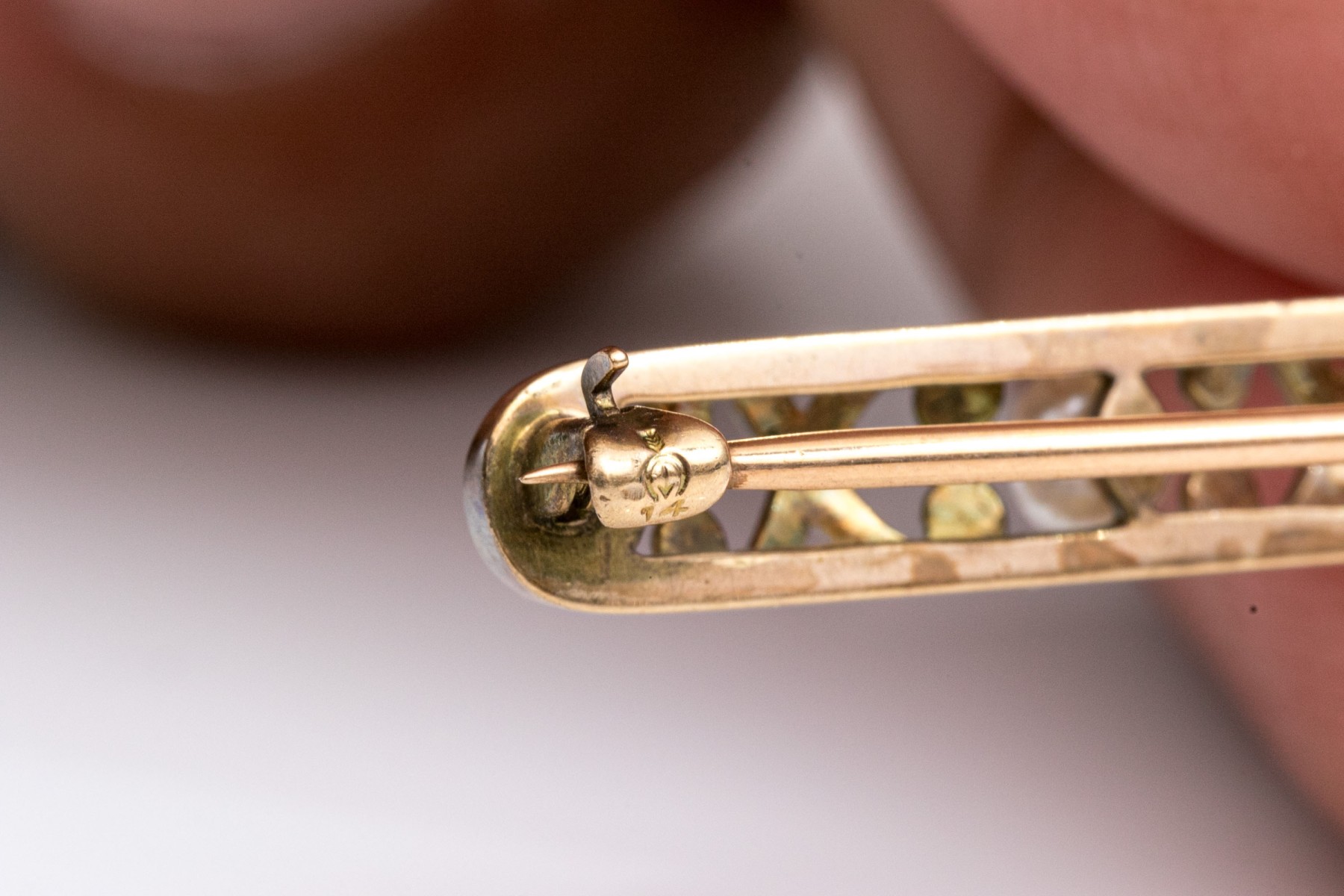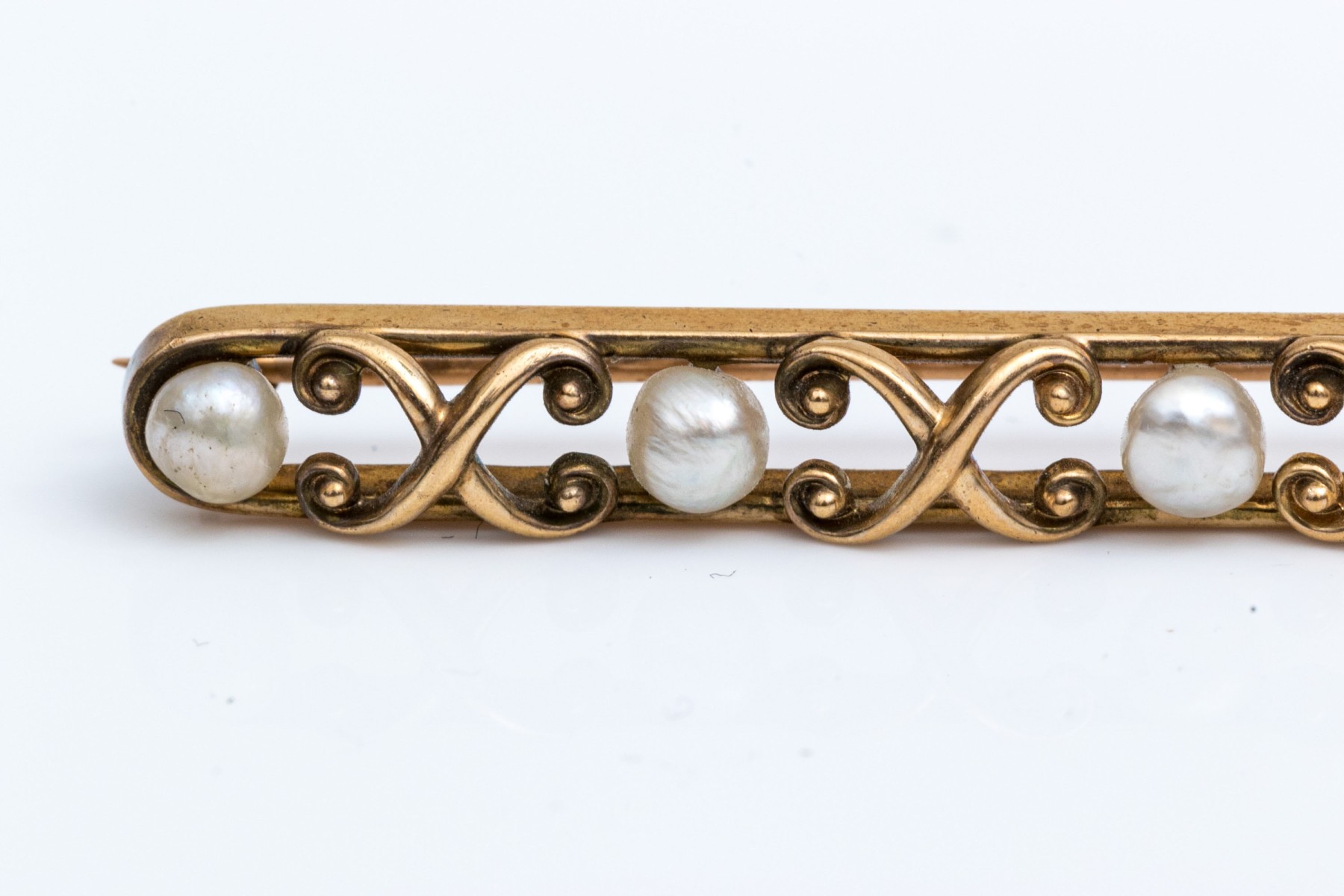 14k yellow gold lovely vintage cultured freshwater pearl and 'X" motif bar pin brooch