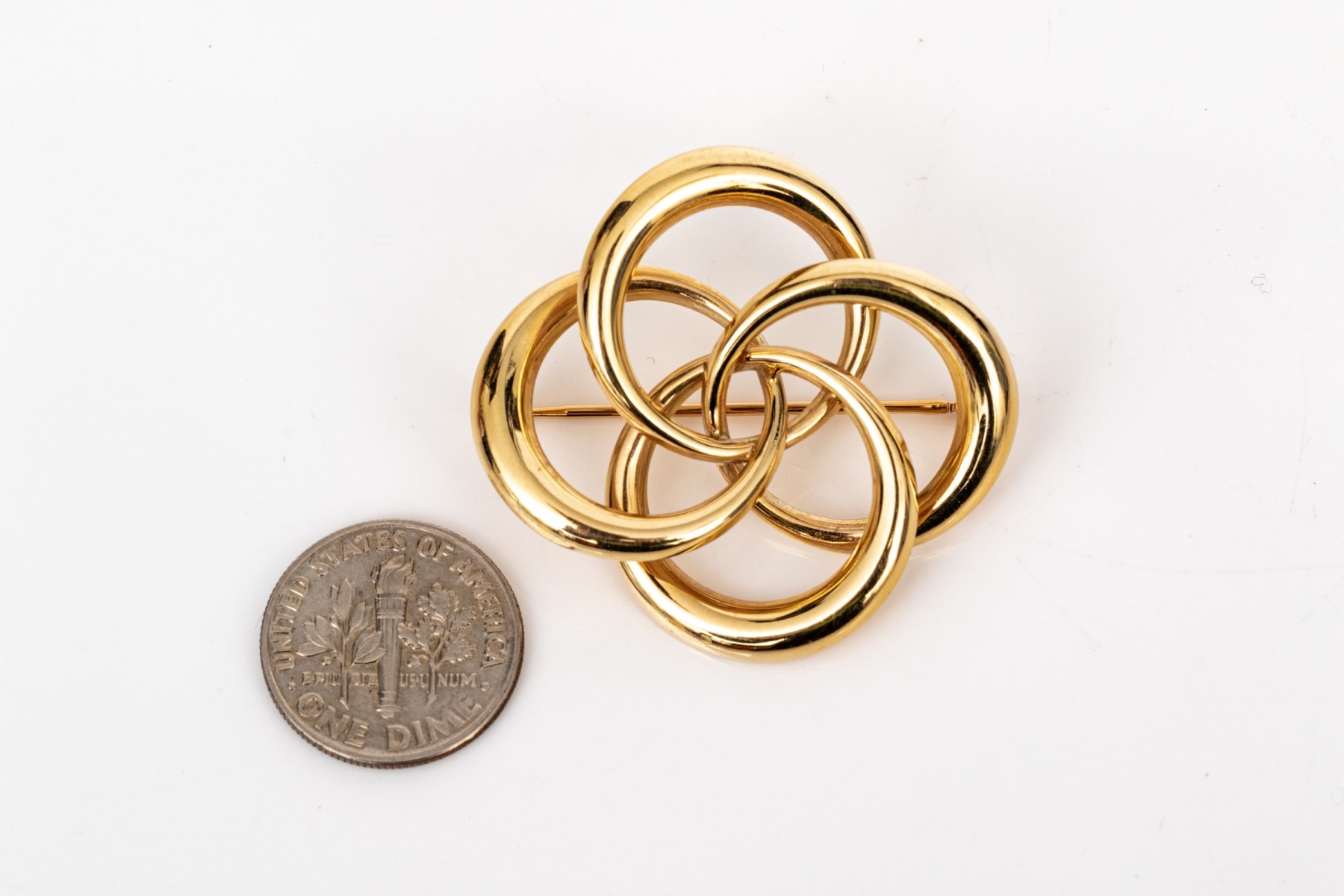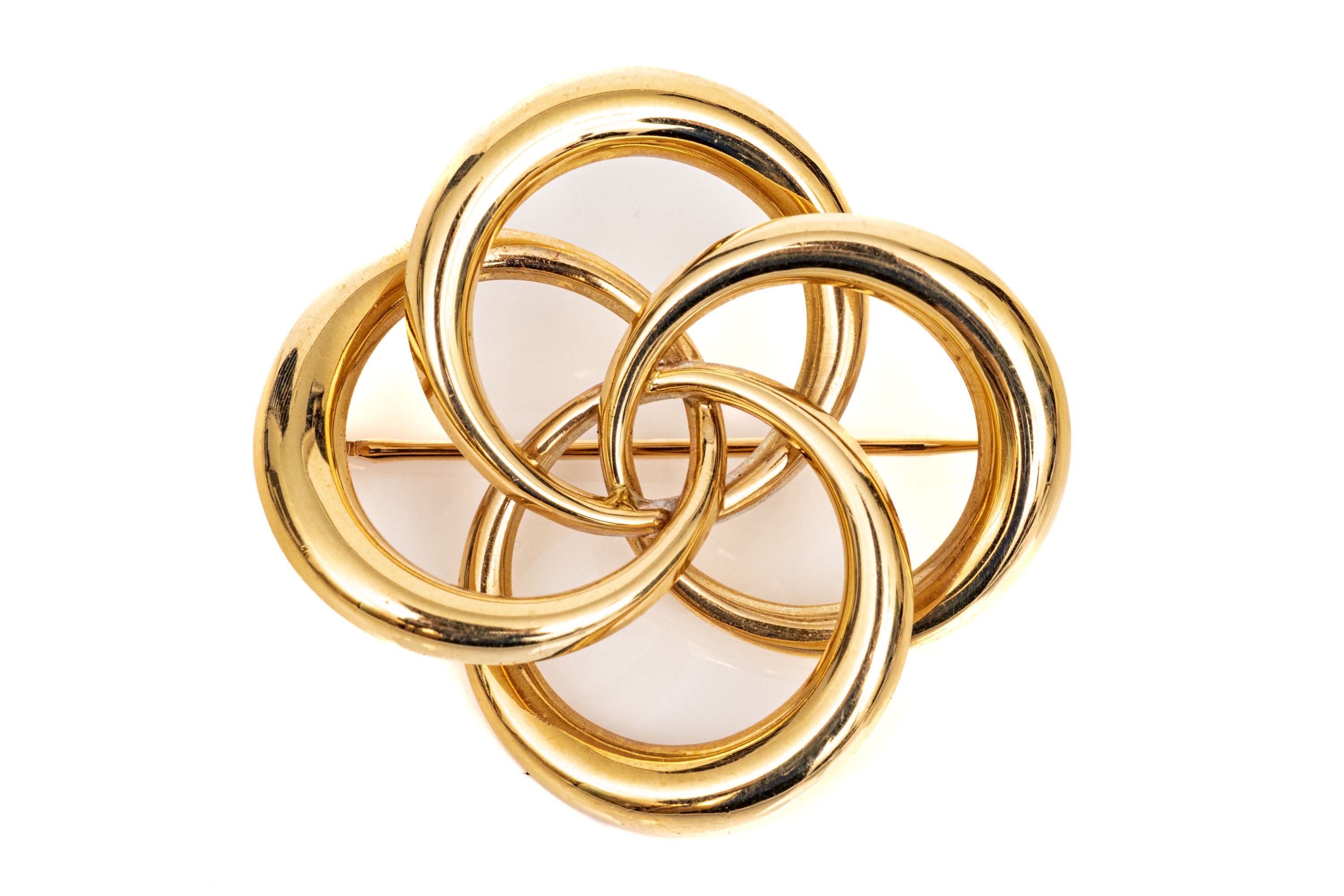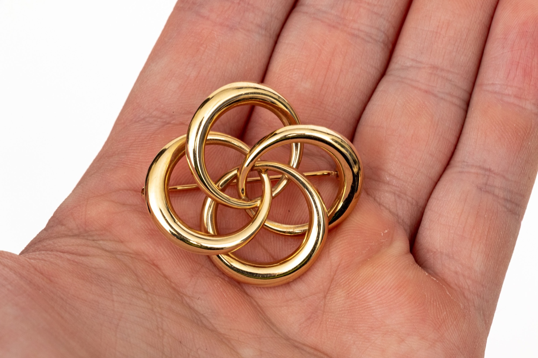 14k yellow gold lovely vintage intertwined quatrefoil knot brooch, with a high polished finish