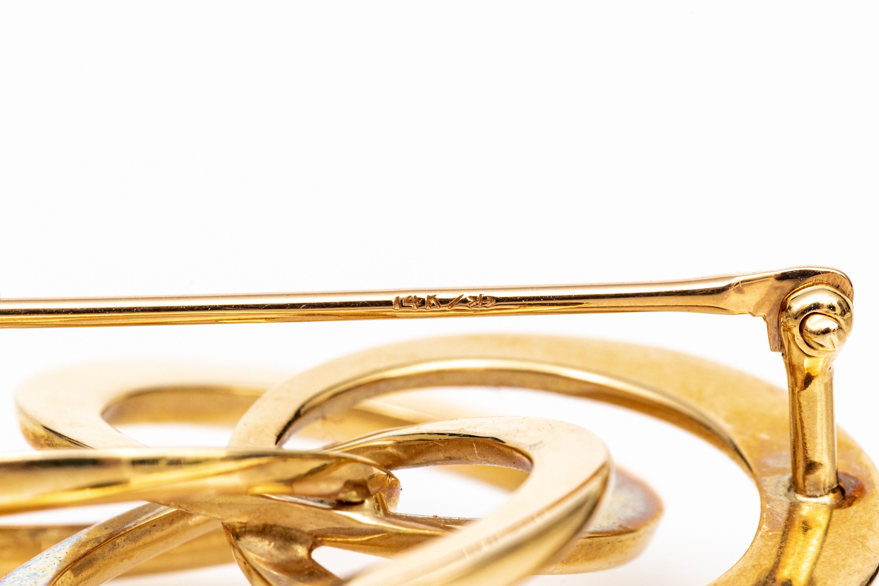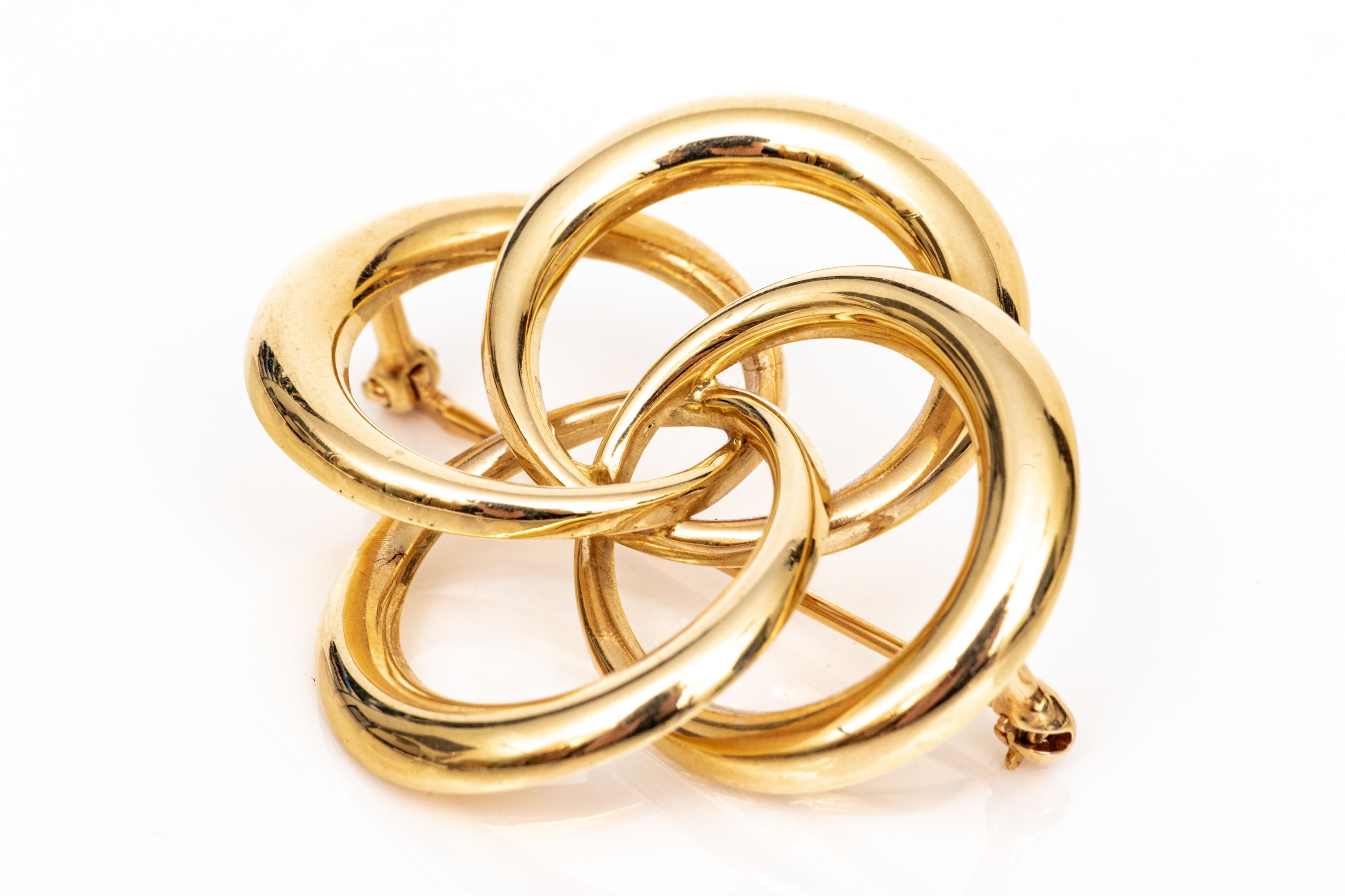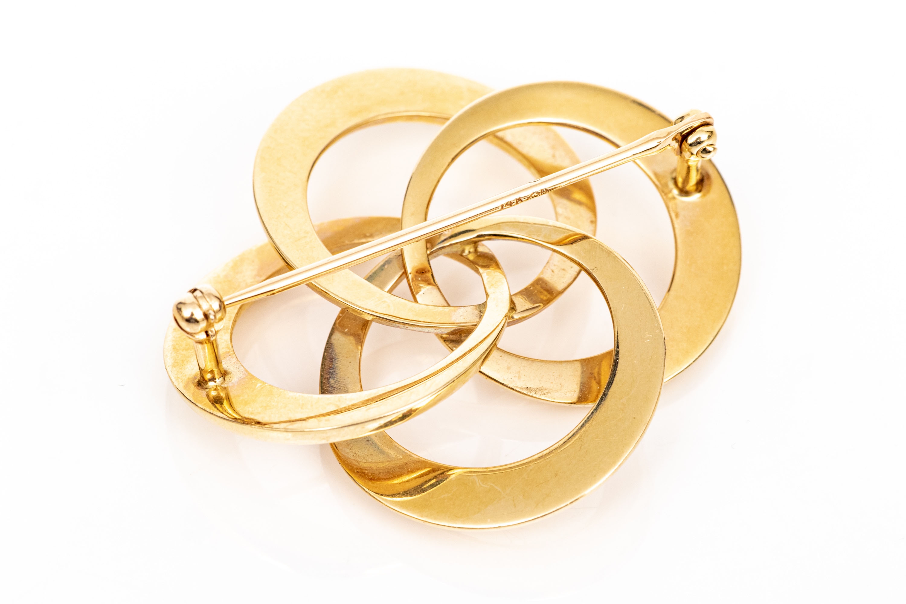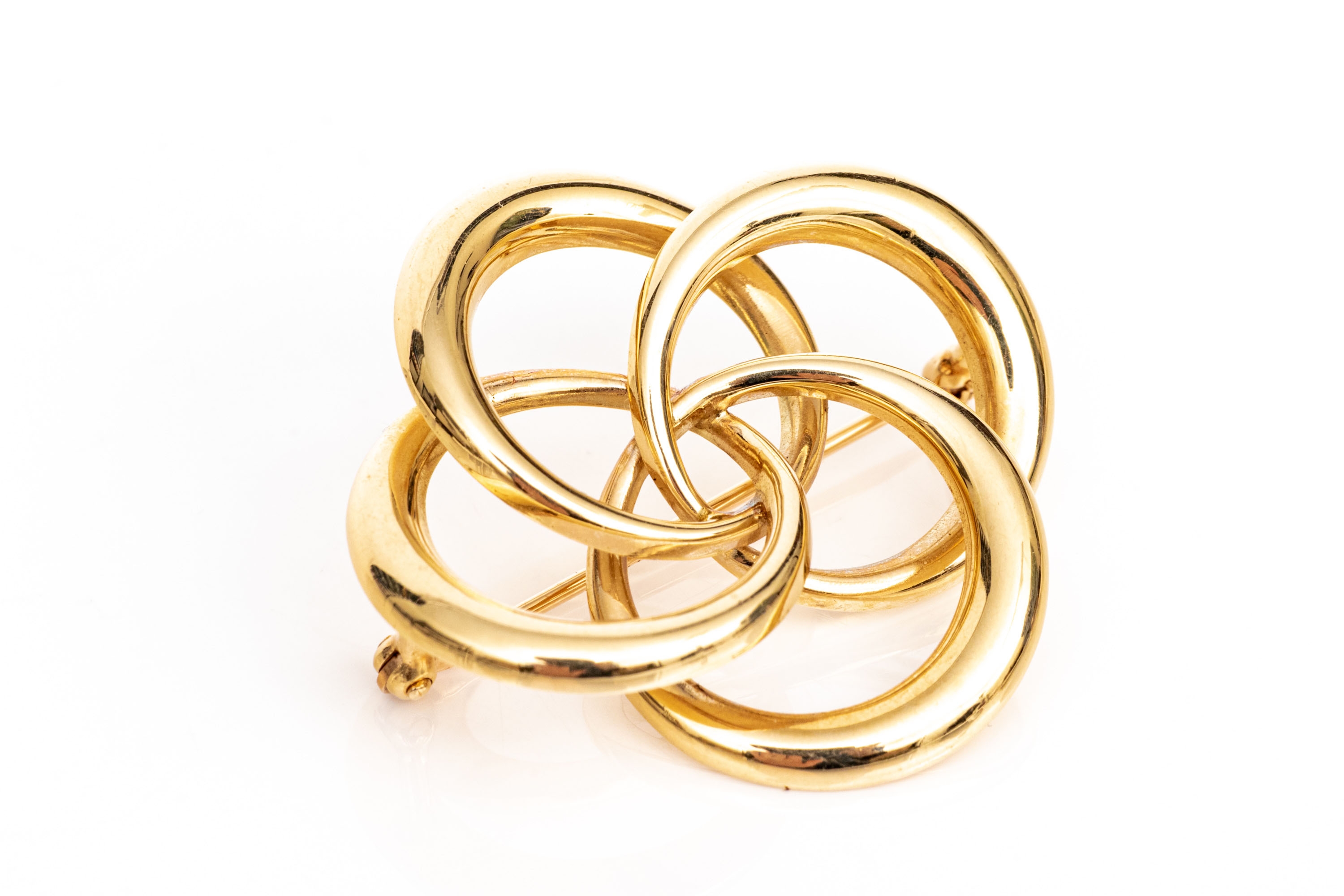 14k yellow gold lovely vintage intertwined quatrefoil knot brooch, with a high polished finish