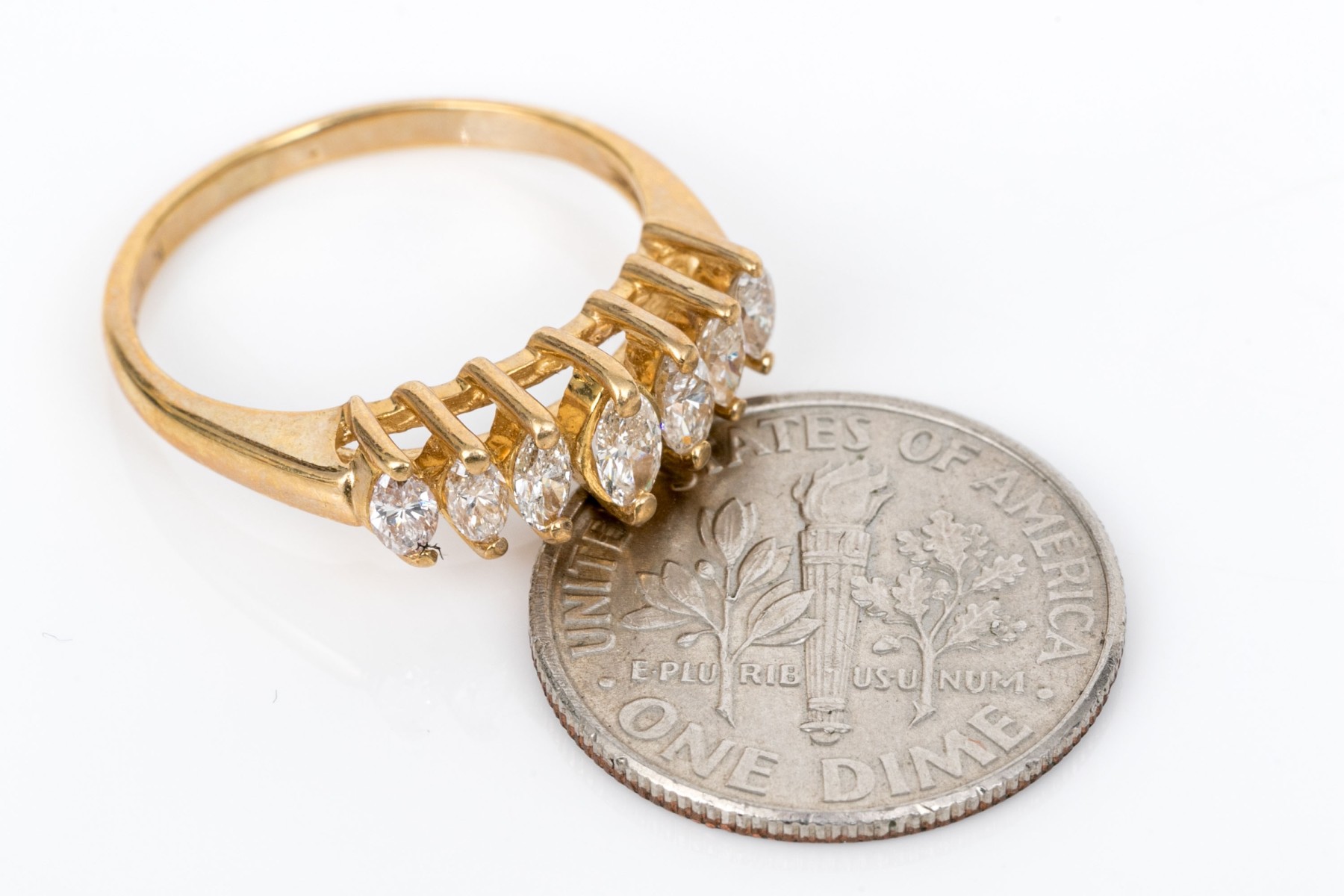 14k yellow gold marquise diamond band ring, app. 0.25 TCW, size 5