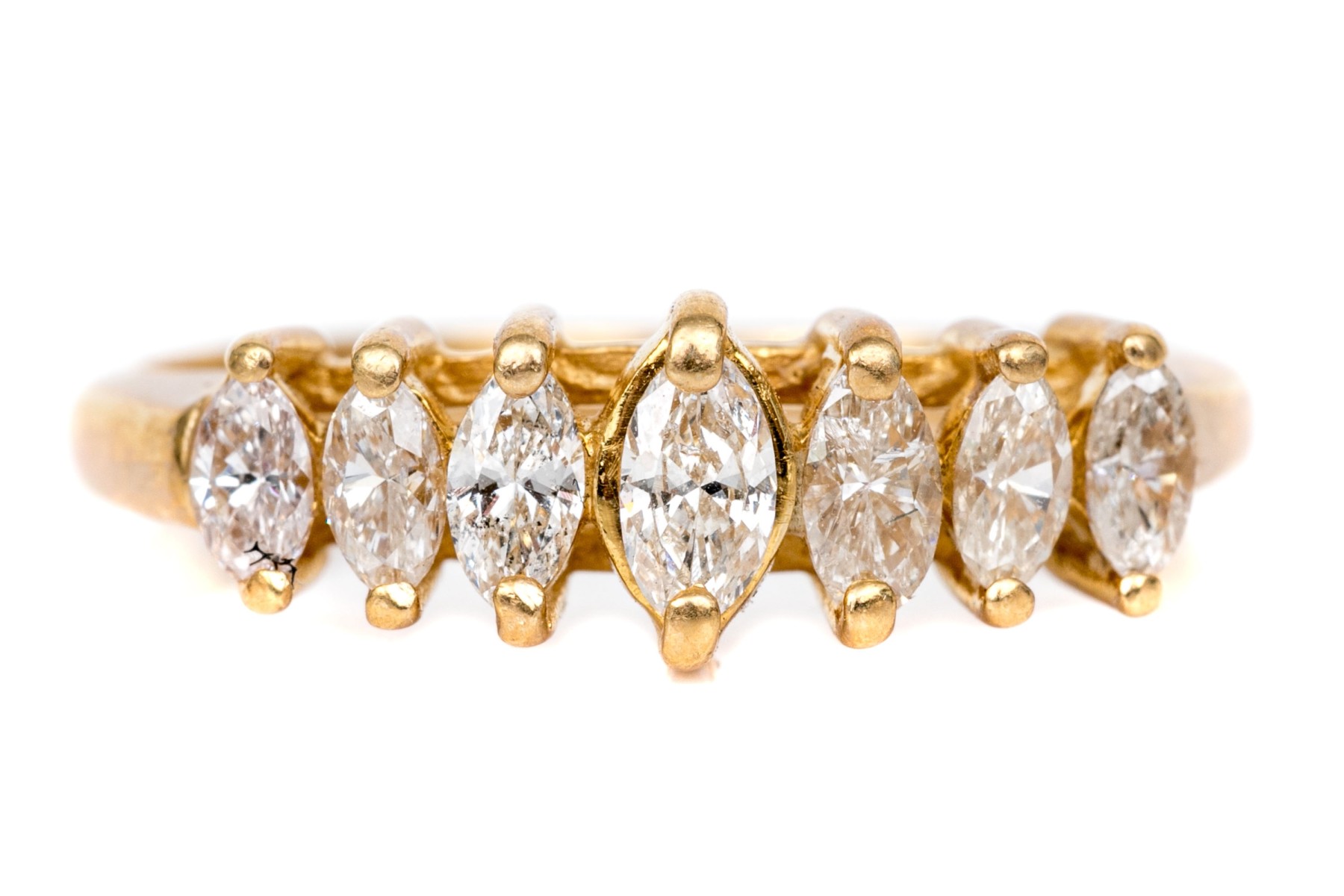 14k Yellow Gold Marquise Diamond Band Ring, App. 0.25 TCW, Size 5 #259865. Black Rock Galleries provides high end estate liquidation services through online estate auctions and a 50,000 sq ft designer showroom. estate liquidator, estate sale, online auction, antiques, fine art, liquidation, clean outs, auction, consignment, interior design, fine jewelry, collectibles, appraisals, estate appraisals, estate services, decor, furniture, furniture consignment, antique center, consignment shop. We offer appraisal services and specialize in fine art, jewelry, antiques and decorative arts. Sell with us. Black Rock Galleries is the tri-state's largest estate liquidator serving New England and the greater New York City area. We are the trusted source for expert appraisals, auction services, estate sales, and consignments. Black Rock Galleries is the east coast's largest and most trusted estate liquidator, with locations in Connecticut, greater Boston, MA and Raleigh, NC, Fairfield, Southport, Apex, TX. We are the best source for expert appraisals, auction services, estate sales and consignments. We have served thousands of families and estates with compassion, professionalism and expertise. BRG works with attorneys, executors, realtors and families to bring the greatest return on personal and estate property in the current market. Our unique combination of services make us the easy choice to get the job done in a timely and stress-free manner. We are with you from the initial consultation to the final clean out. Our house-built online auction software platform offers clients a dynamic approach to liquidating their personal property. This venue is most successful in bringing the best return with the least amount of disruption for our clients. See our services page for a complete description of this offering. 14k Yellow Gold Marquise Diamond Band Ring, App. 0.25 TCW, Size 5 #259865