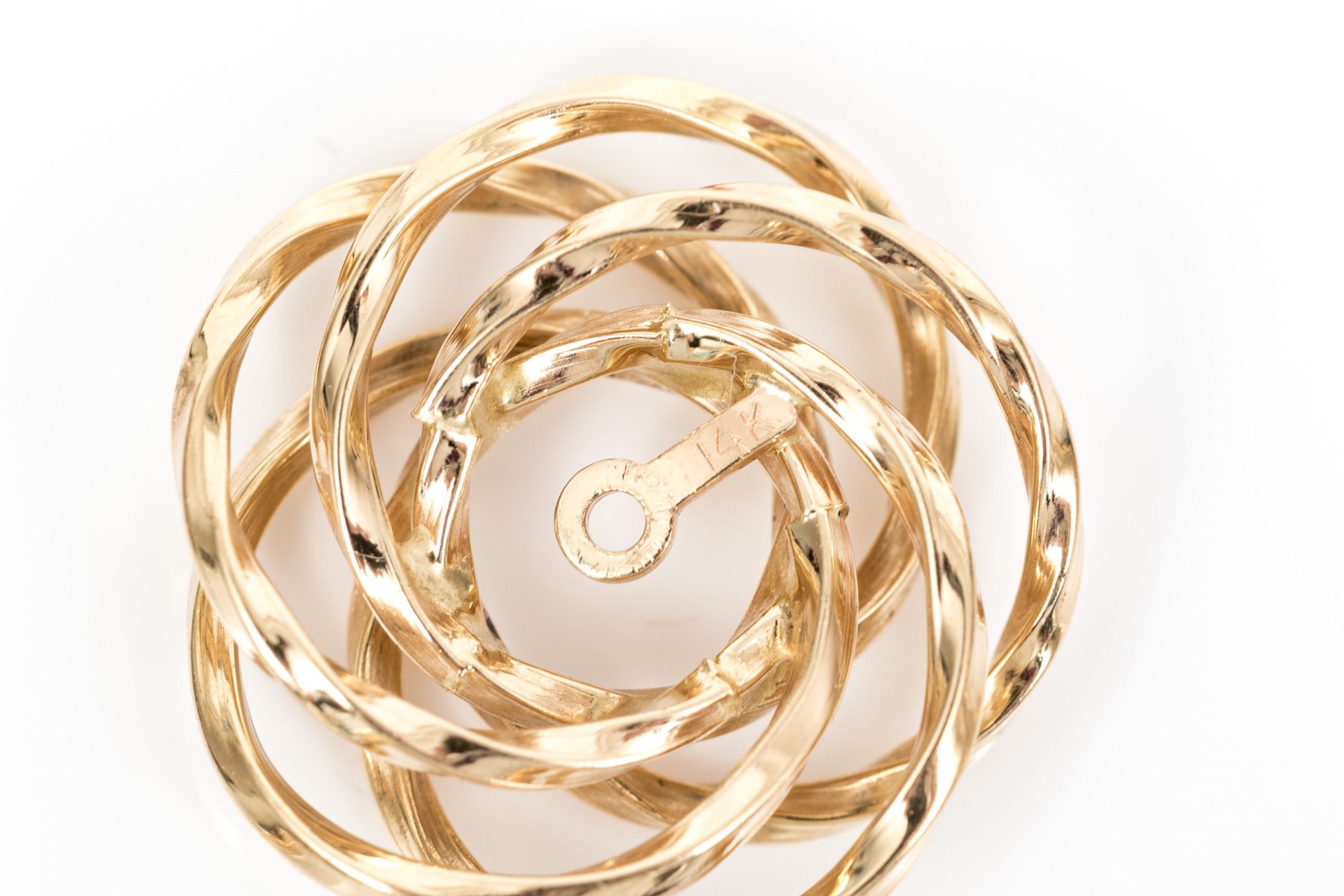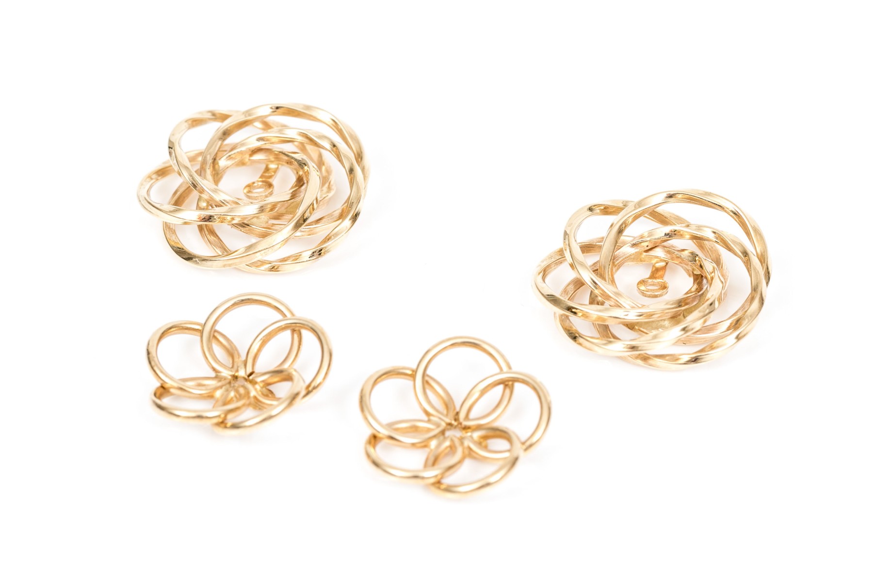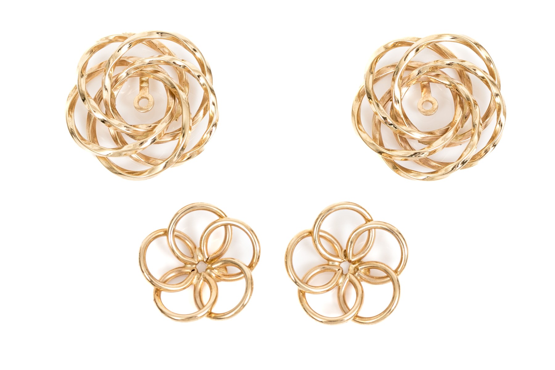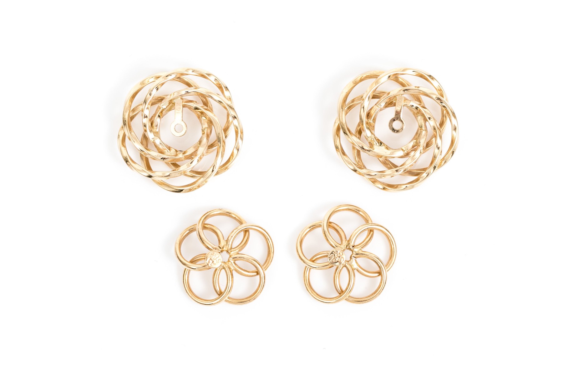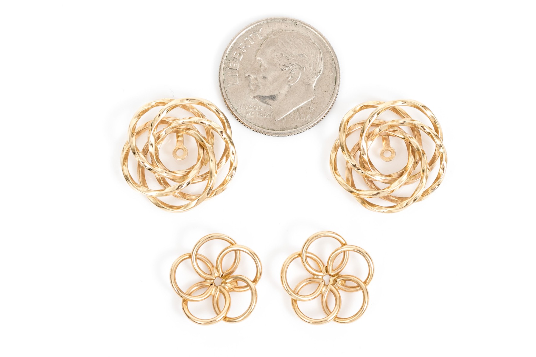 14k yellow gold pair of knot earrings jackets and swirl earrings jackets