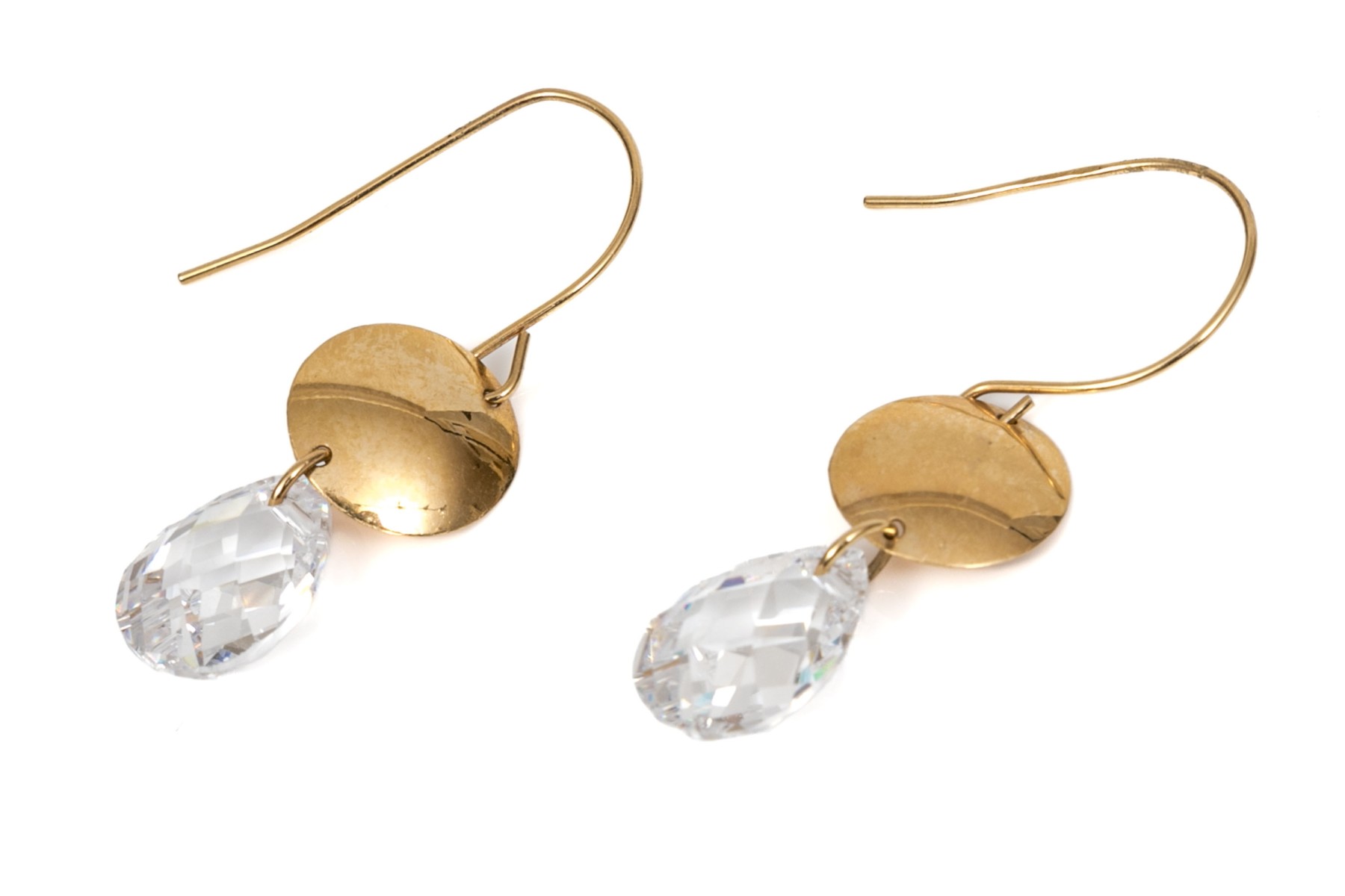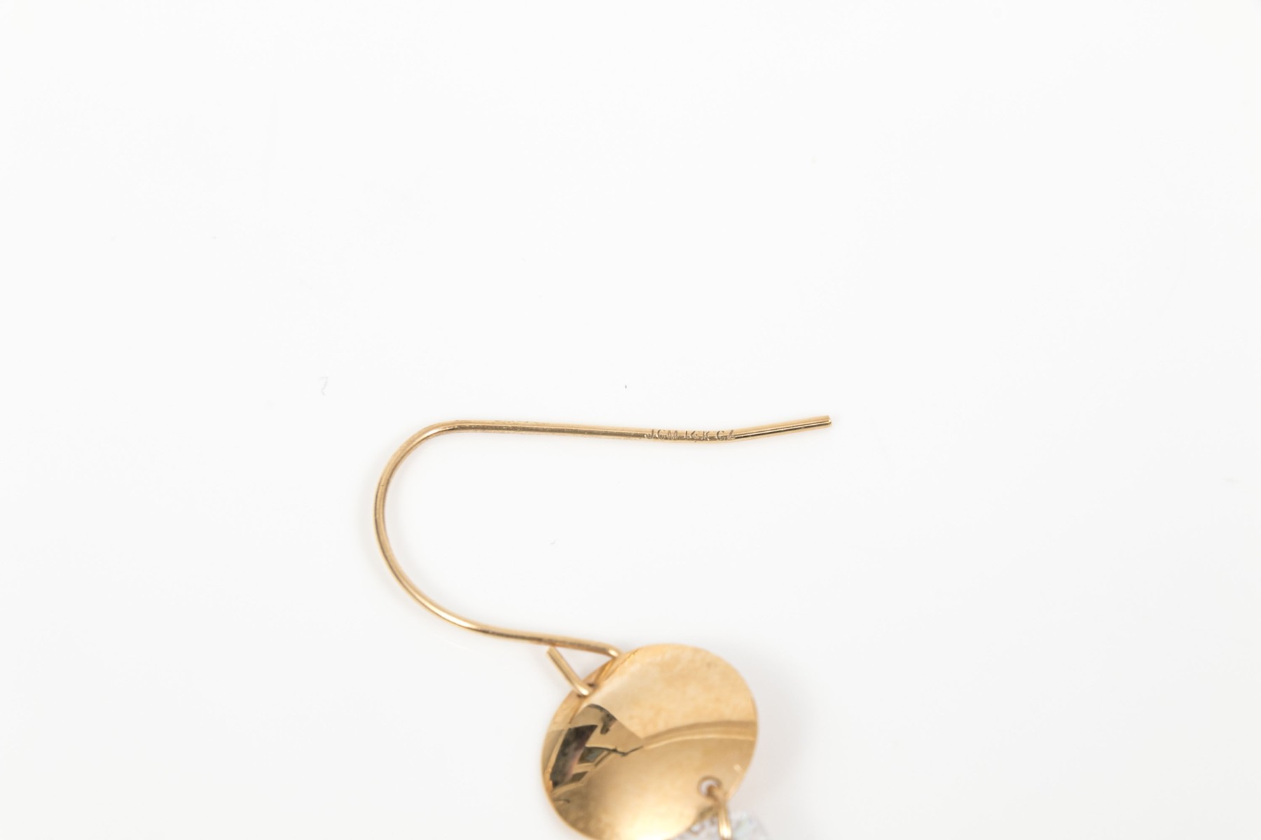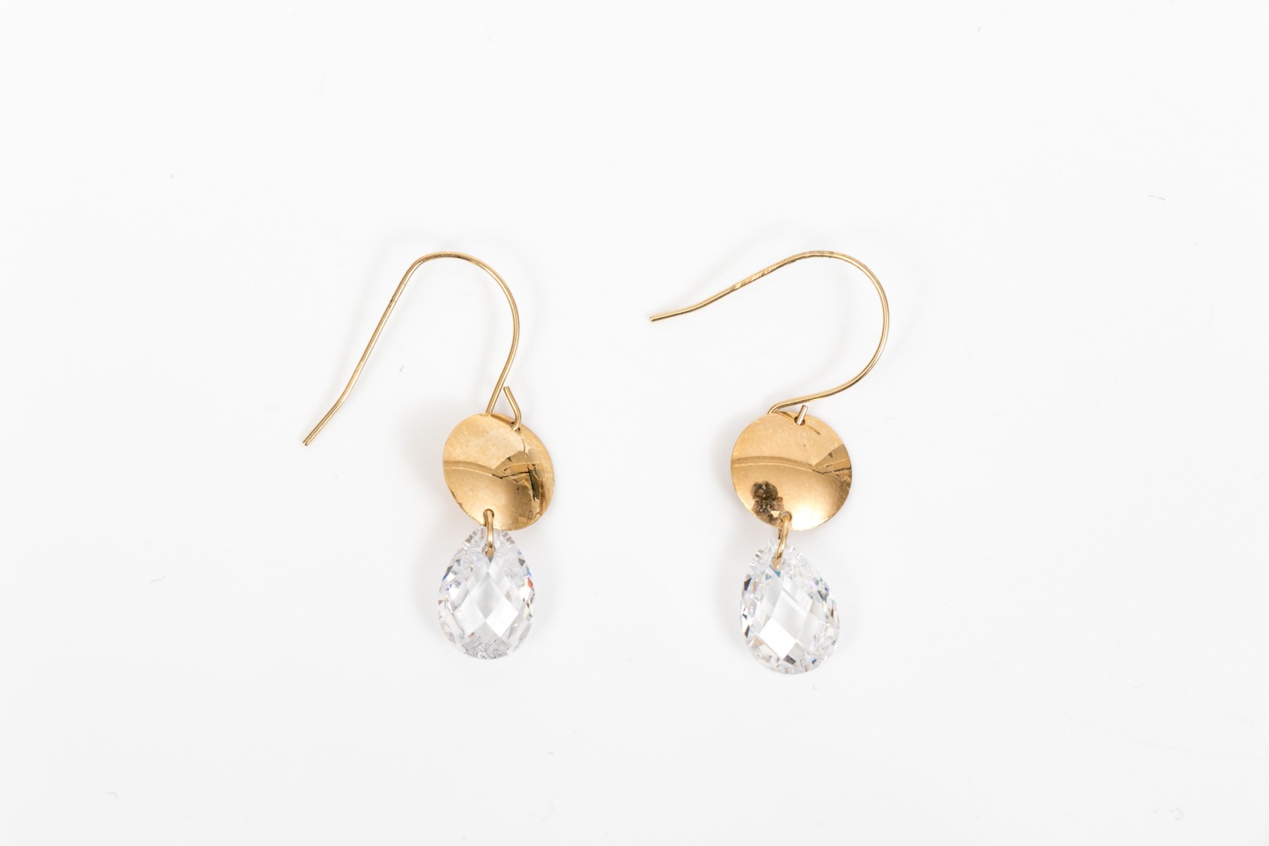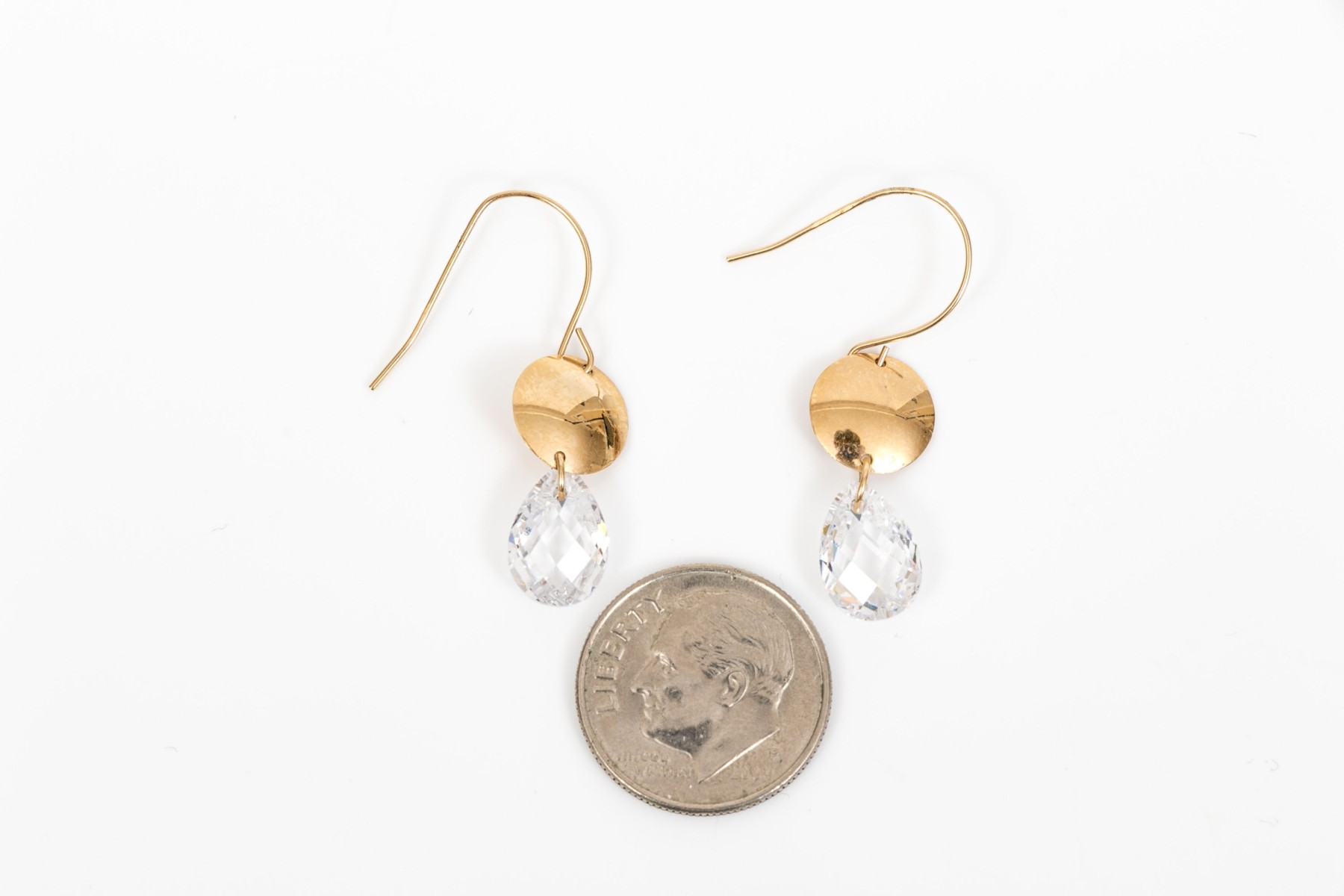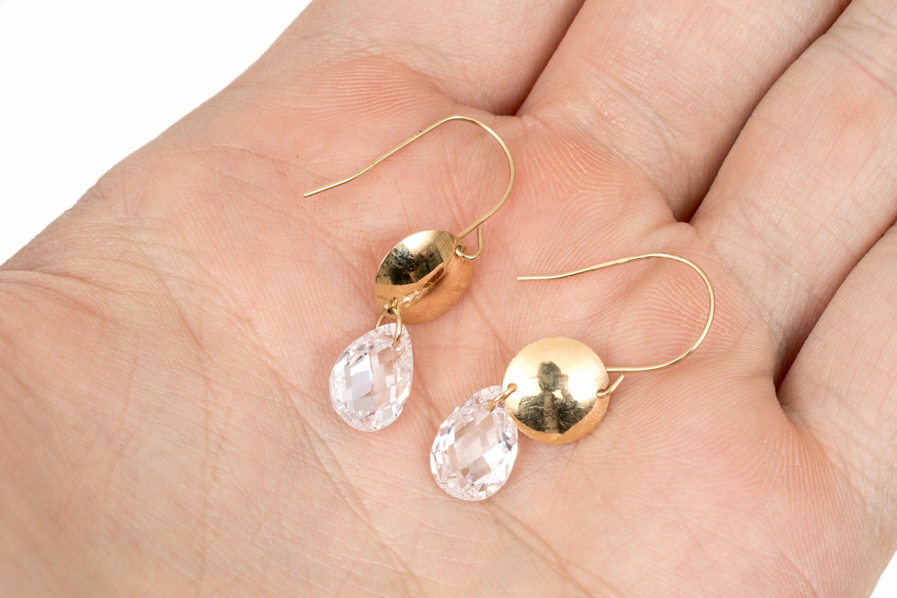14k yellow gold pair of striking briolette cz drop earrings, finished with shepherds hooks