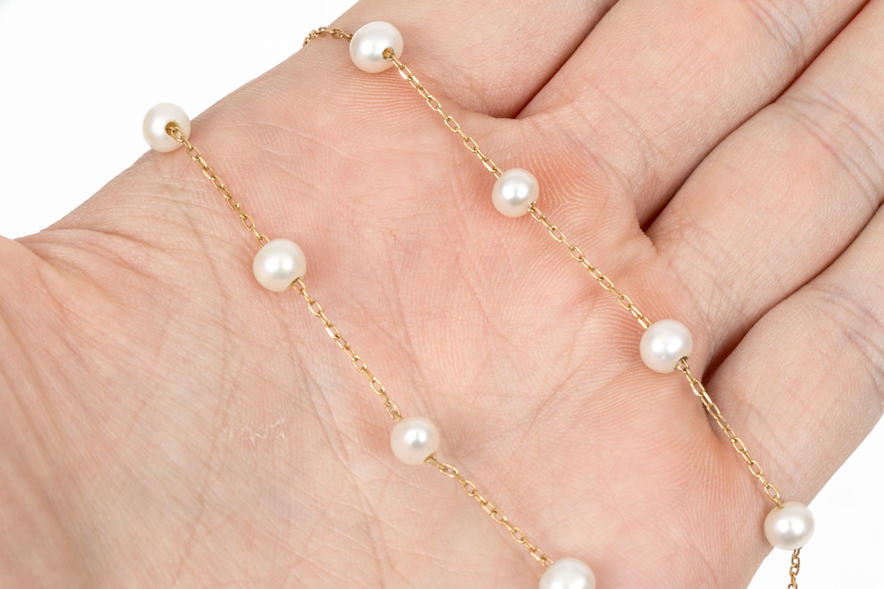 Dimensions: 18" long x 3/16" wide at cultured freshwater pearls