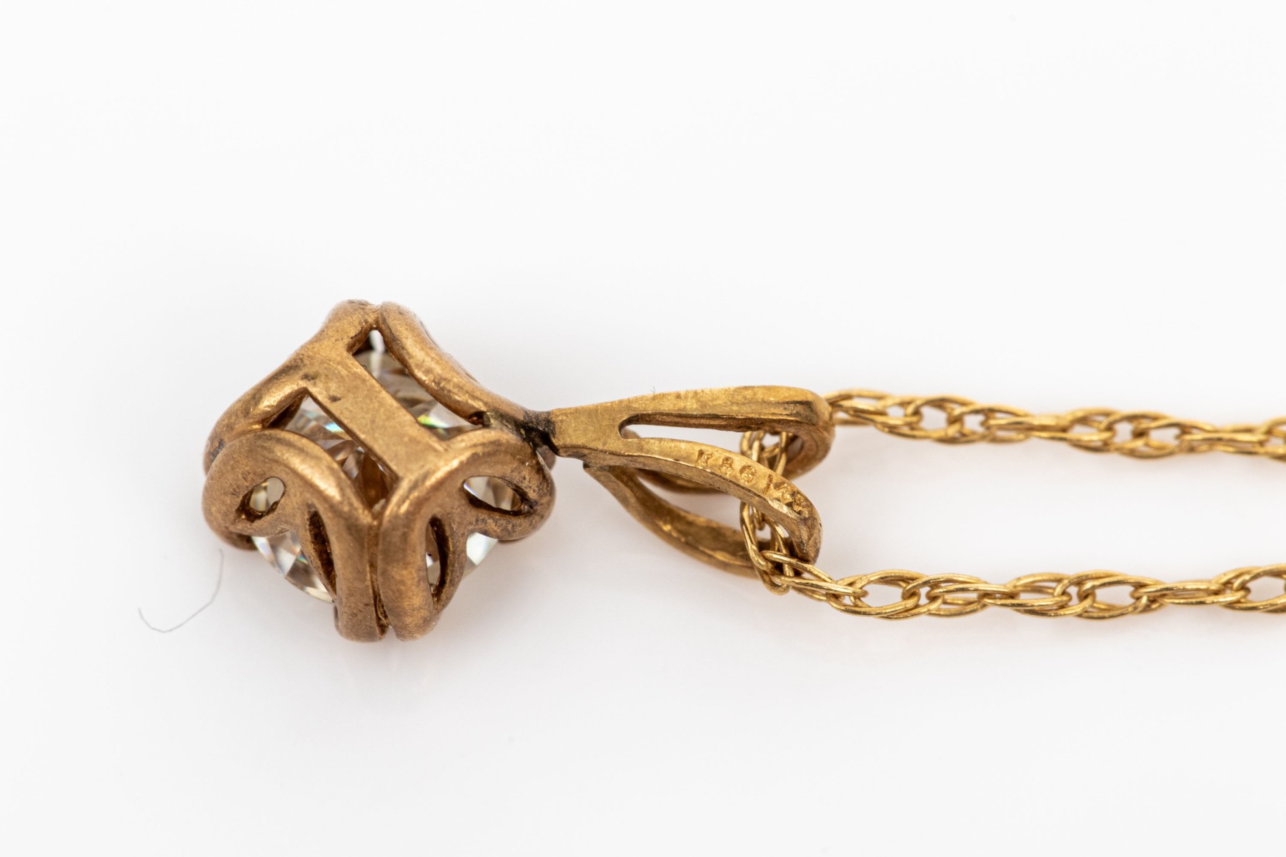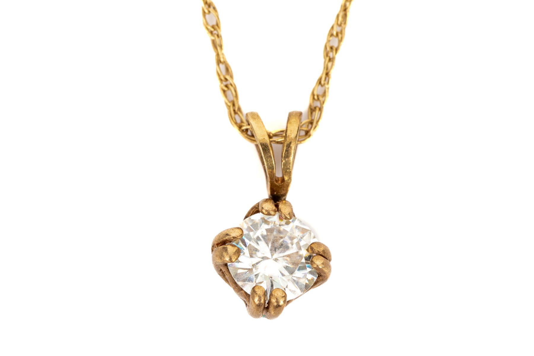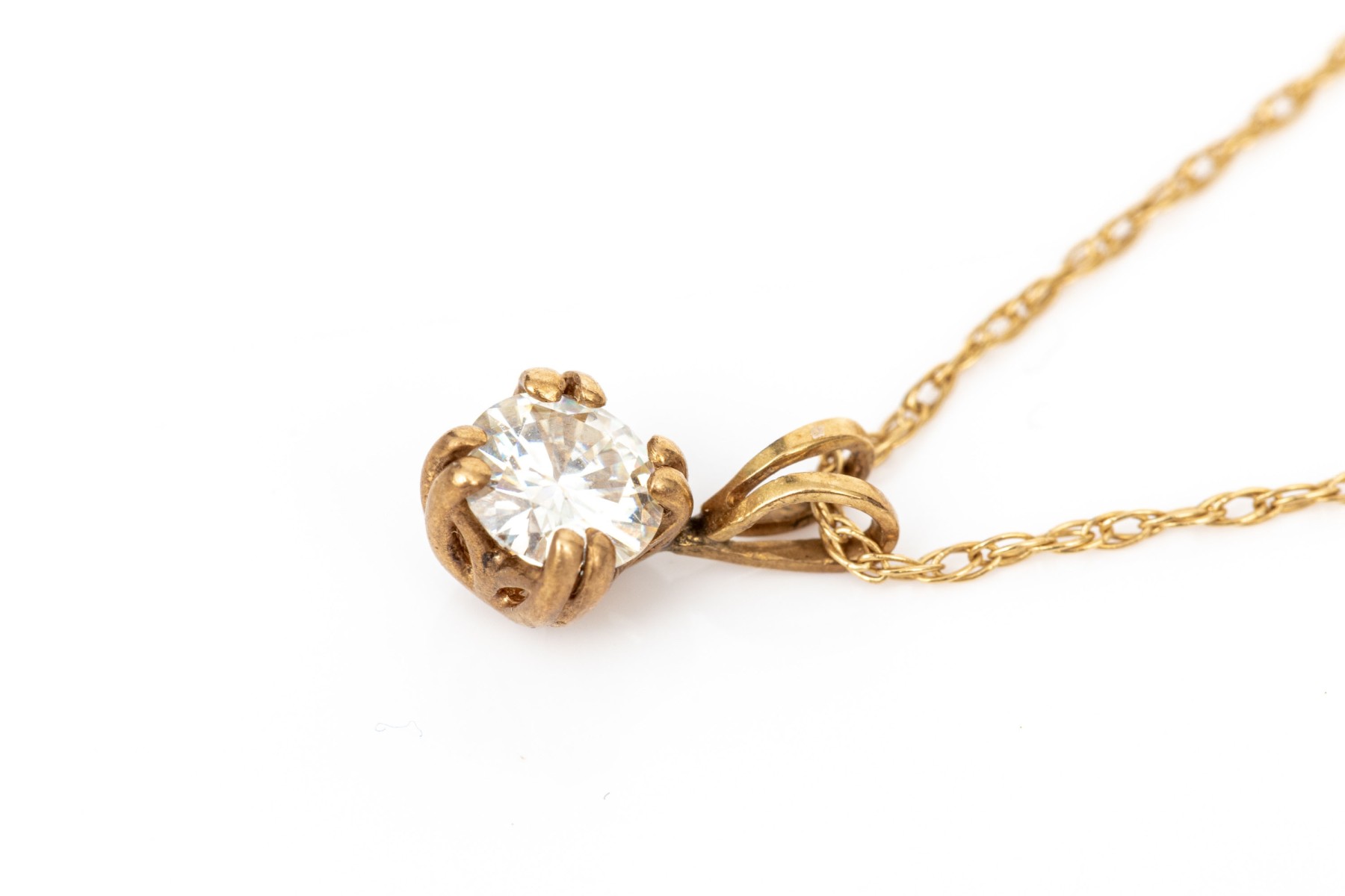 14k yellow gold pretty round brilliant moissanite solitaire pendant, prong set, with chain