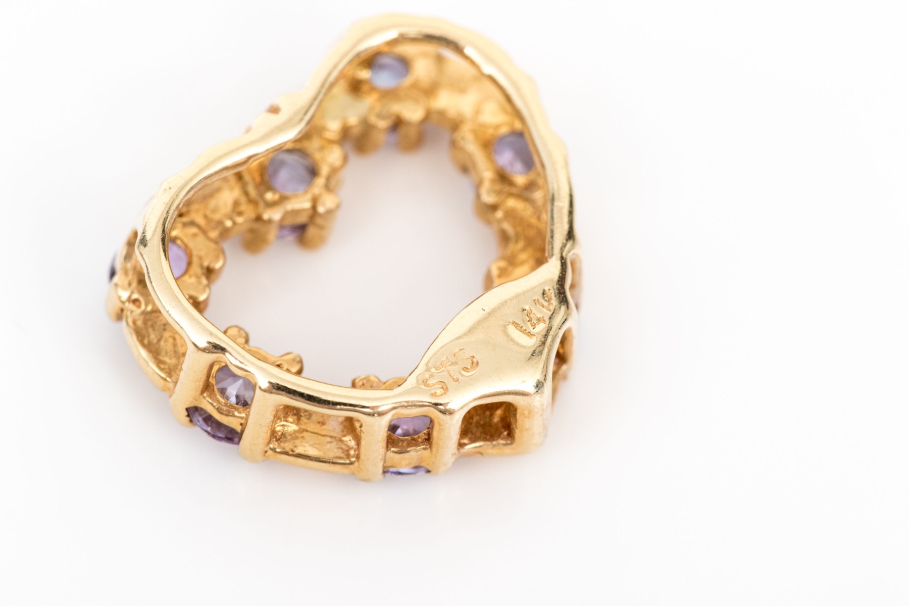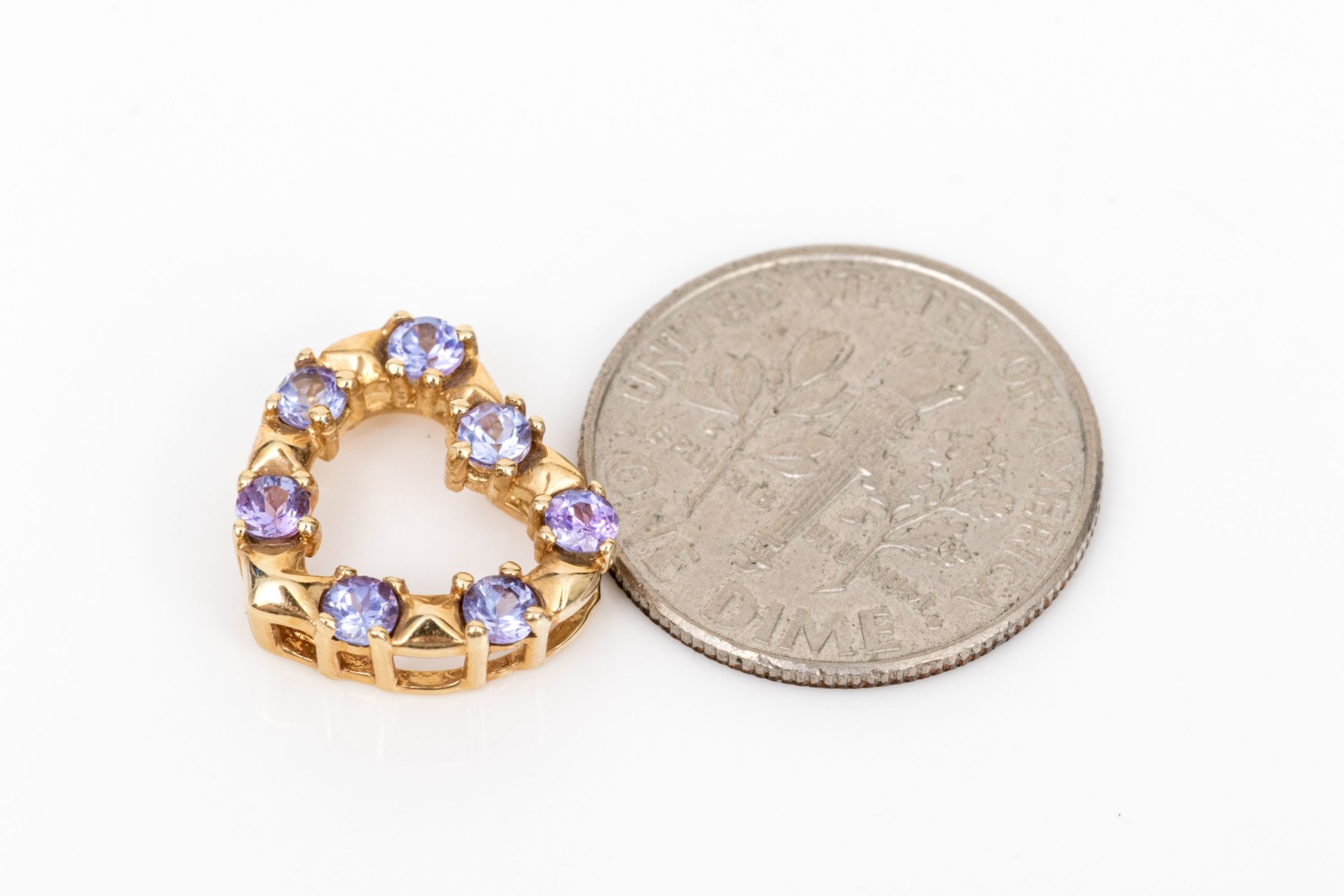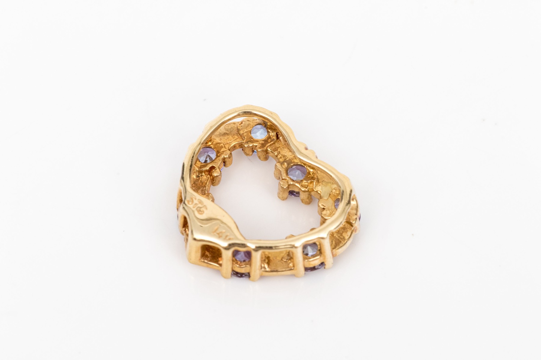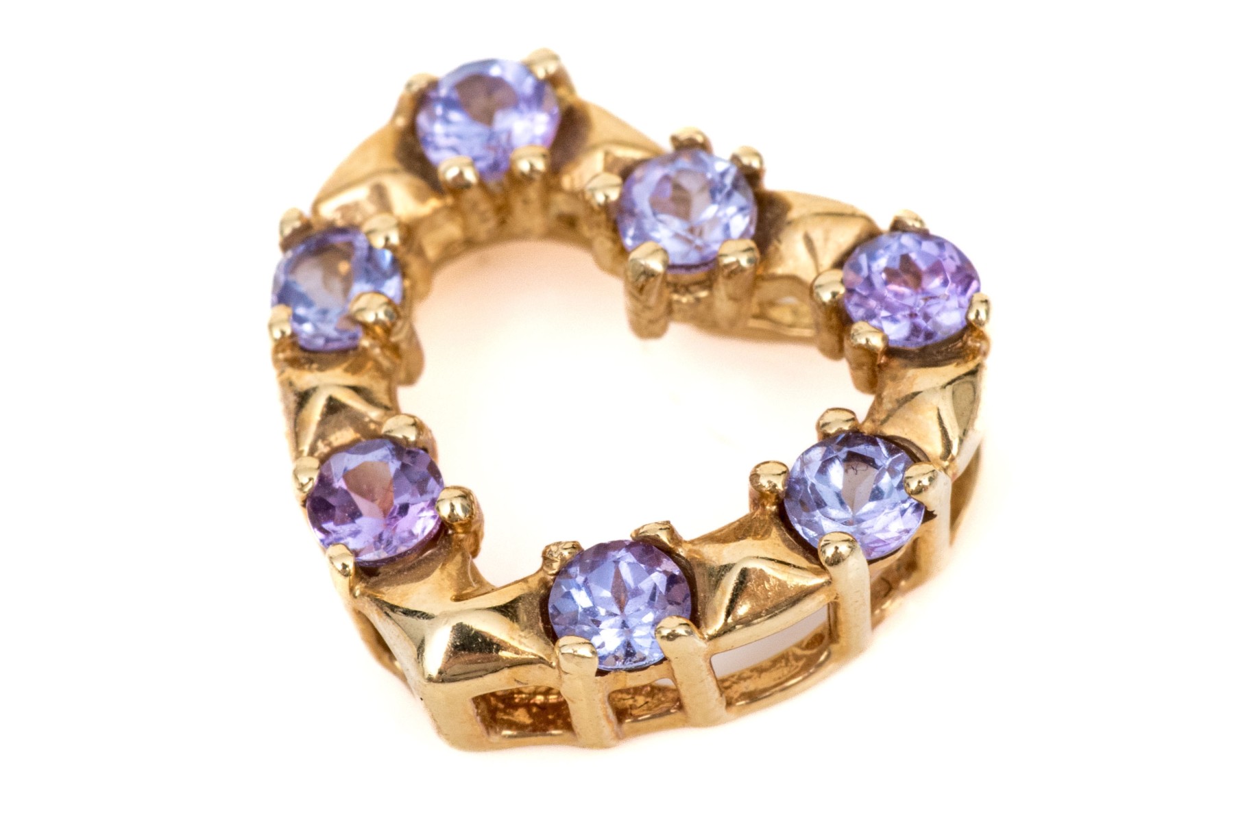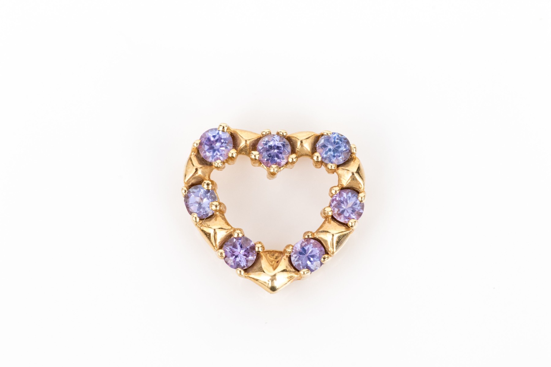 14k yellow gold pretty tanzanite set floating heart pendant