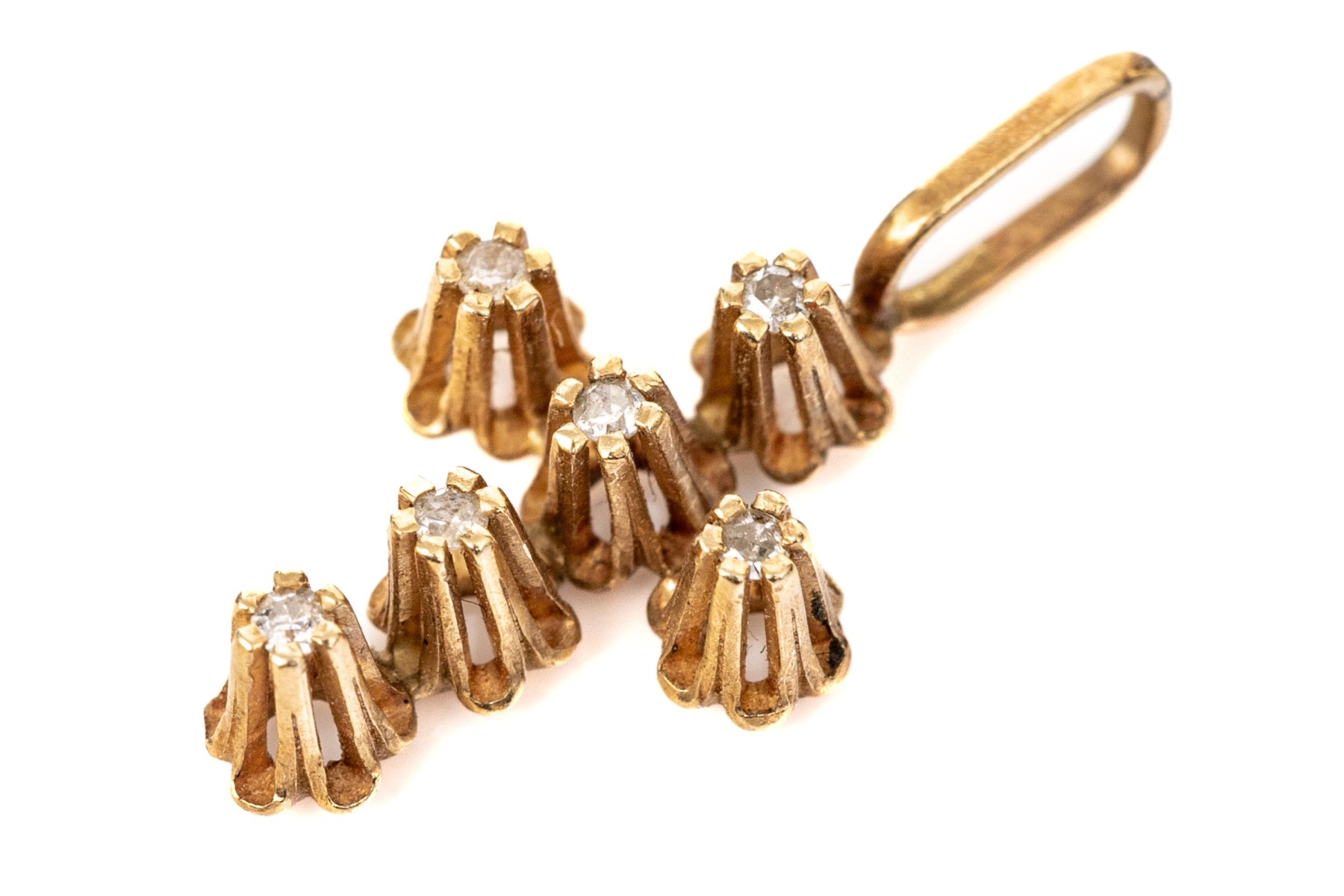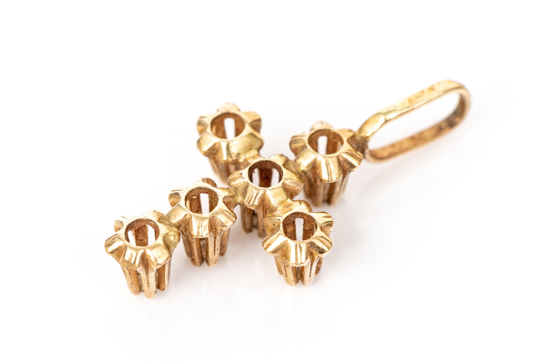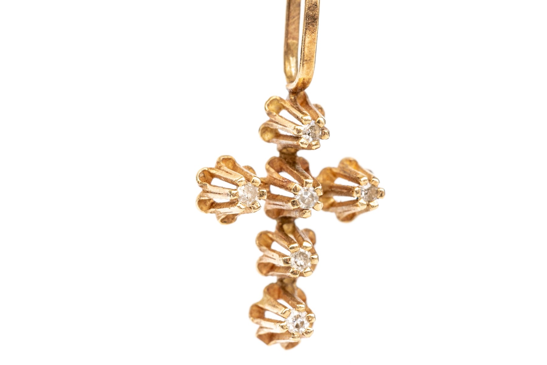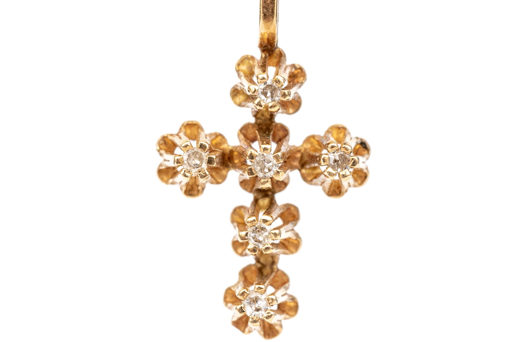 14k yellow gold pretty vintage buttercup set white sapphire cross, finished with a solid style bale