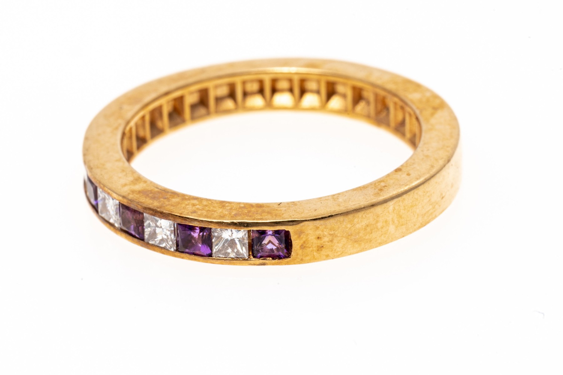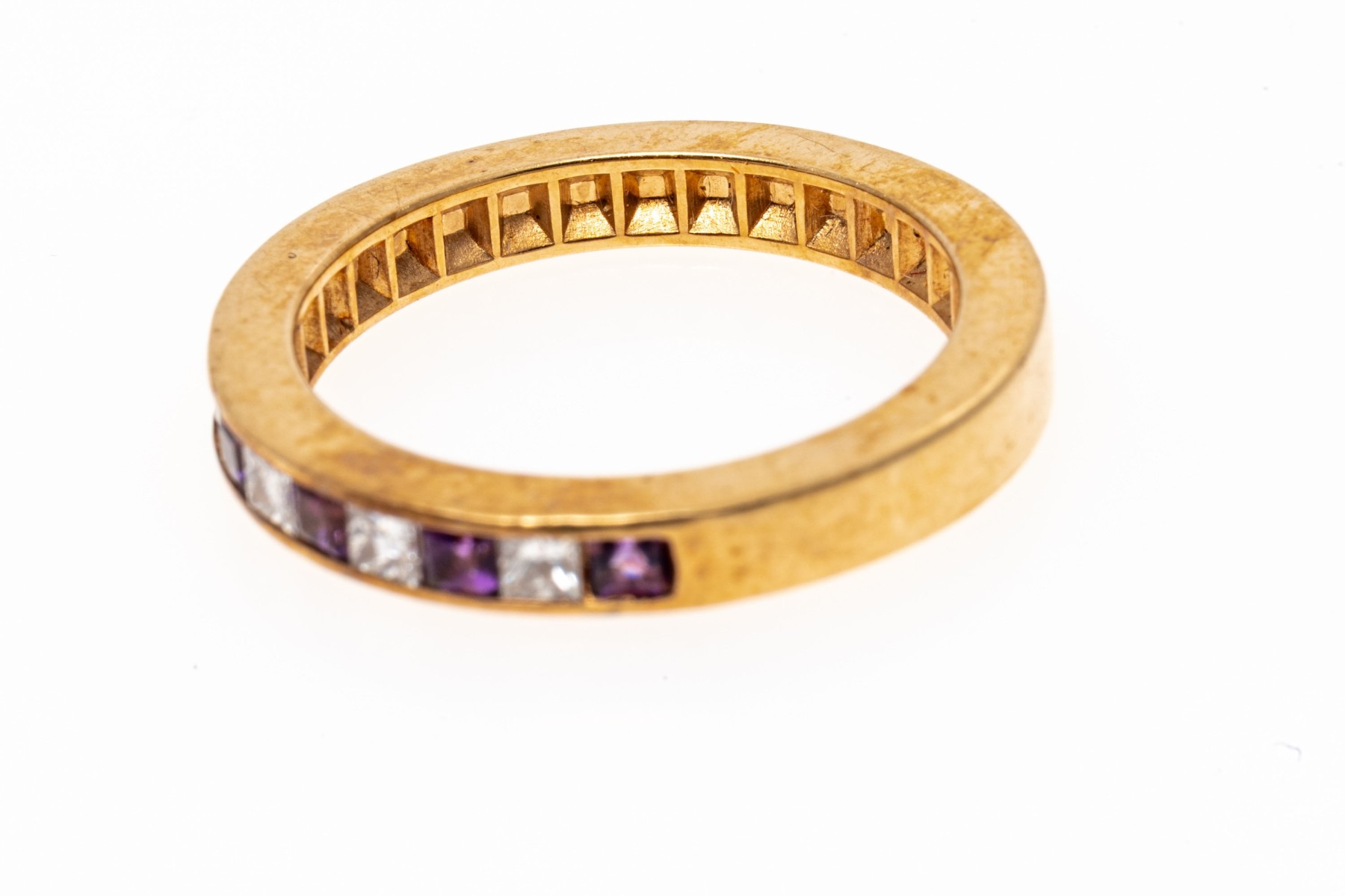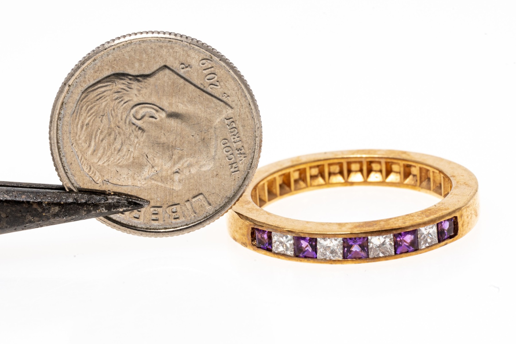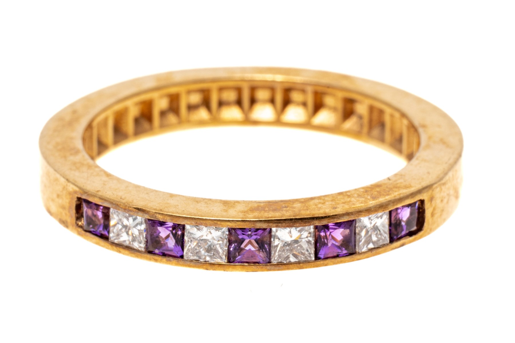 14k yellow gold princess cut amethyst and diamond set band ring, app. 0.12 TCW, size 6.75