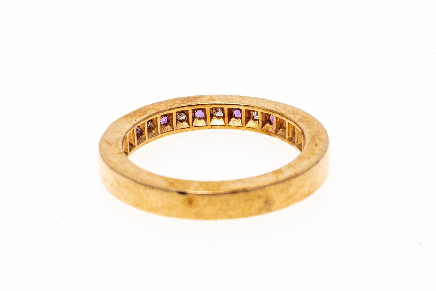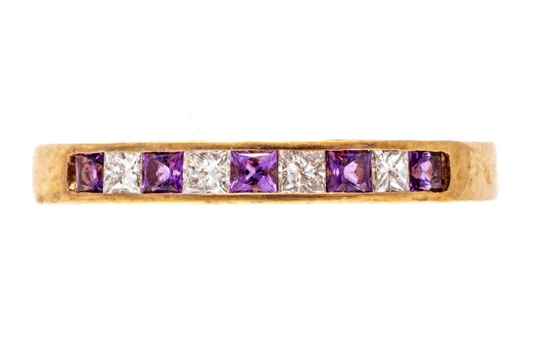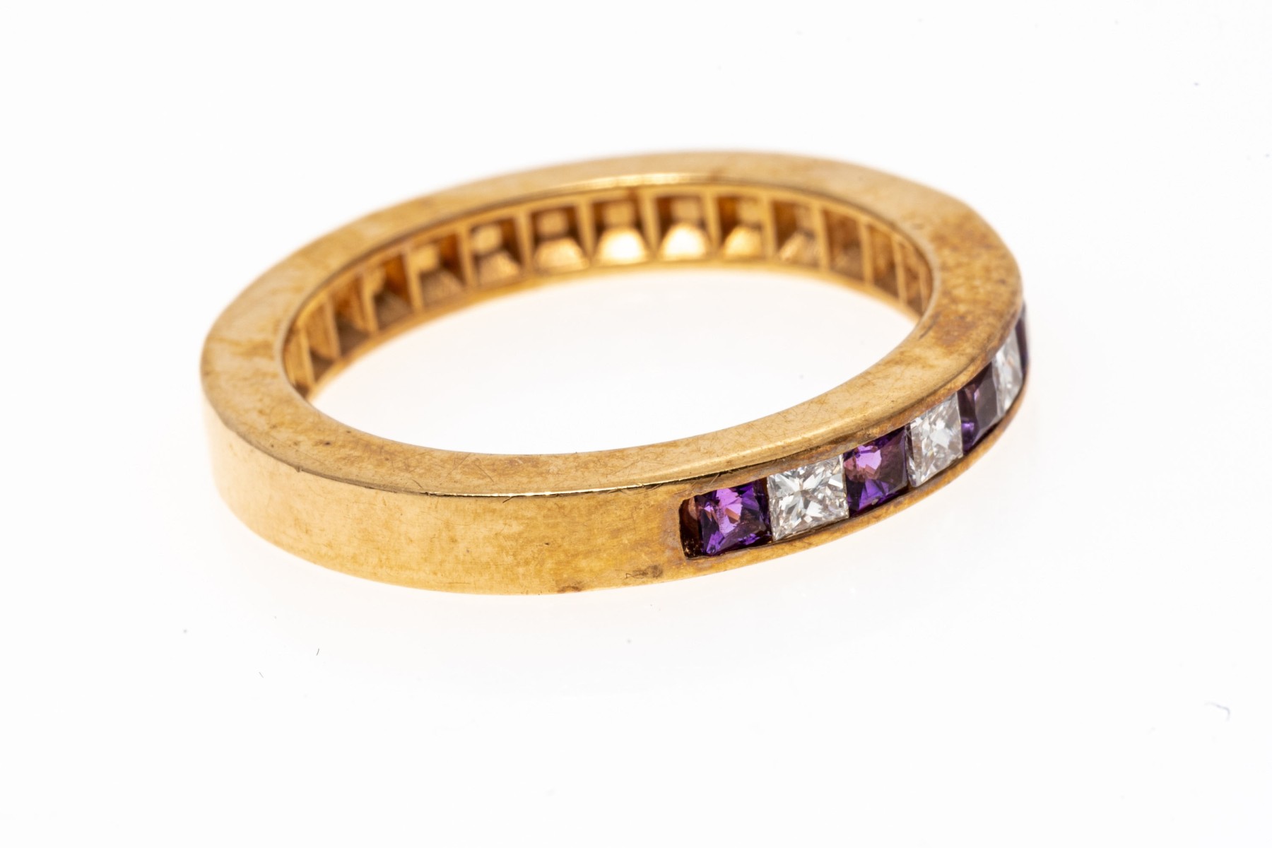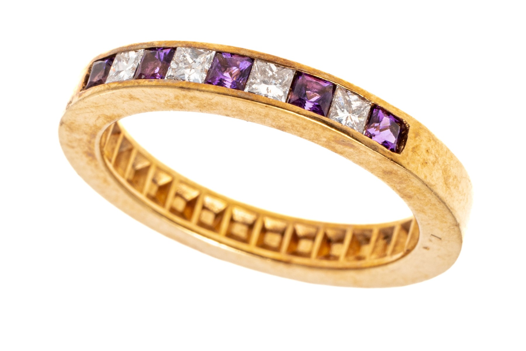 14k yellow gold princess cut amethyst and diamond set band ring, app. 0.12 TCW, size 6.75