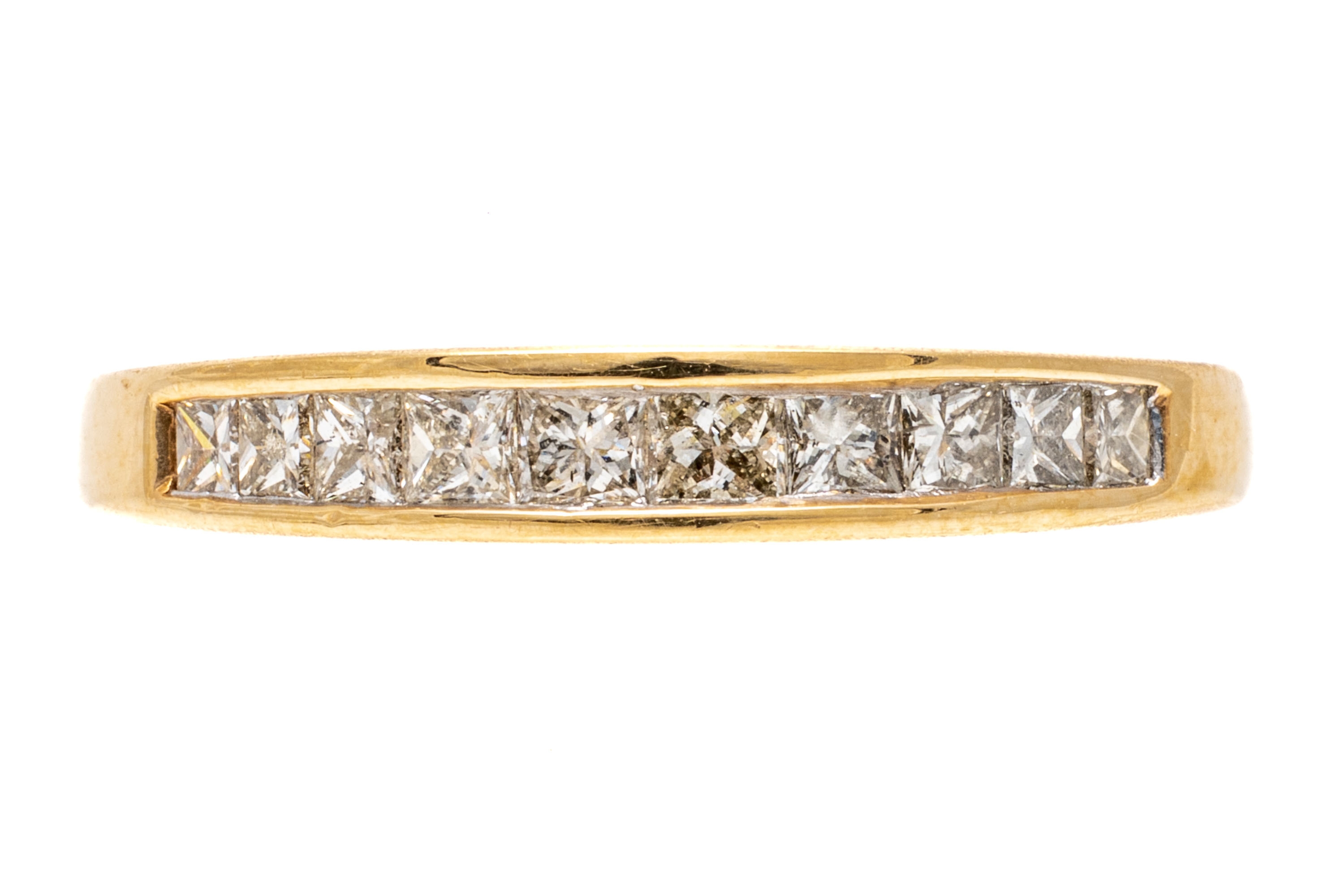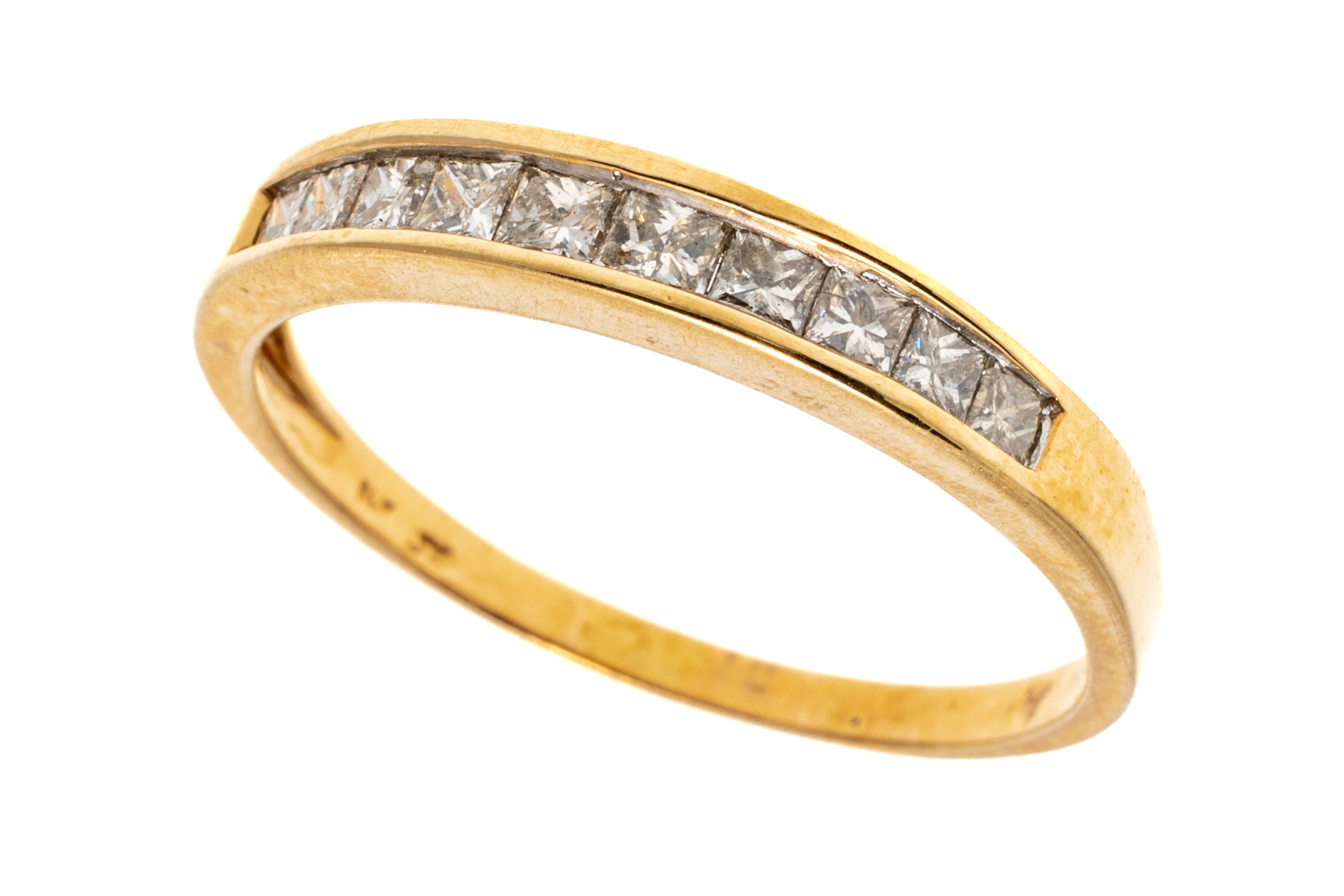 14k yellow gold princess cut diamond band ring, app. 0.30 TCW, size 9