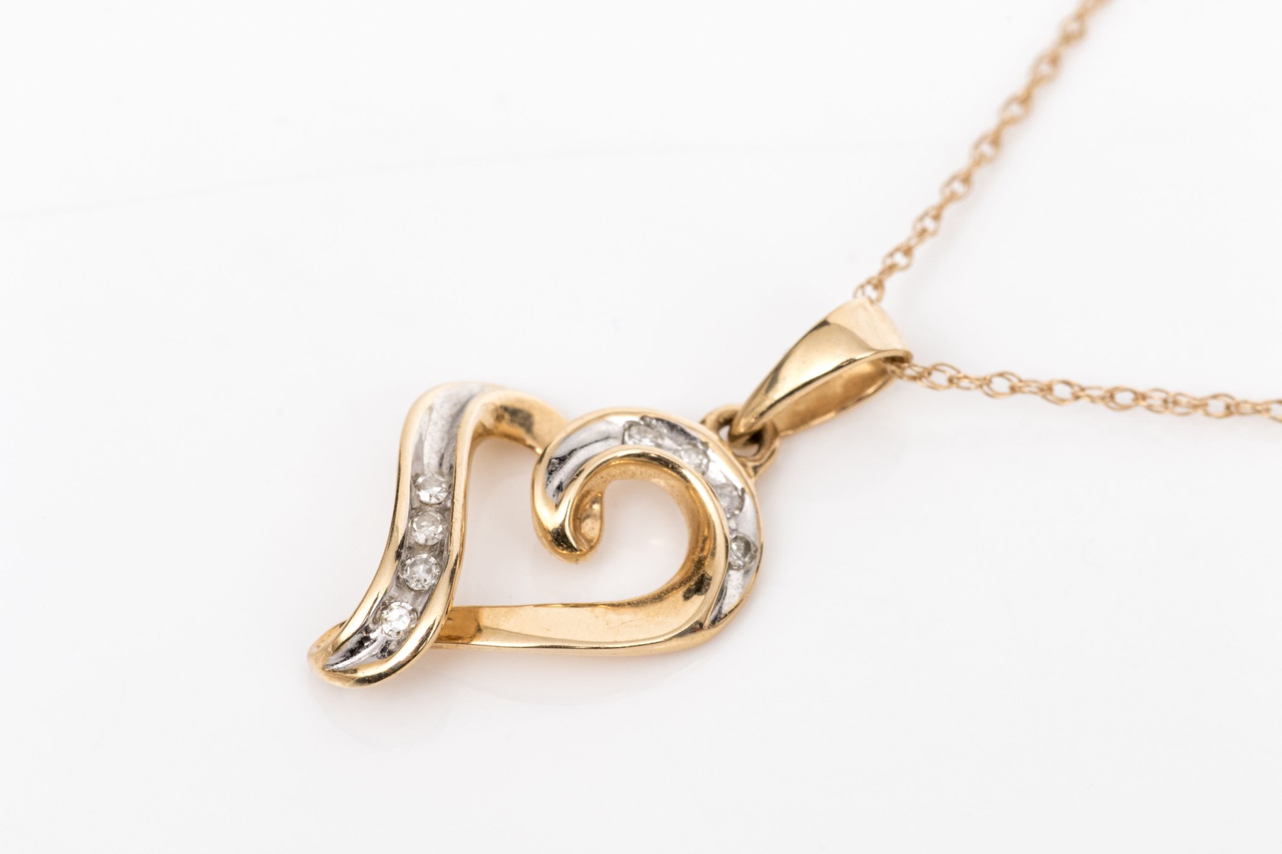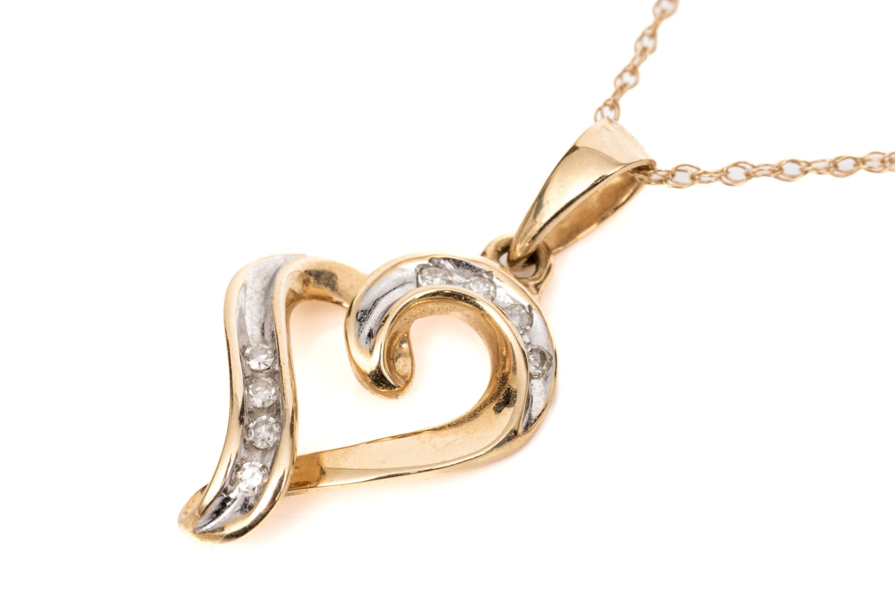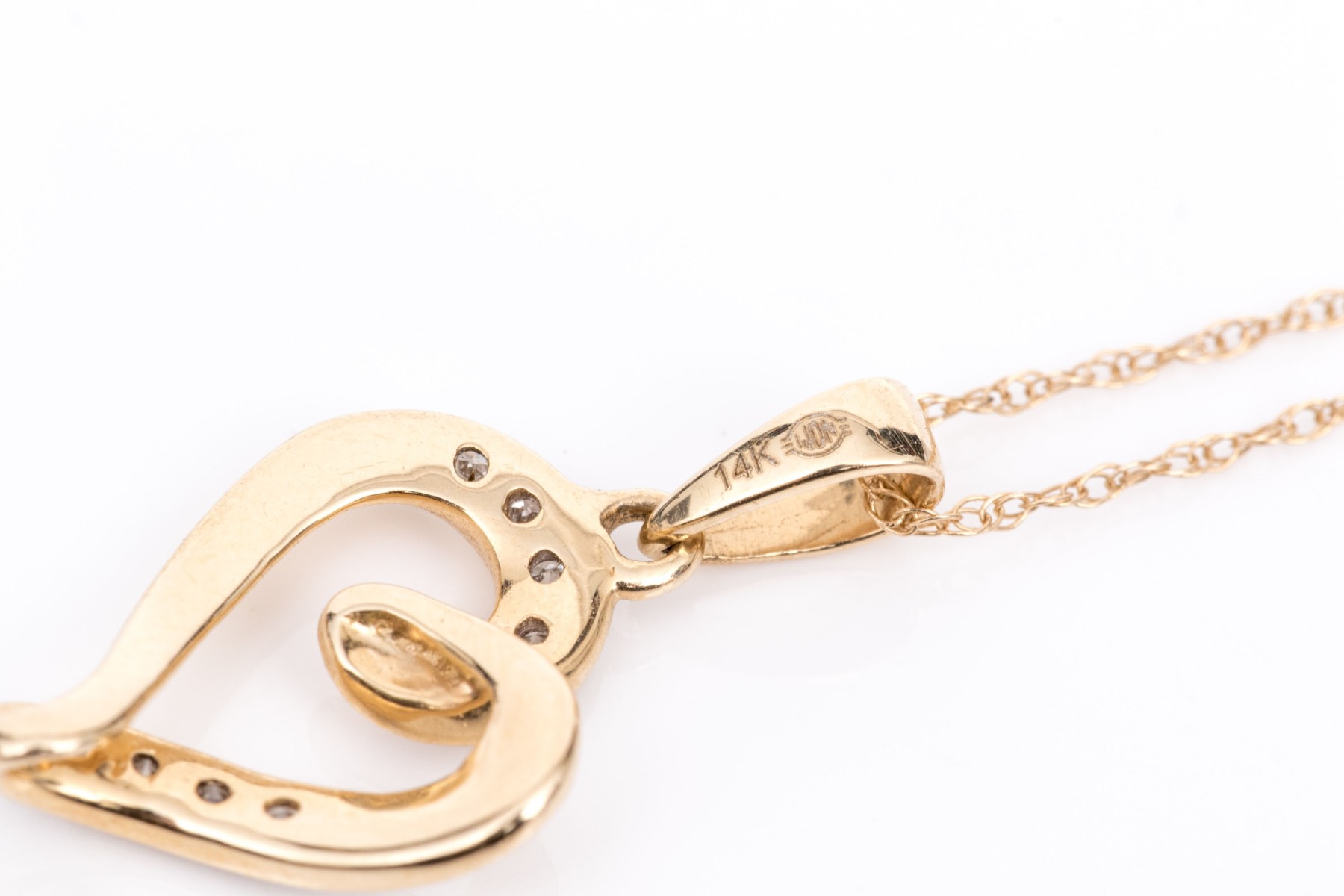 14k yellow gold retro diamond set heart pendant, app. 0.04 TCW, with chain