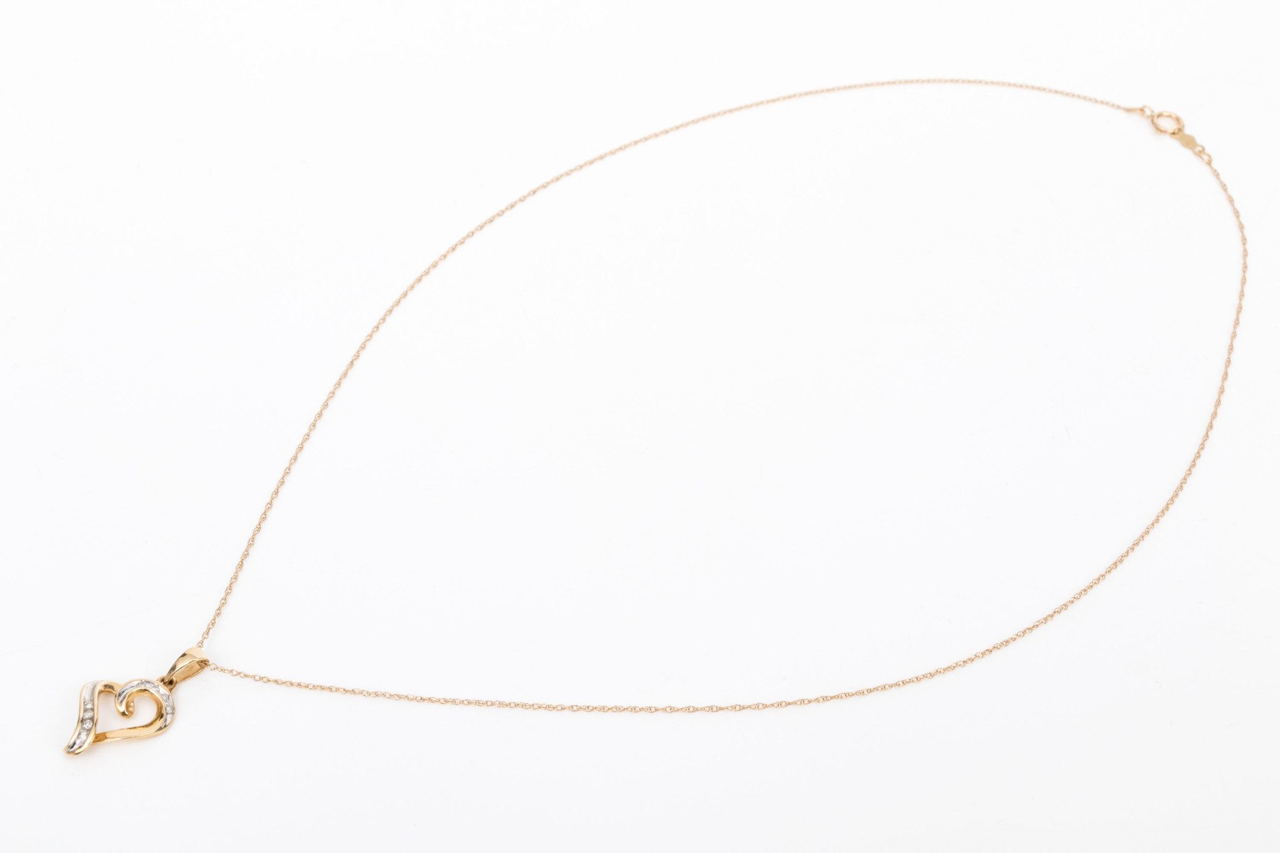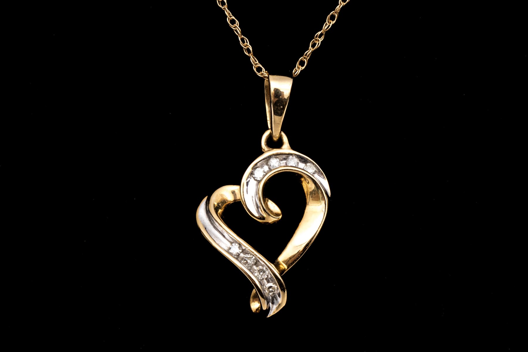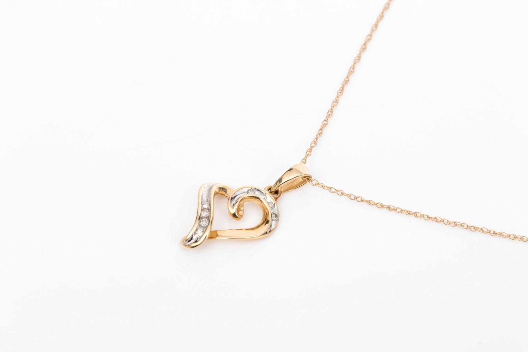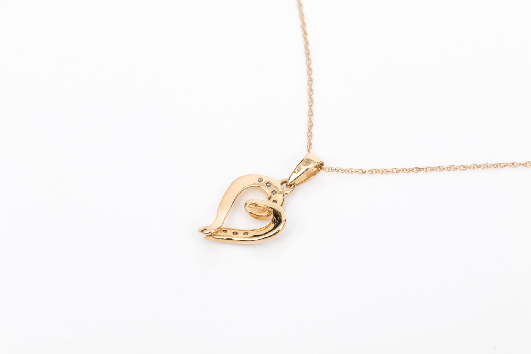 14k yellow gold retro diamond set heart pendant, app. 0.04 TCW, with chain